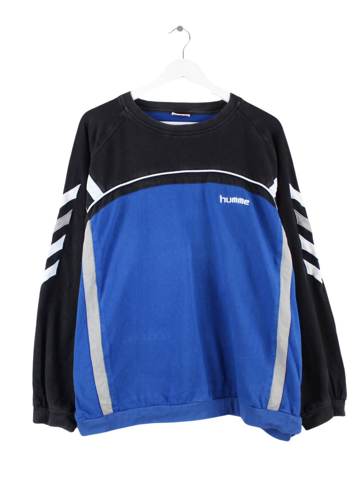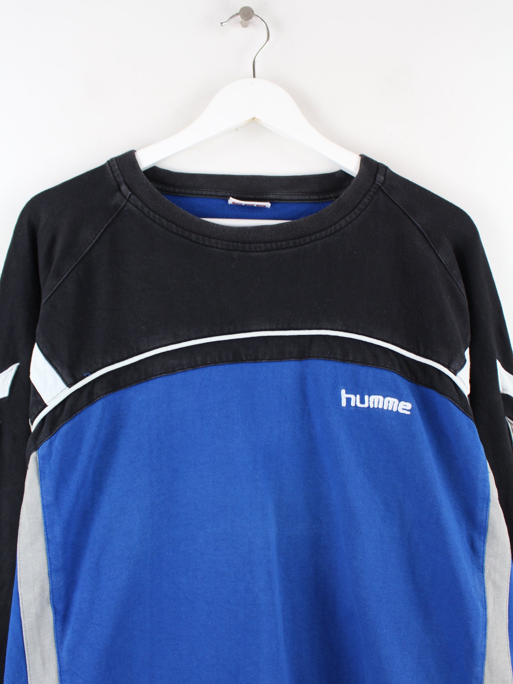 Blauer Sweater mit Stick von Hummel in Größe XL. Er ist aus einer Baumwollmischung und in sehr gutem Zustand bei uns vorrätig.