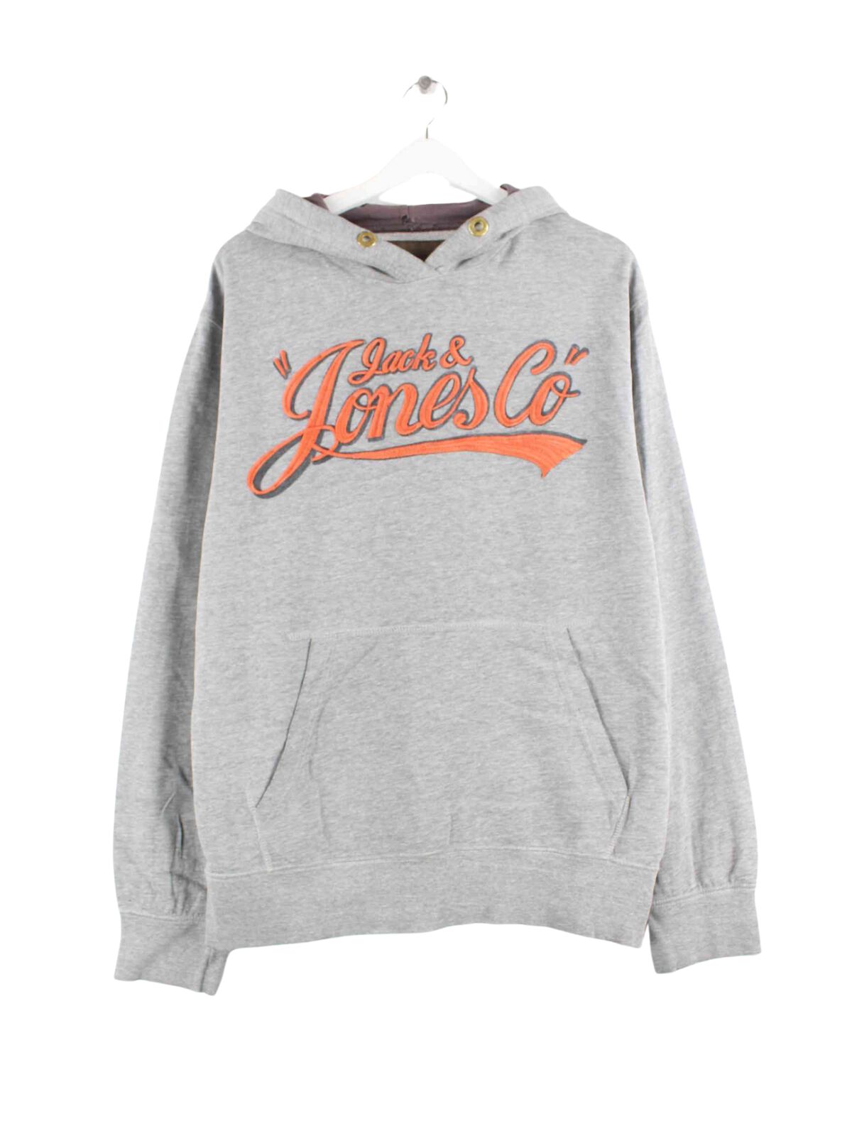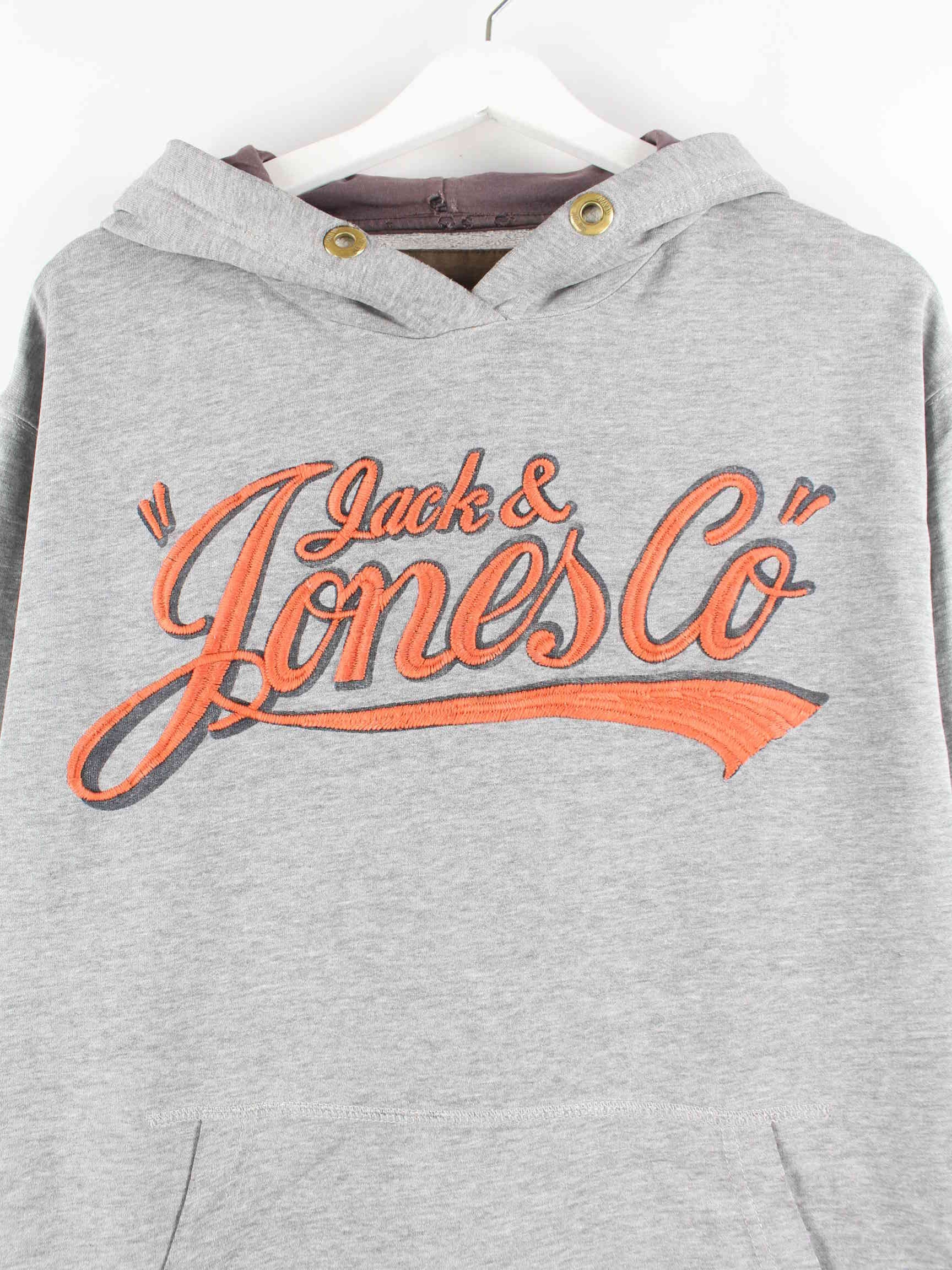 Grauer Hoodie mit Stickereien vom Label Jack & Jones in Größe XL. Er ist aus einer Baumwollmischung hergestellt und in sehr gutem Zustand zu haben.