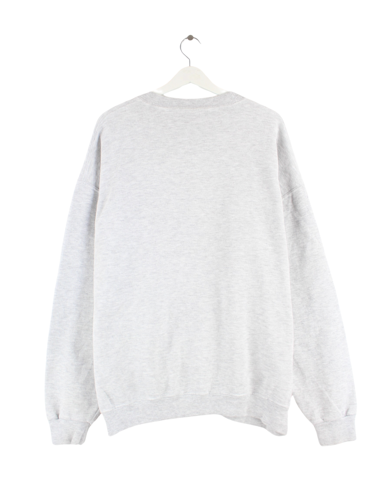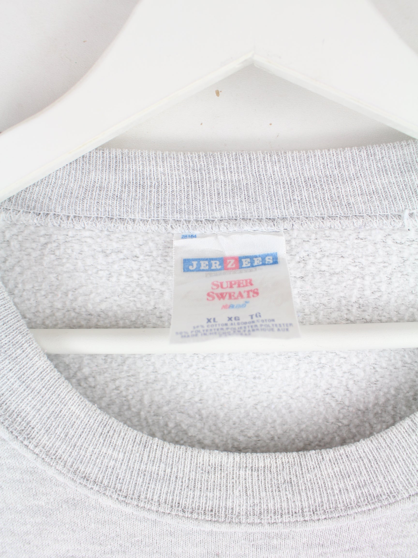 Sweater des Labels Jerzees mit Stick in Größe XL. Er ist aus einer Baumwollmischung produziert und in Grau zu bekommen.