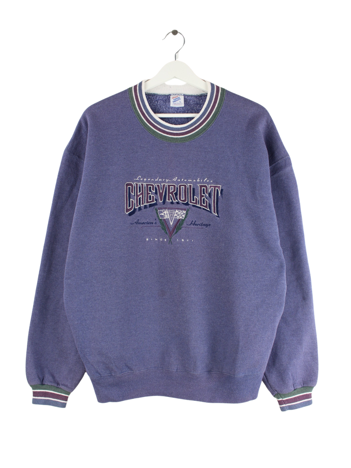 Jerzees 90s Vintage Chevrolet Embroidered Sweater Blau L