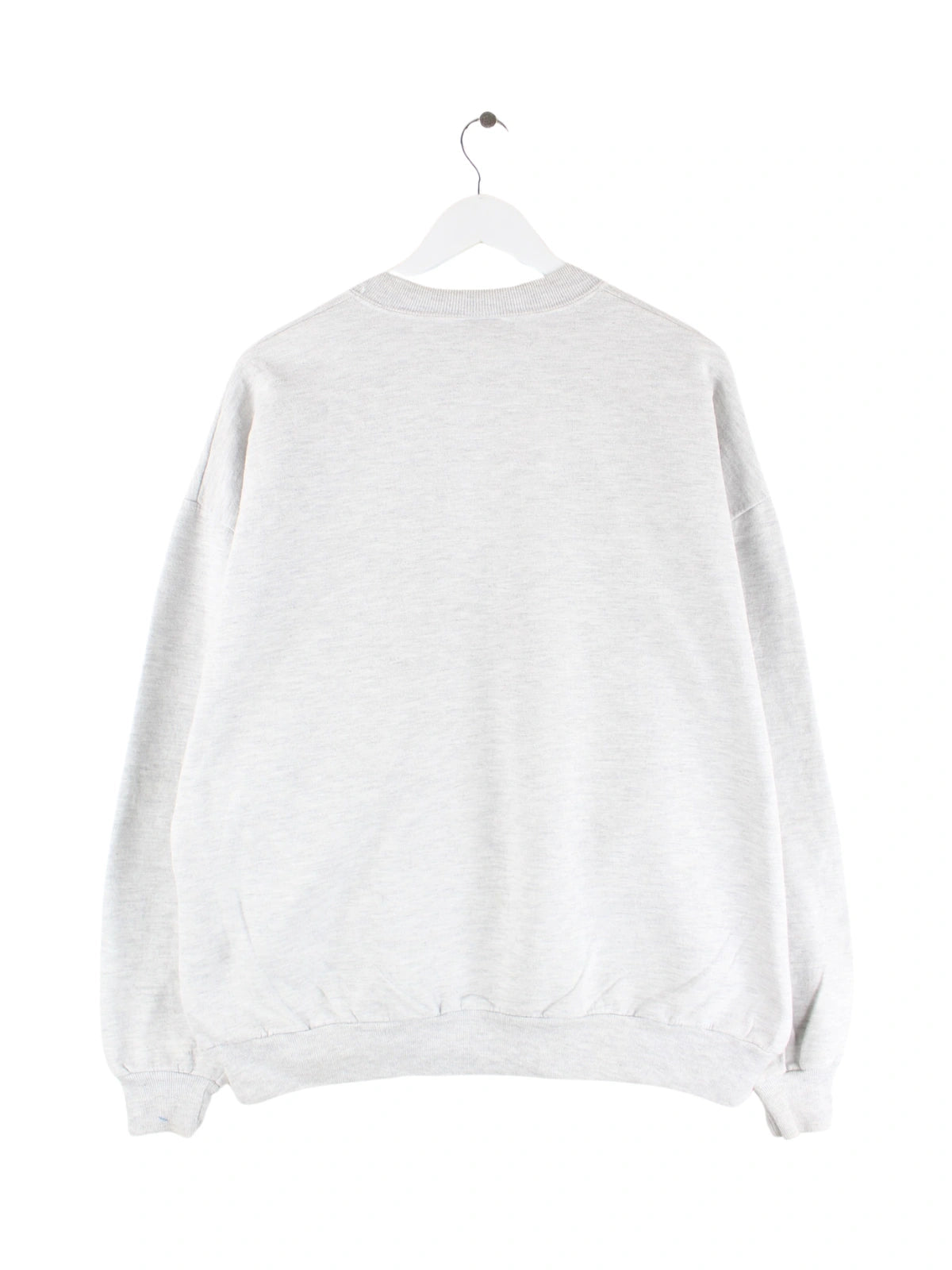 Sweater aus dem Hause Jerzees in Größe L aus den 90'ern. Er ist aus einer Baumwollmischung und in Grau lieferbar.