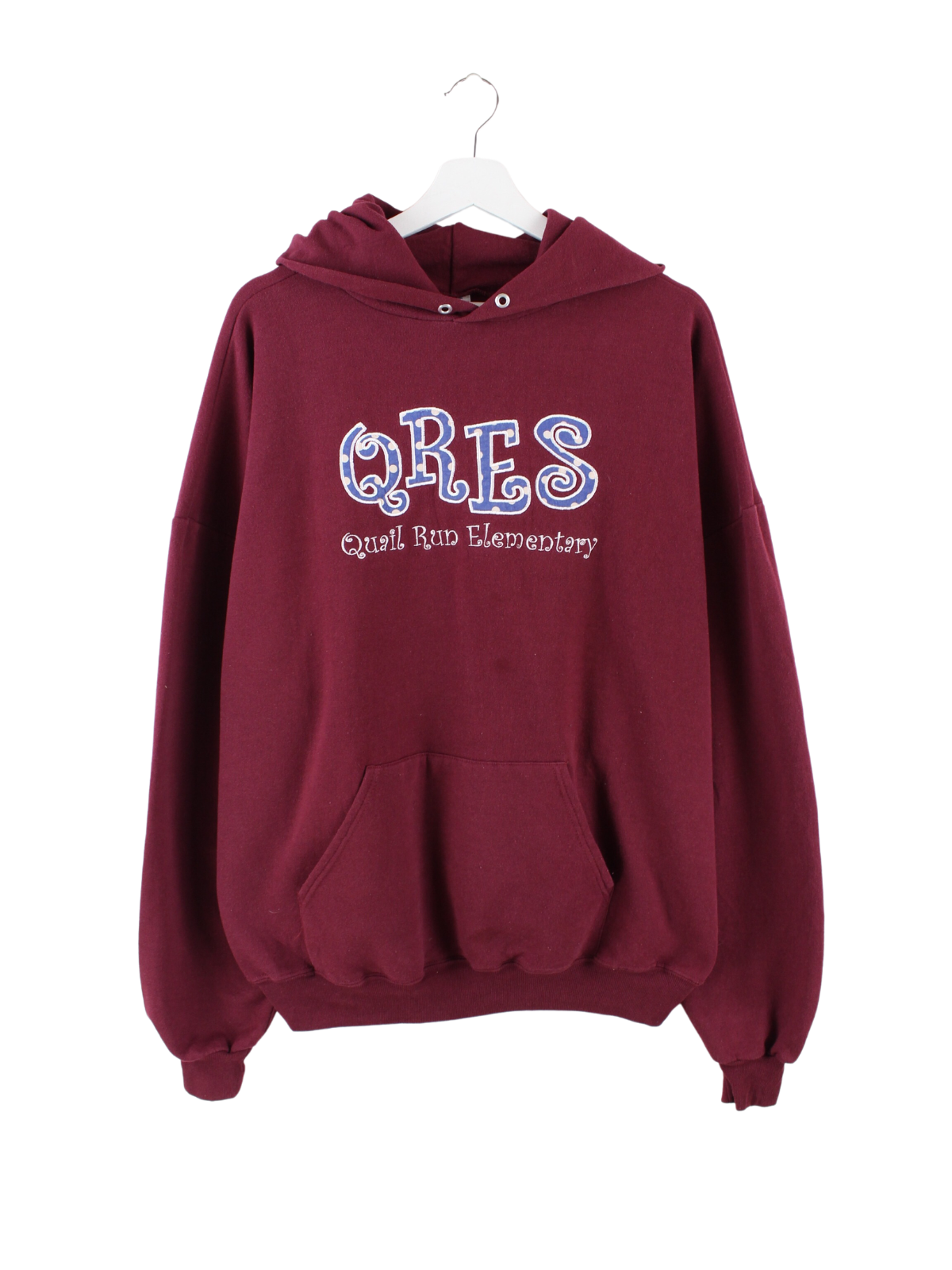 Roter Jerzees Hoodie mit aufgesticktem Logo.