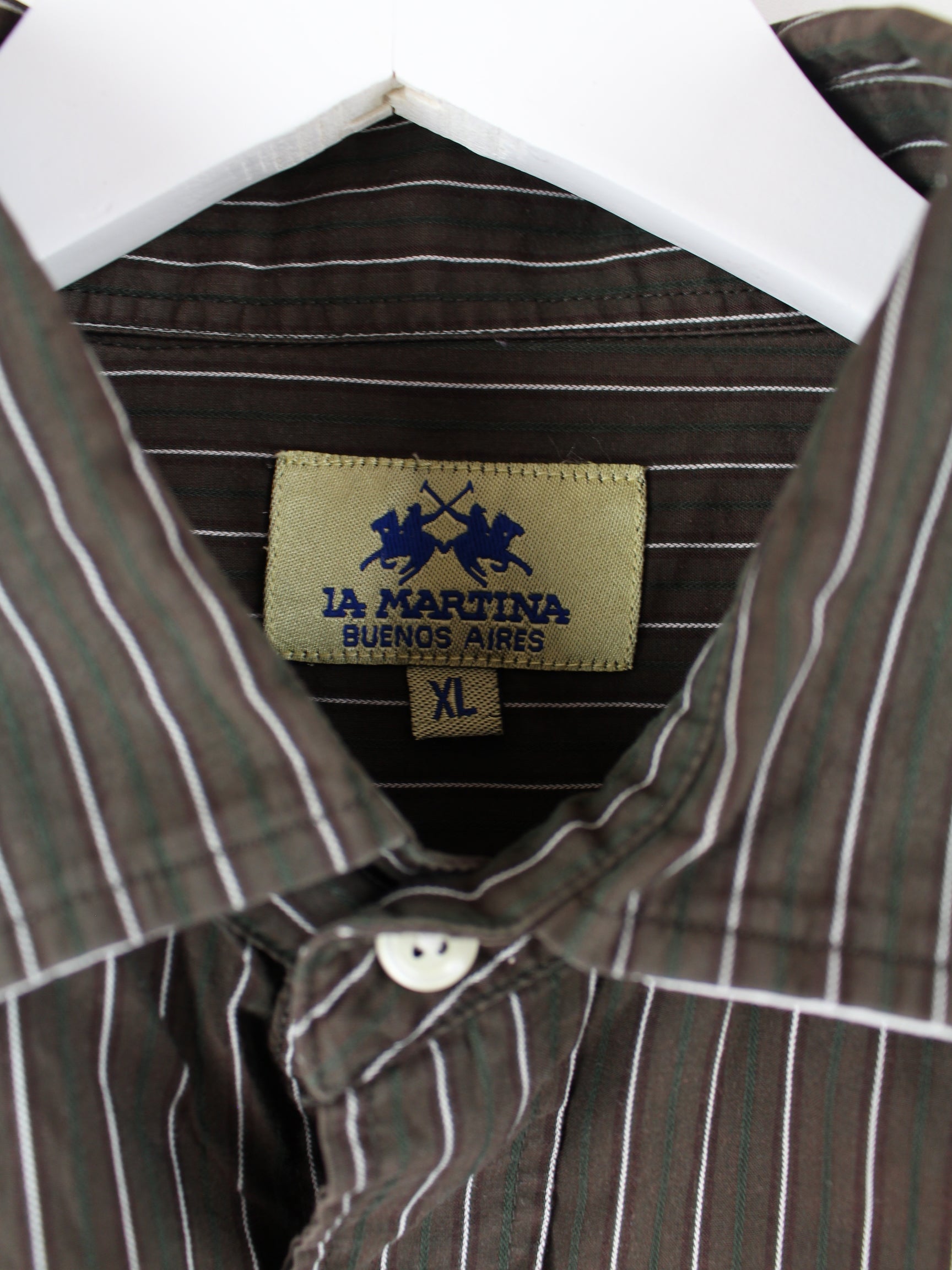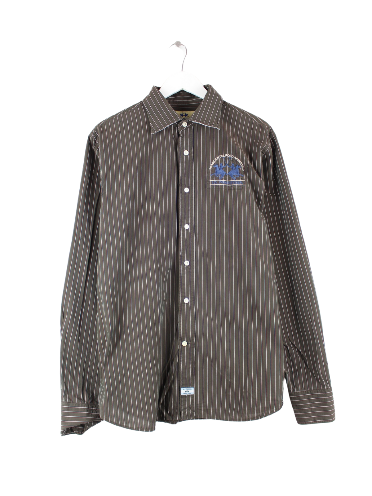 La Martina 90s Vintage Striped Embroidered Hemd Braun XL