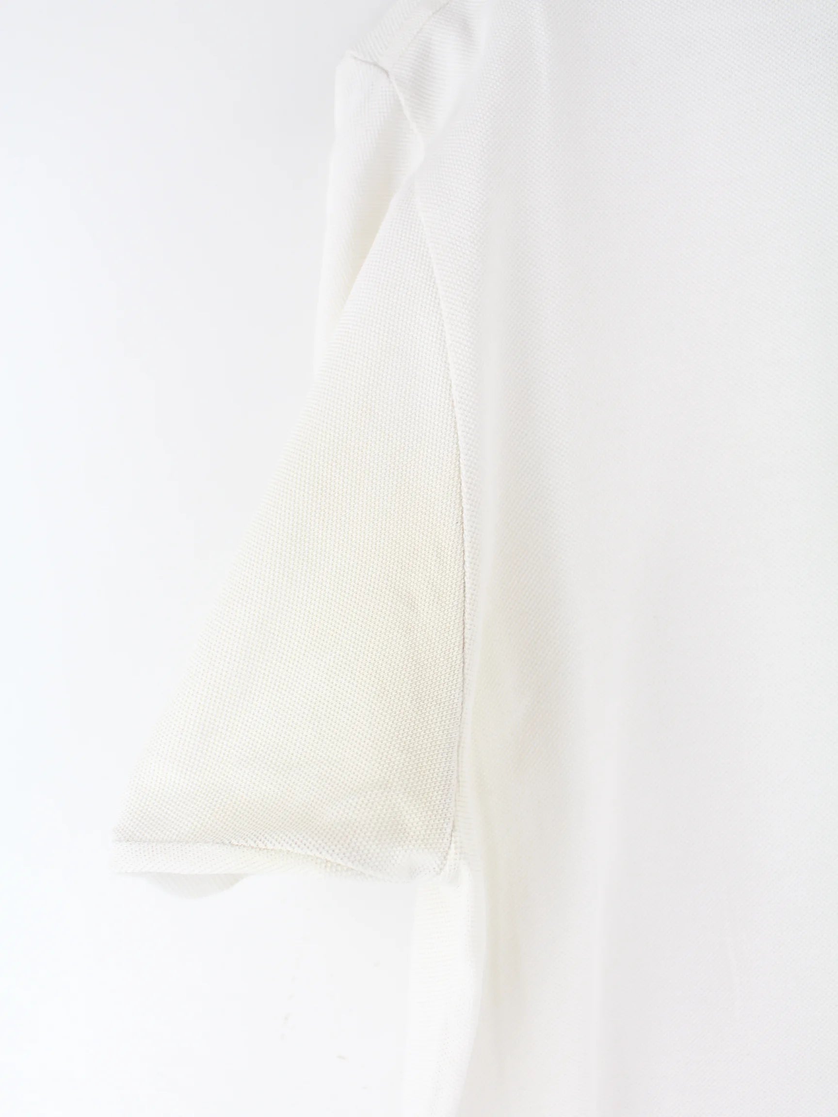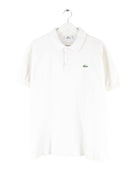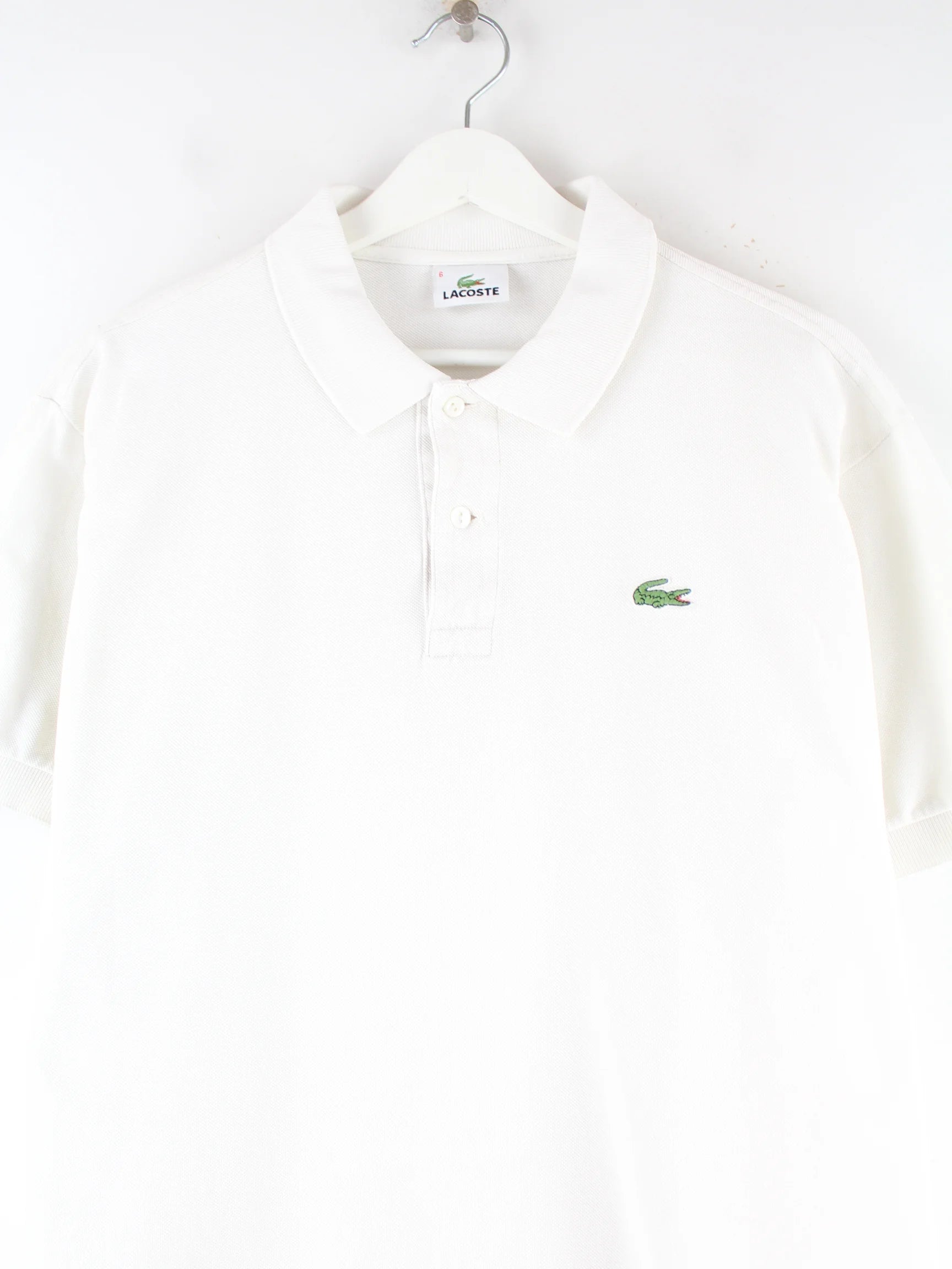 Weißes Poloshirt vom Label Lacoste in Größe L. Es ist aus Baumwolle produziert. Den Zustand würden wir als 'In Ordnung' bezeichnen (vergl. Bilder).