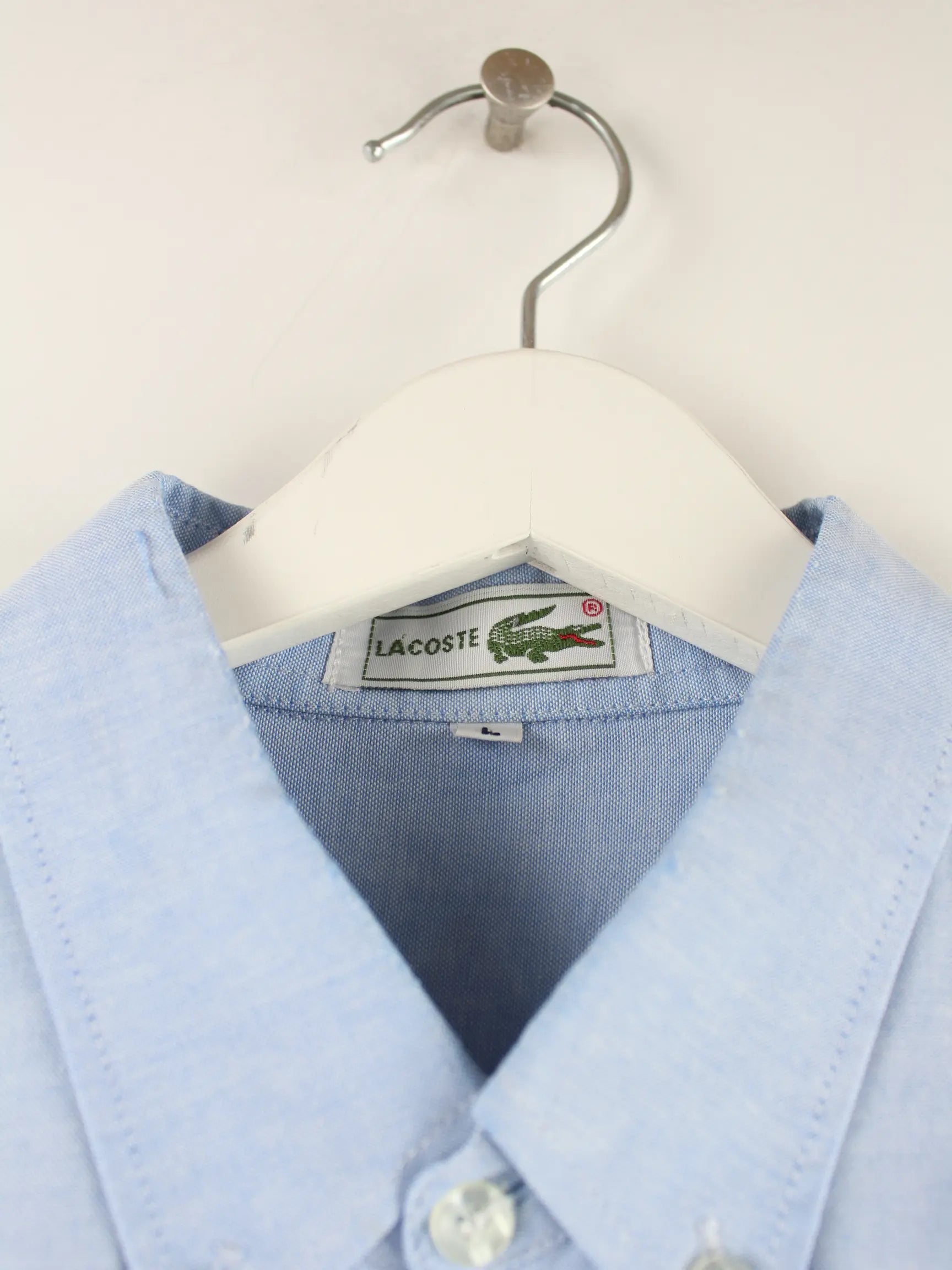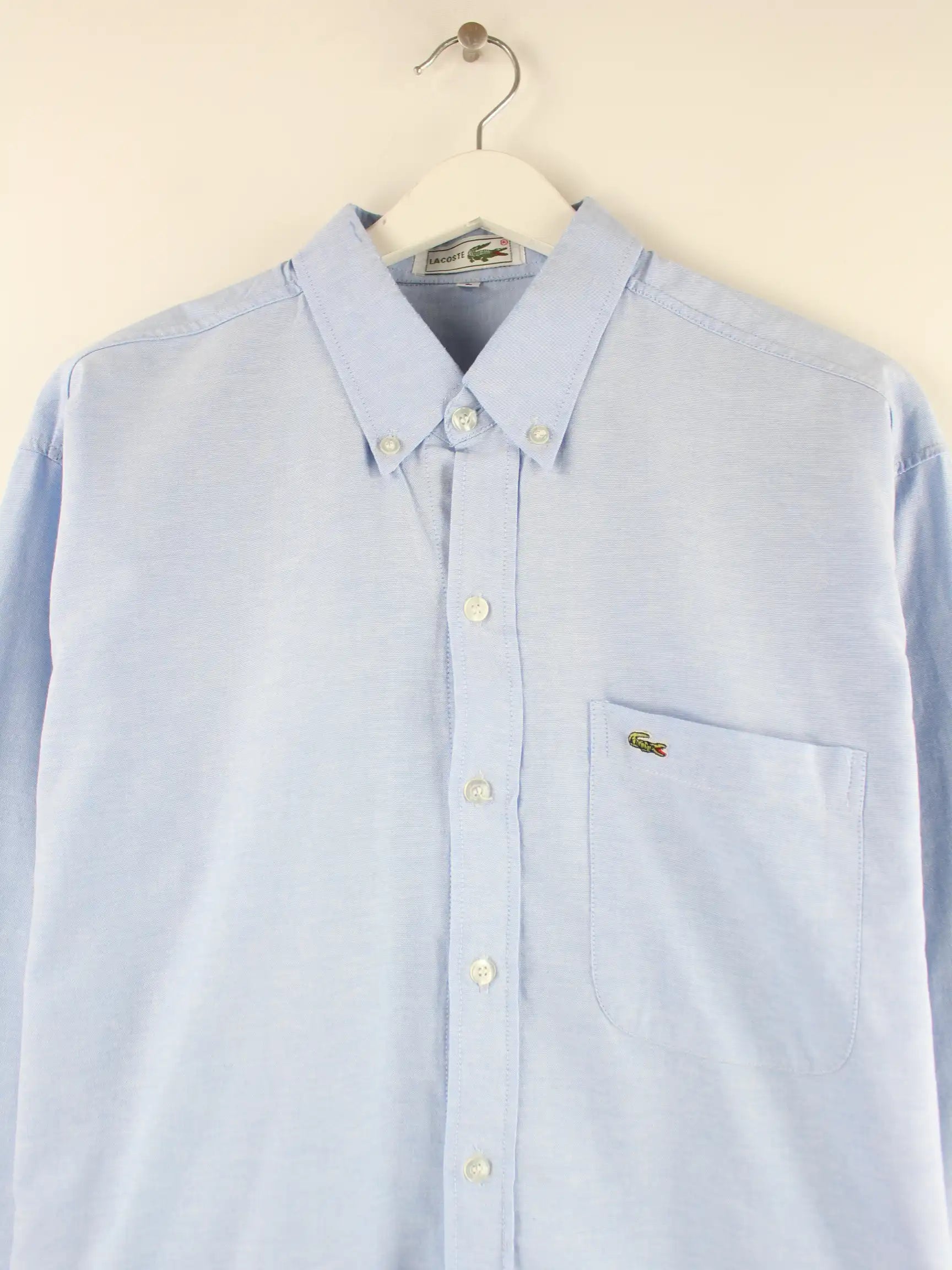 Blaues Hemd der Marke Lacoste in Größe L. Es ist aus Baumwolle hergestellt und in sehr gutem Zustand in Stock.