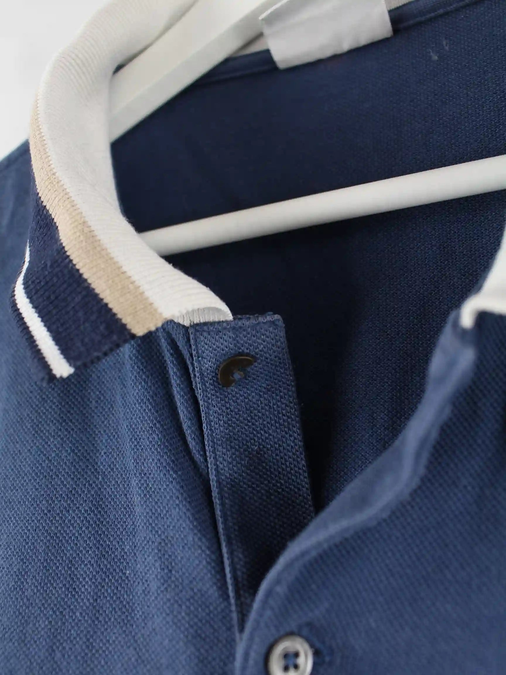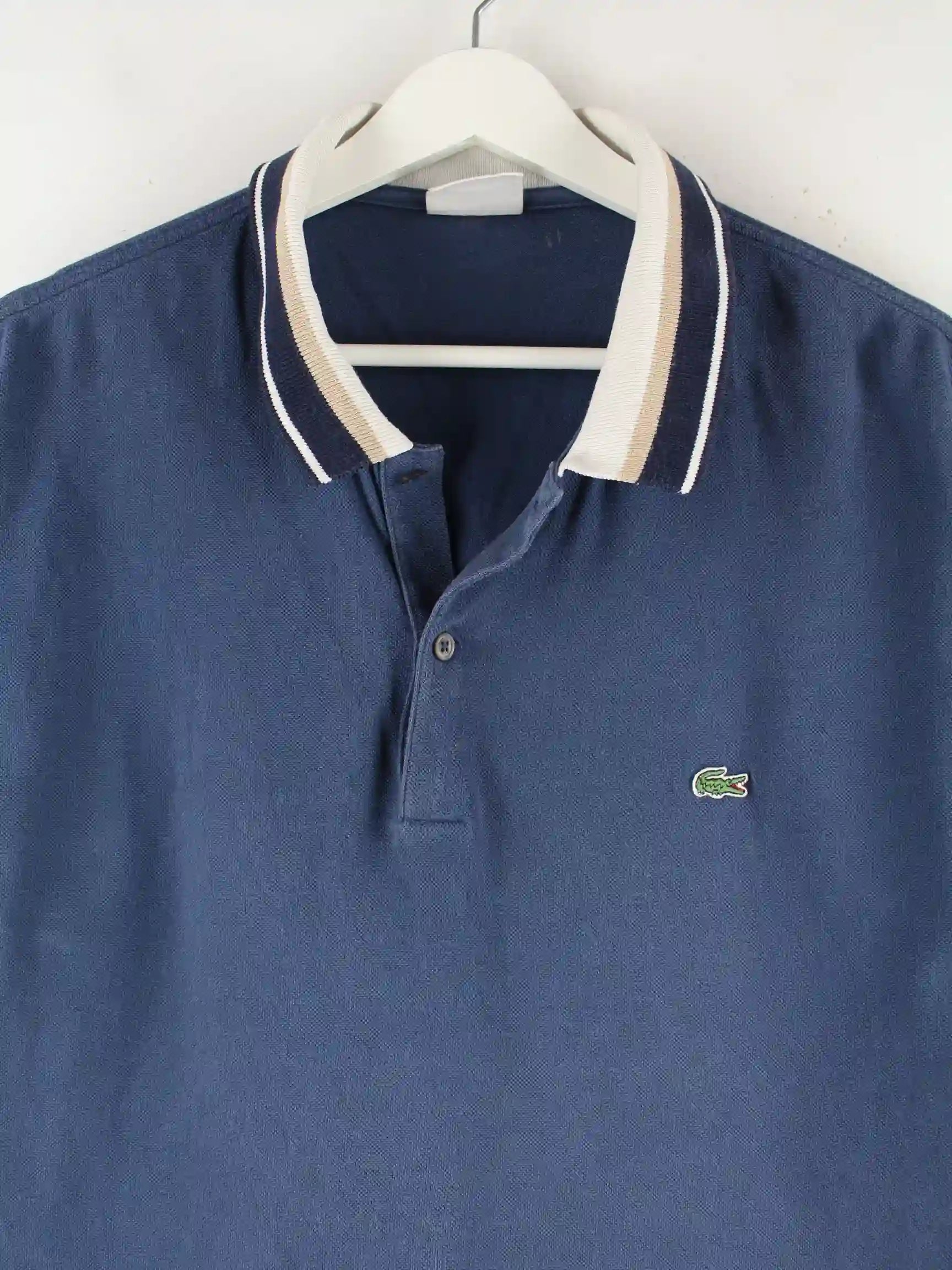 Blaues Poloshirt vom Brand Lacoste in Größe XL. Es ist aus Baumwolle gefertigt und in gutem Zustand im Bestand.