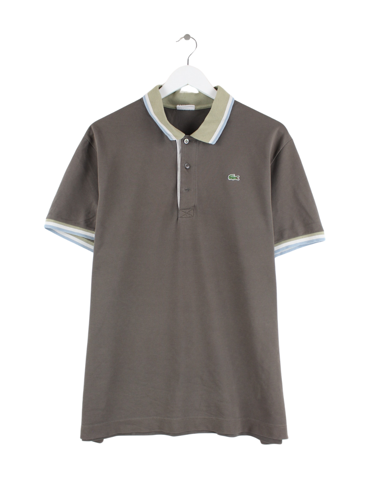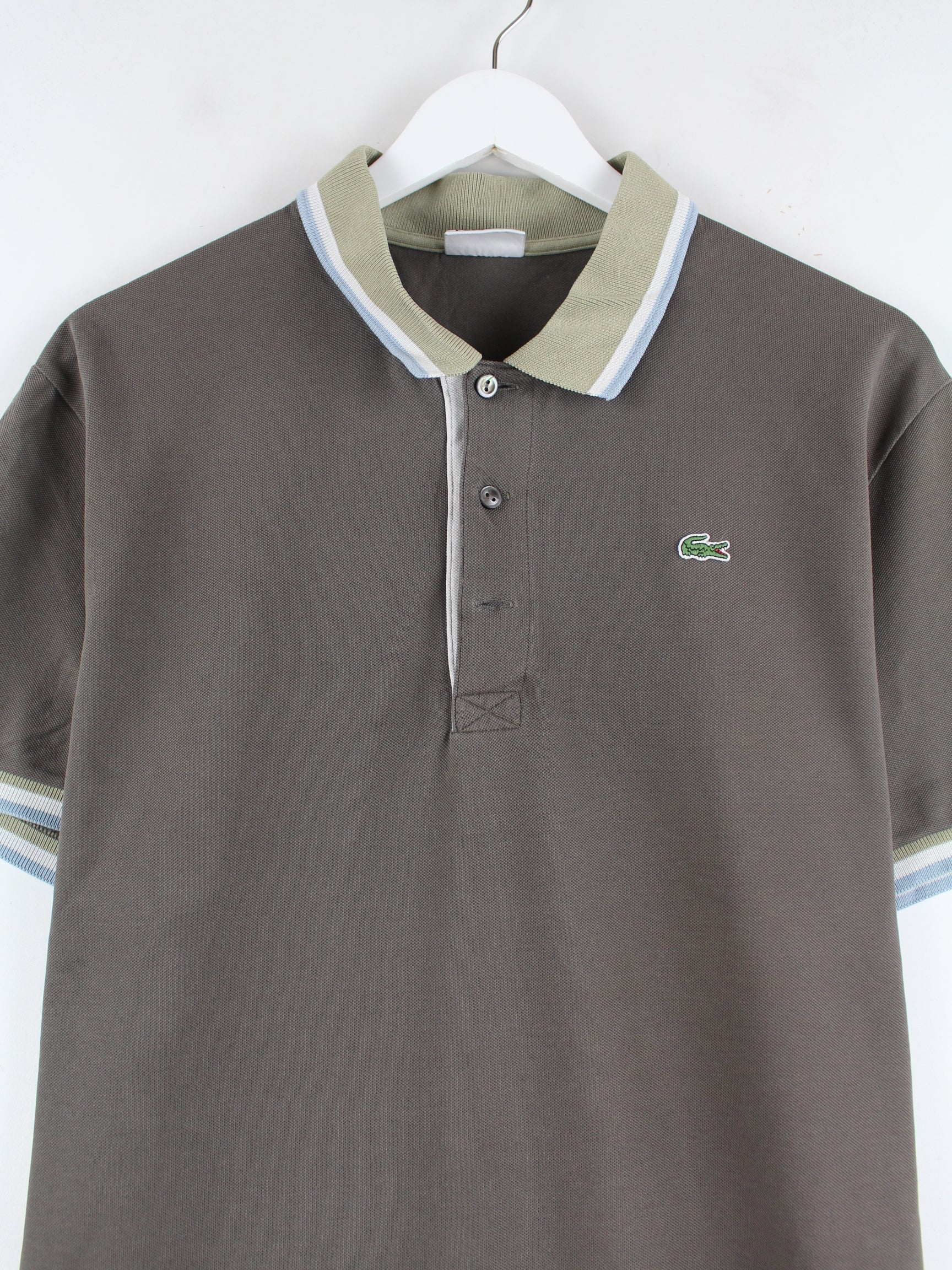 Poloshirt vom Label Lacoste in Größe L. Es ist aus einer Baumwollmischung gemacht und in Braun im Bestand.