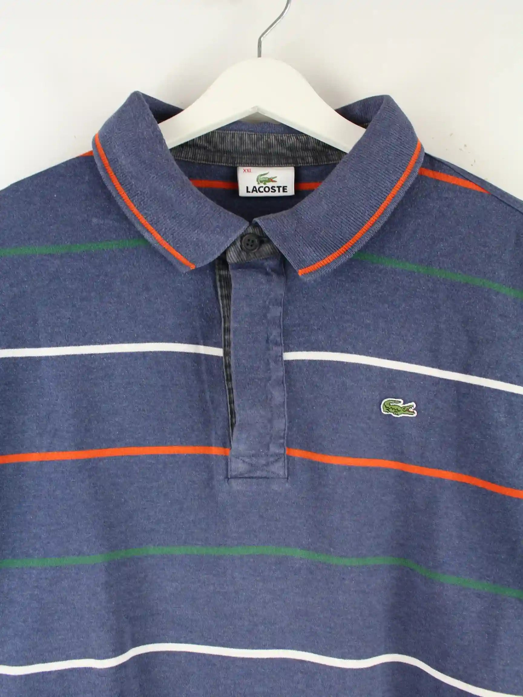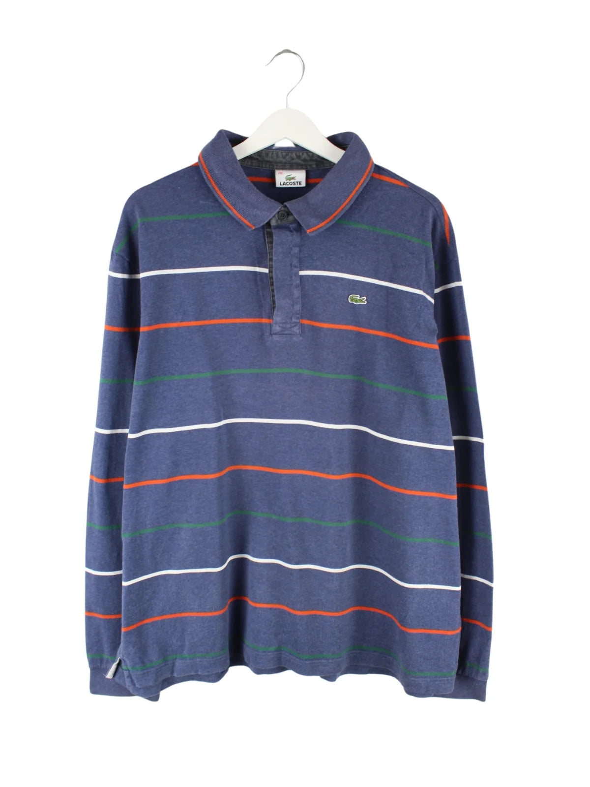 Lacoste 00s Striped Rugby Langarm Polo Blau XXL