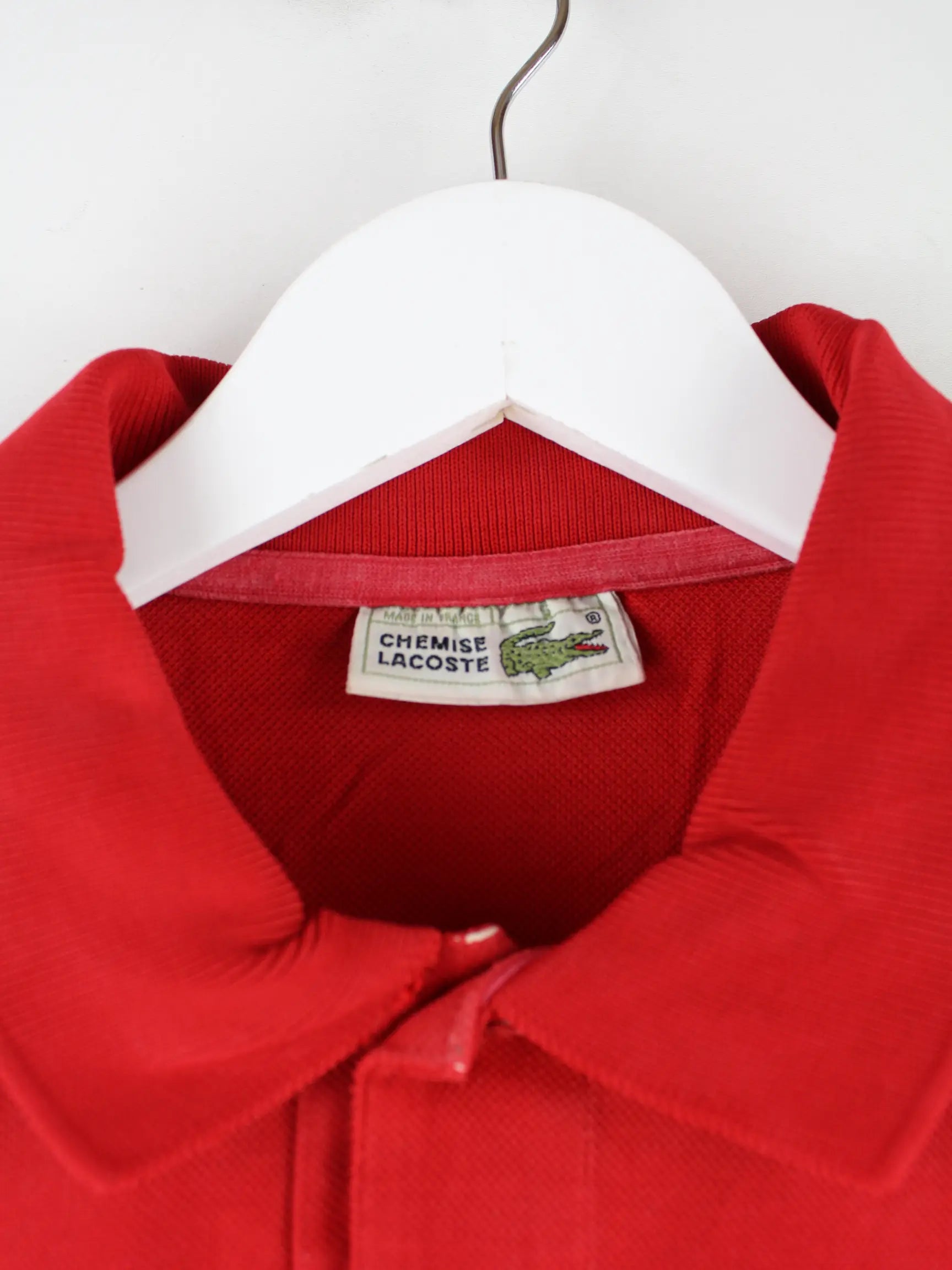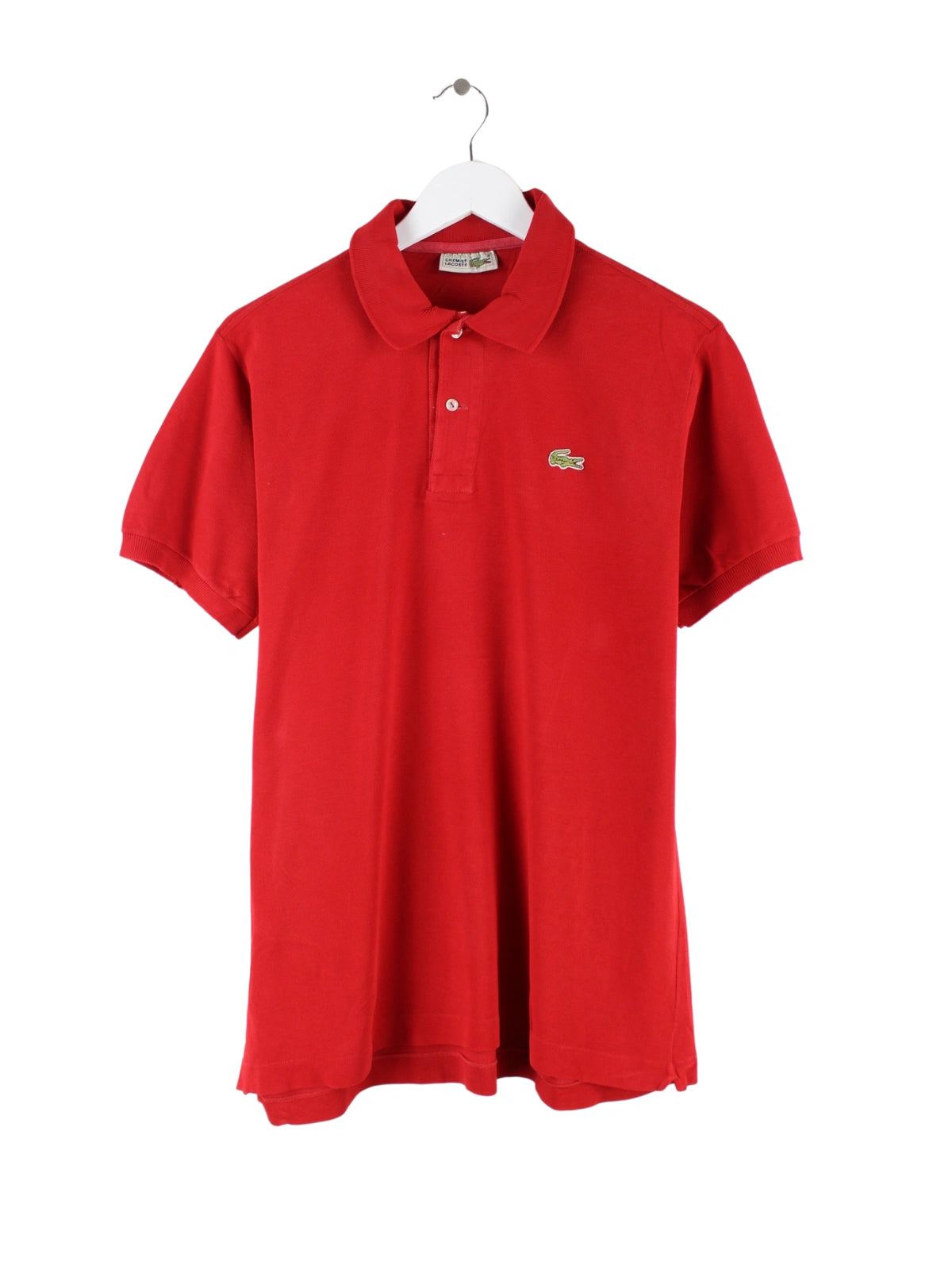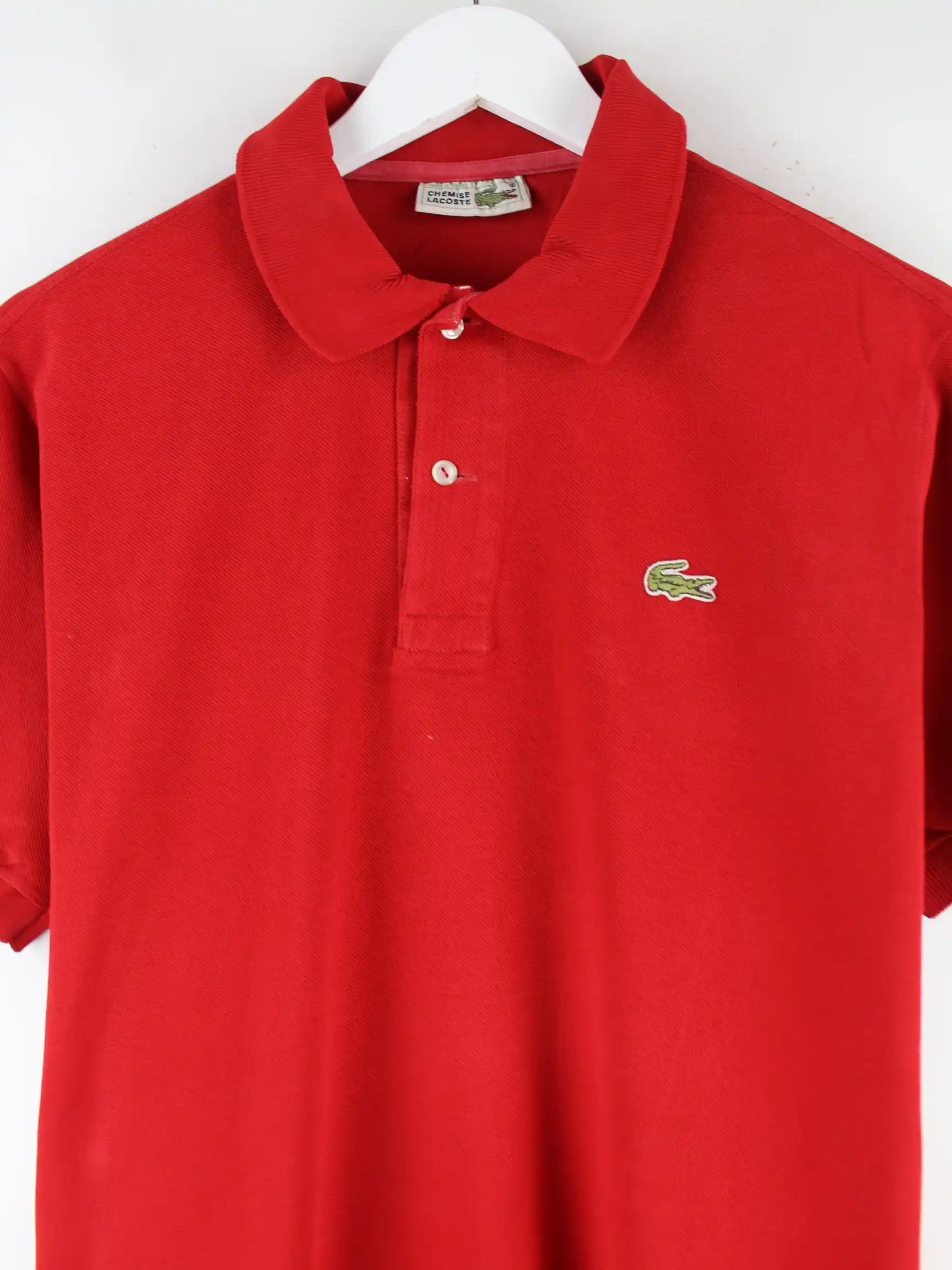Rotes Poloshirt vom Label Lacoste aus den 90'ern in Größe M. Es ist aus einer Baumwollmischung gemacht und in gutem Zustand lieferbar.