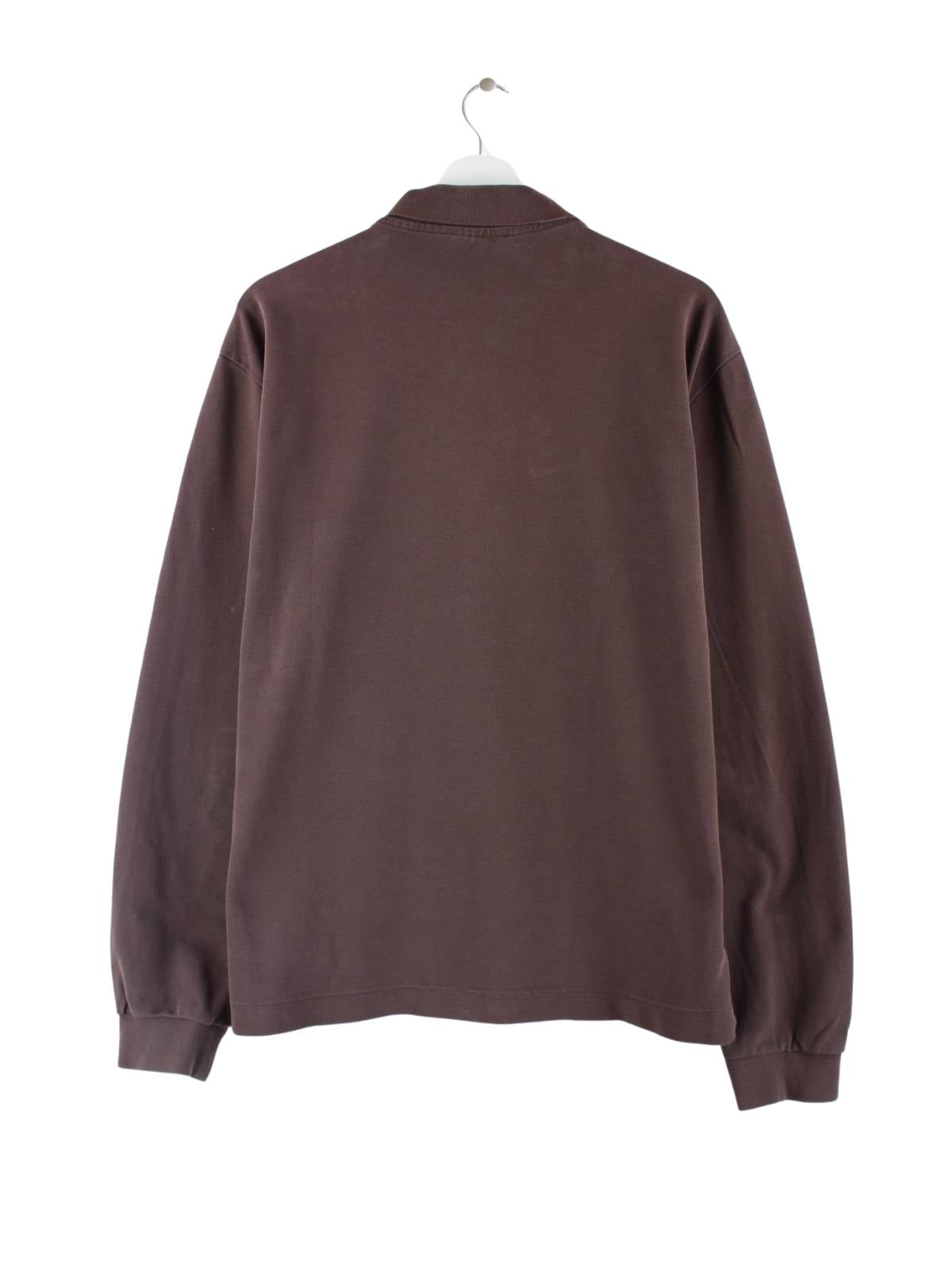 Poloshirt der Brand Lacoste in Größe L aus den 90'ern. Es ist aus Baumwolle gefertigt und in Braun vorrätig.