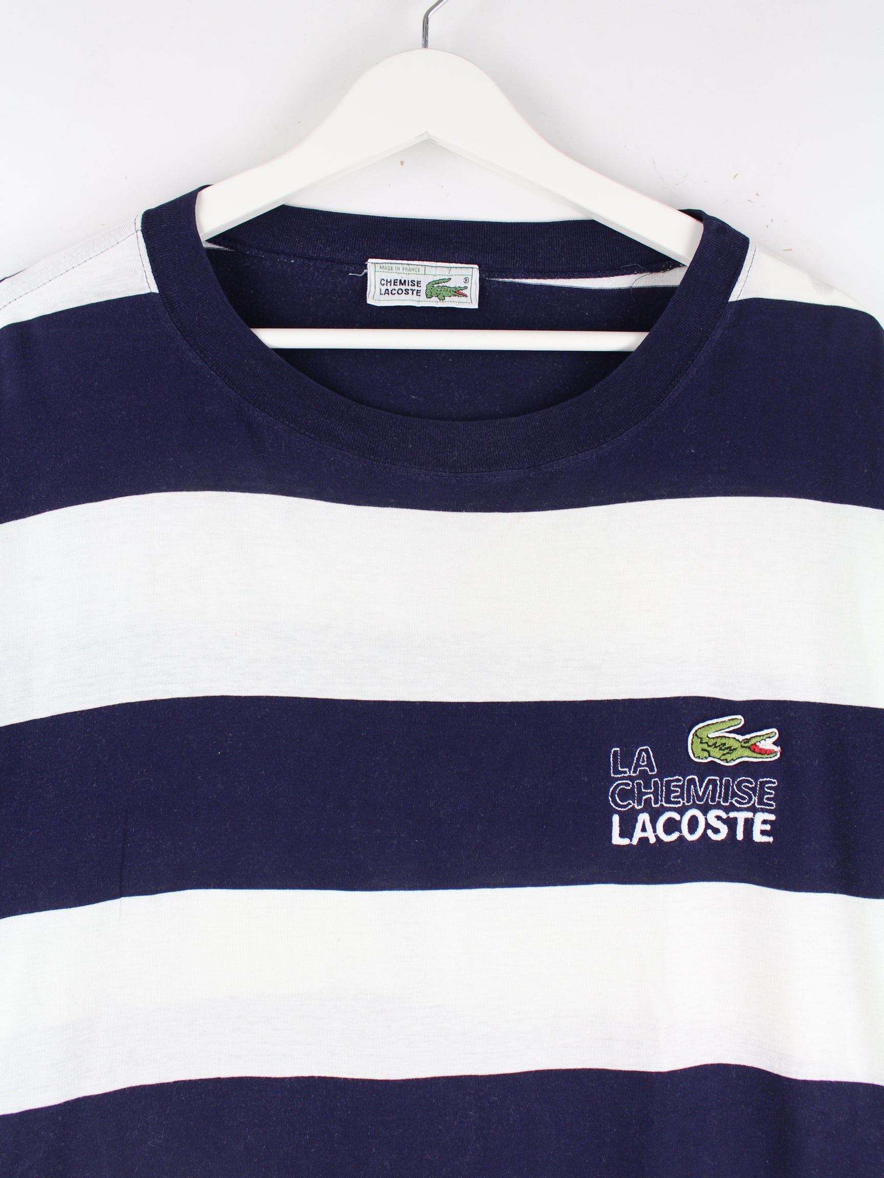 Lacoste 90s Vintage Striped Single Stitch T-Shirt Blau XL