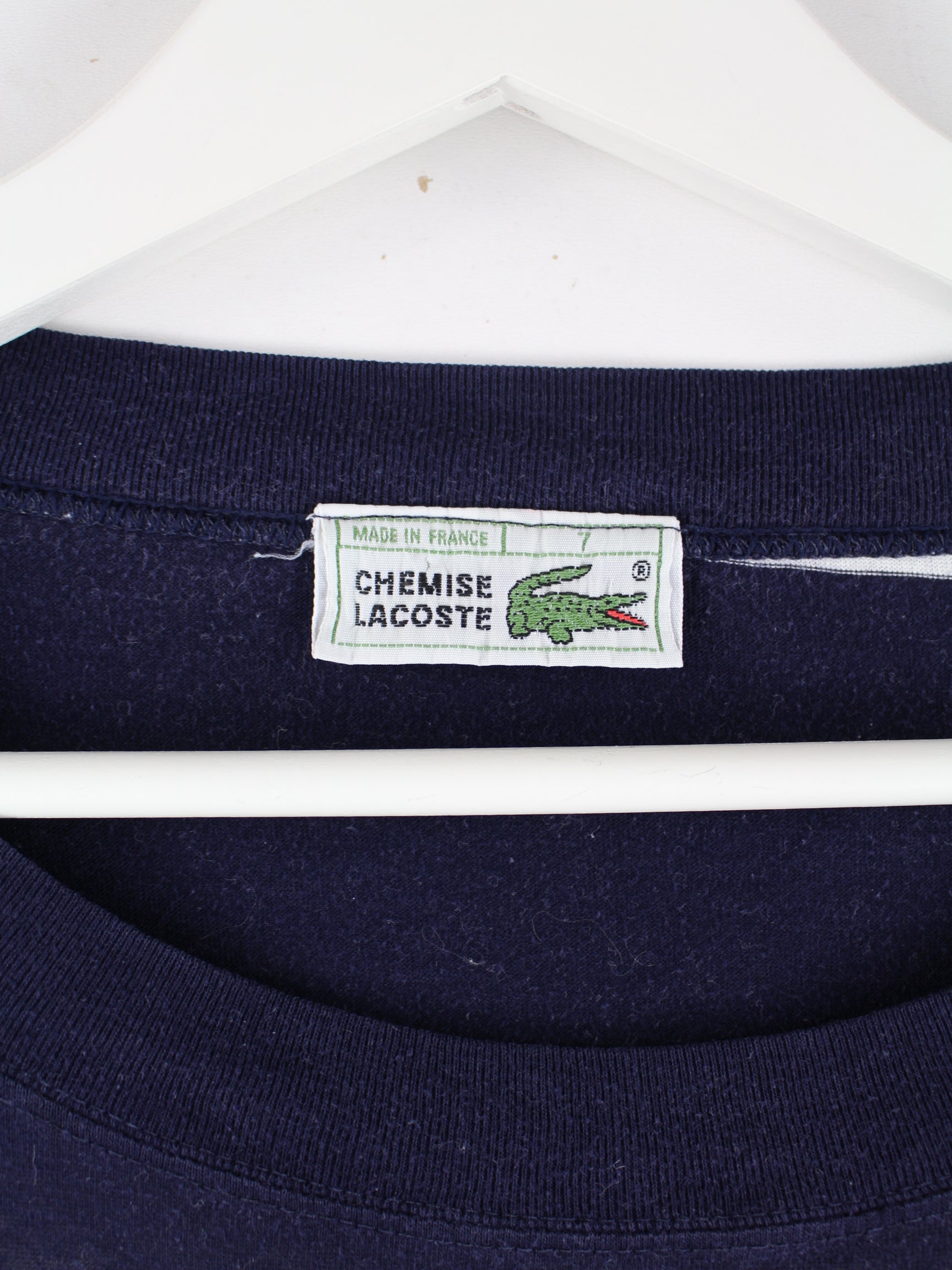 Blaues T-Shirt der Marke Lacoste aus den 90'ern in Größe XL. Es ist aus Baumwolle und in gutem Zustand auf Lager.