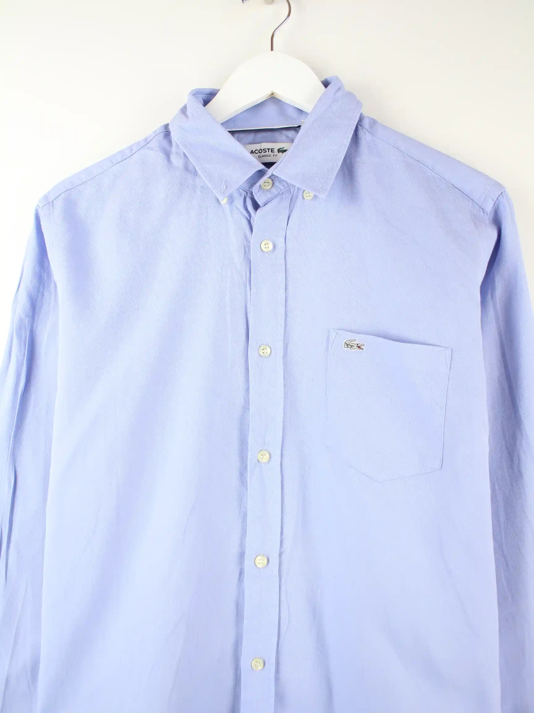 Blaues Hemd der Marke Lacoste in Größe L. Es ist aus Baumwolle hergestellt und in sehr gutem Zustand vorrätig.