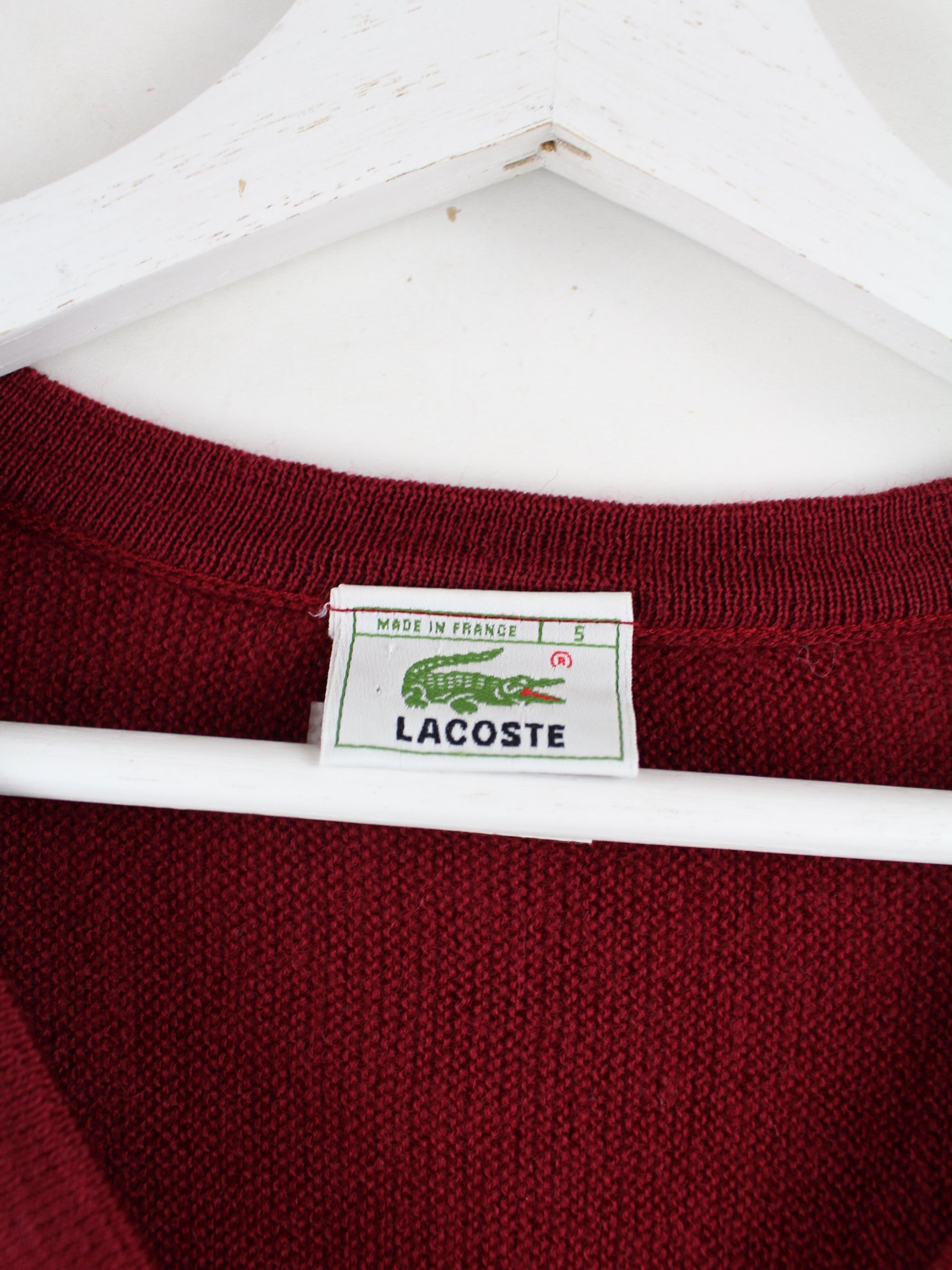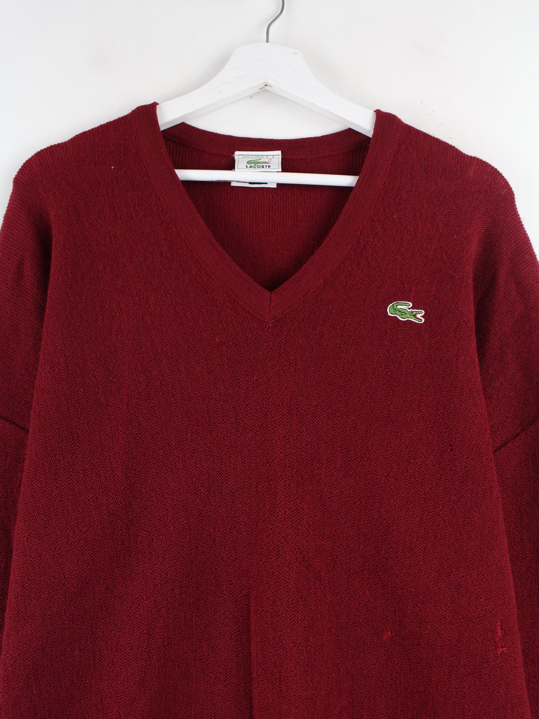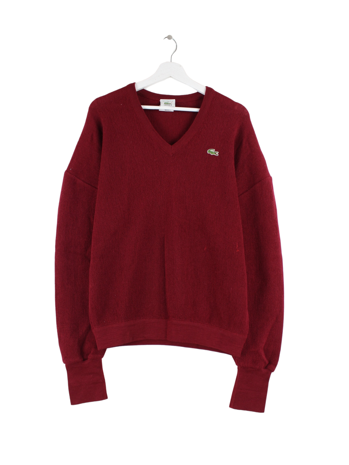 Roter Pullover vom Label Lacoste in Größe M. Er ist aus Wolle gemacht und in gutem Zustand zu haben.
