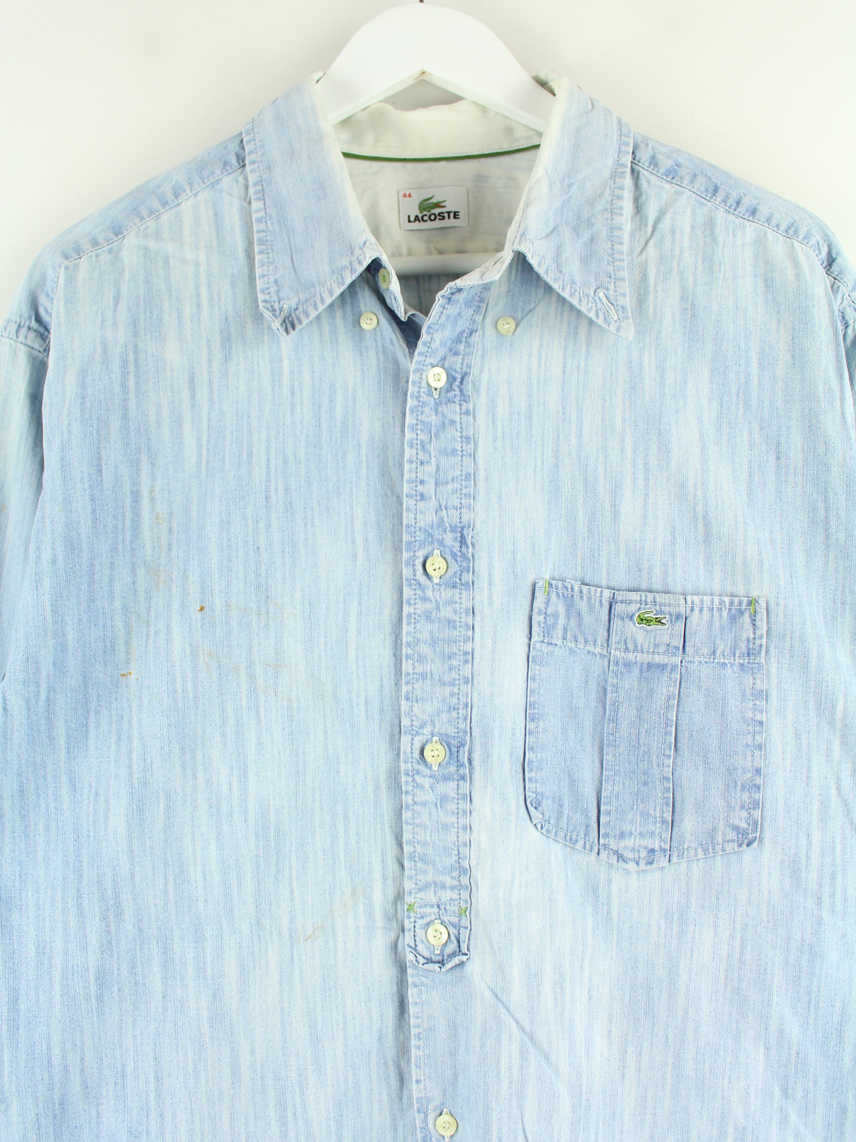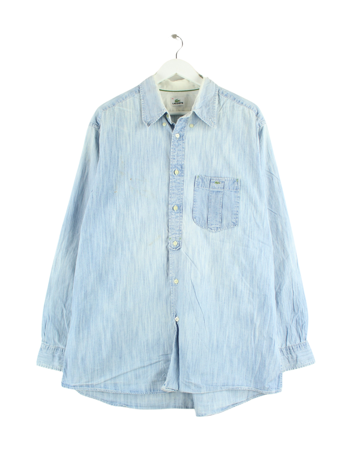 Blaues Freizeit Hemd vom Brand Lacoste aus Anfang der 2000'er in Größe XL. Es ist aus einer Baumwollmischung gemacht. Den Zustand würden wir als 'In Ordnung' bezeichnen (vergl. Bilder).