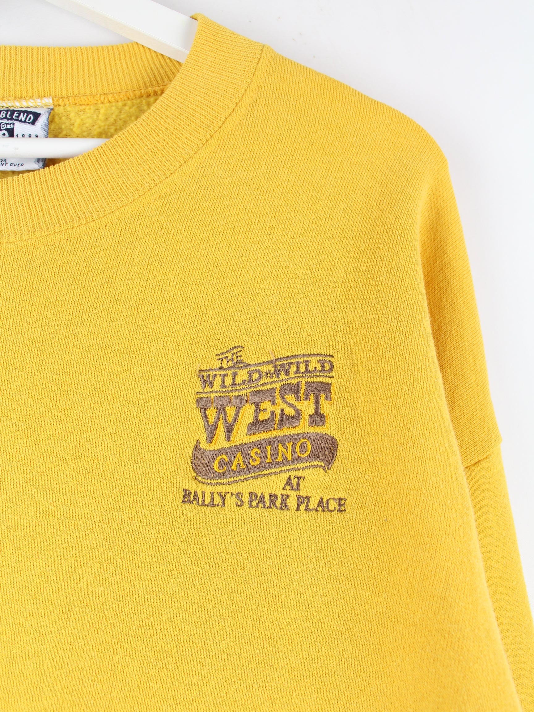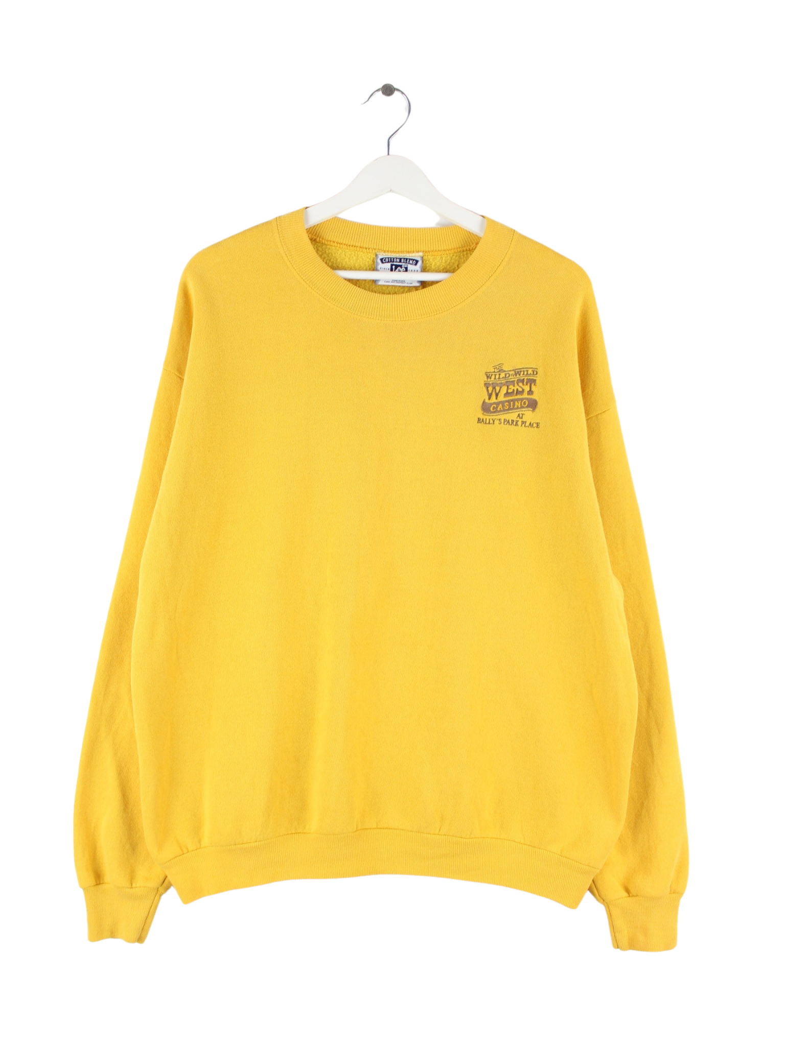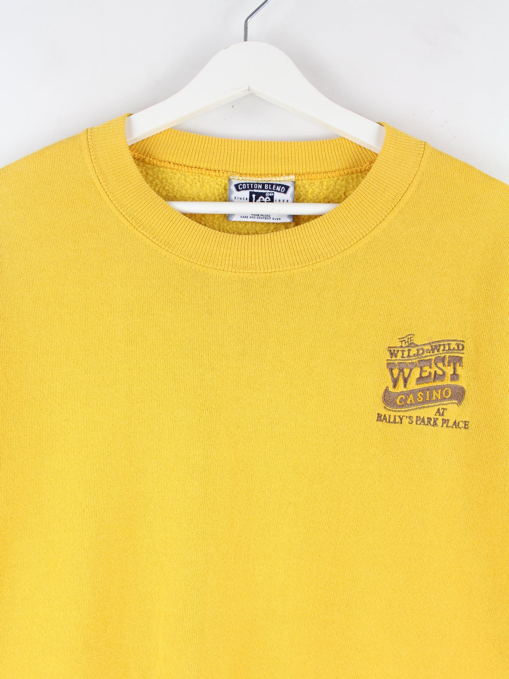 Sweater der Marke Lee in Größe L aus den 90'ern. Er ist aus einer Baumwollmischung und in Gelb in Stock.