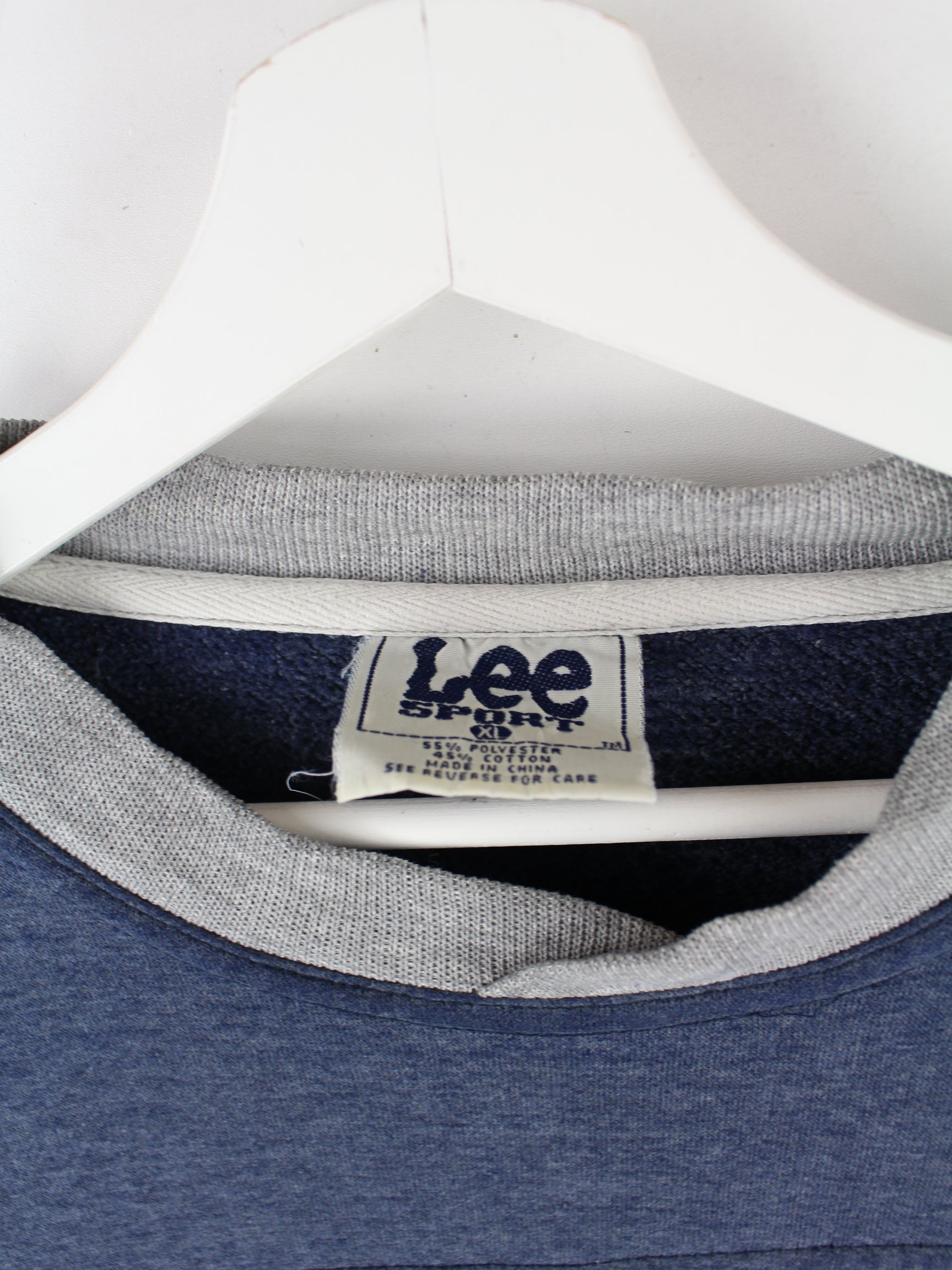 Sweater des Labels Lee mit Stickereien in Größe XL aus den 90'ern. Er ist aus einer Baumwollmischung und in Blau in Stock.