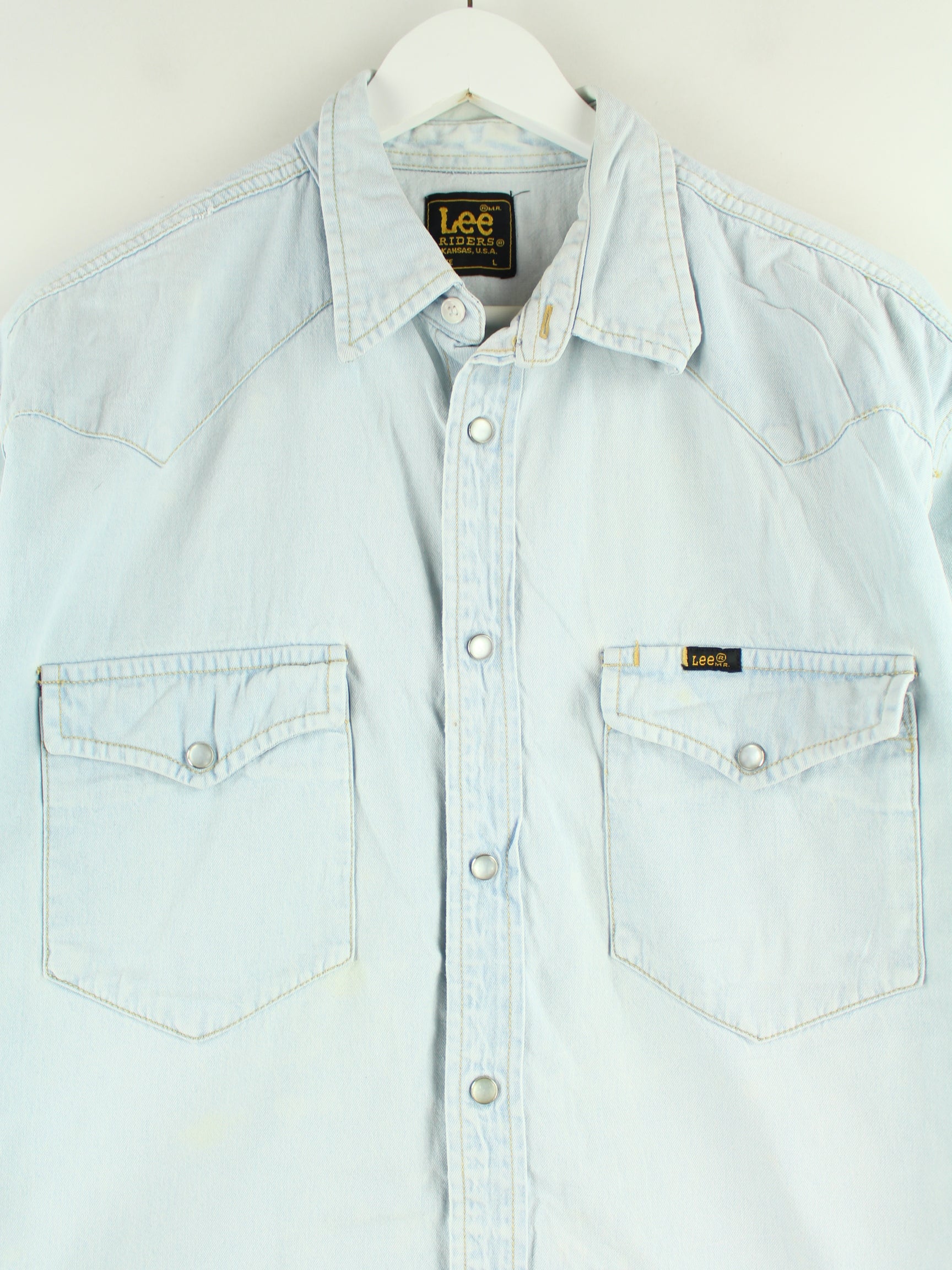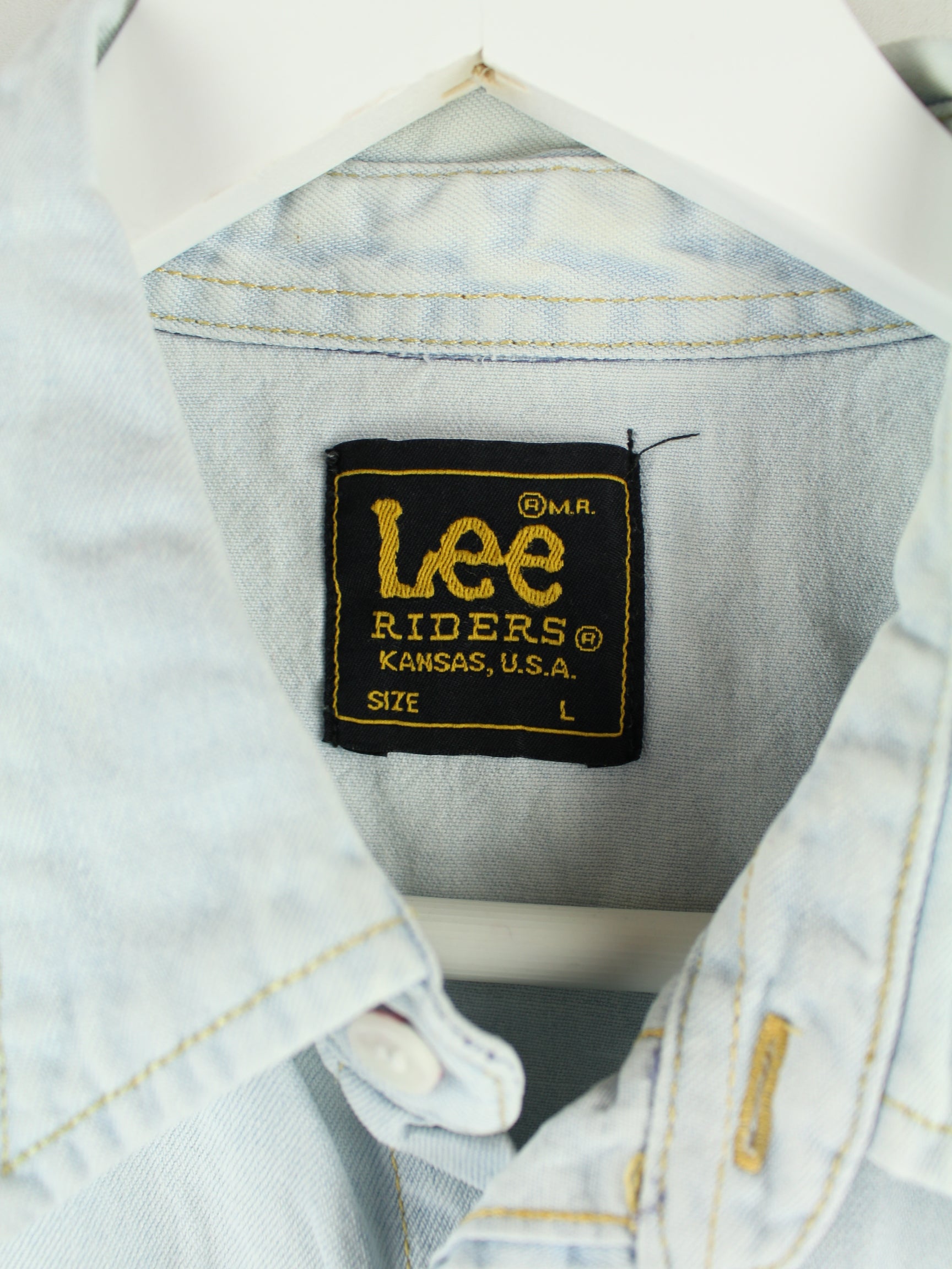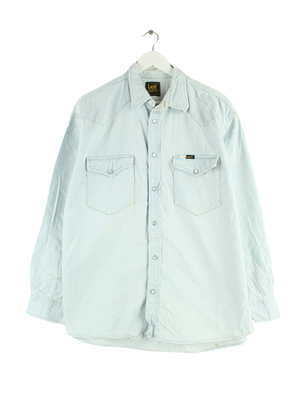 Freizeit Hemd vom Label Lee in Größe L aus den 90er Jahren. Es ist aus Baumwolle gefertigt und in Blau im Bestand.