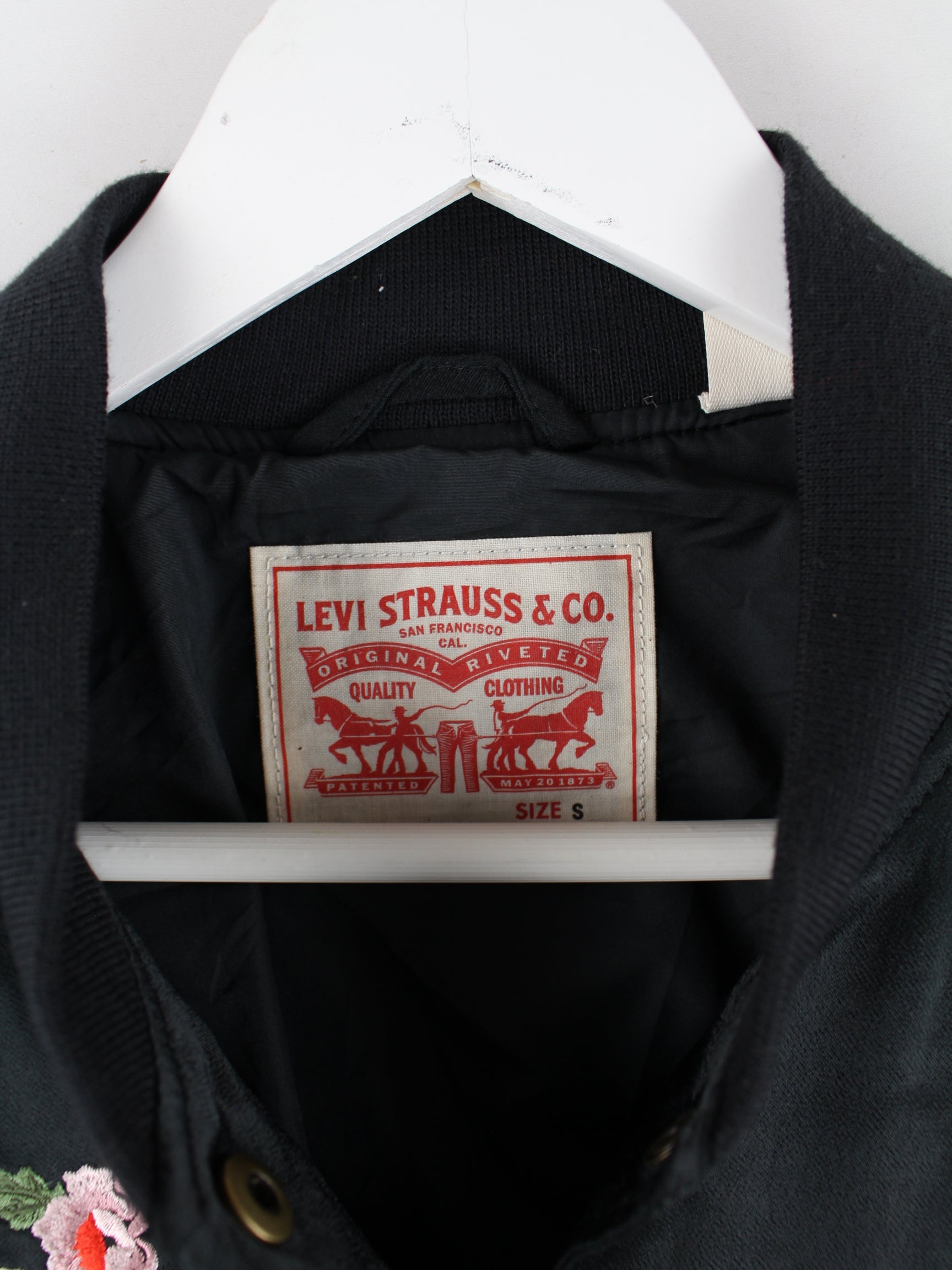Schwarze Leichte Jacke mit gestickten Motiven vom Label Levi's in Größe S. Sie ist aus Synthetik hergestellt und in sehr gutem Zustand zu bekommen.