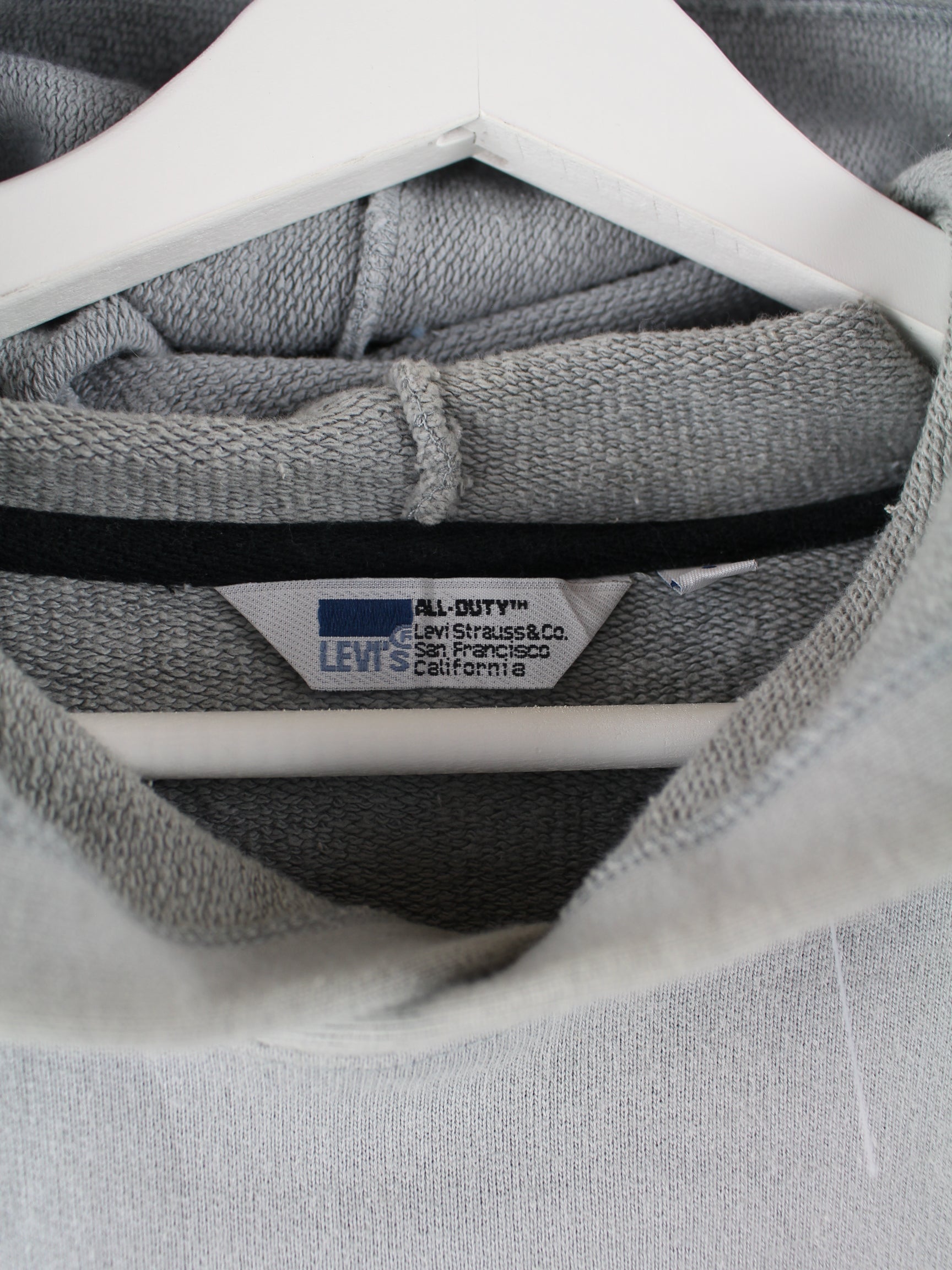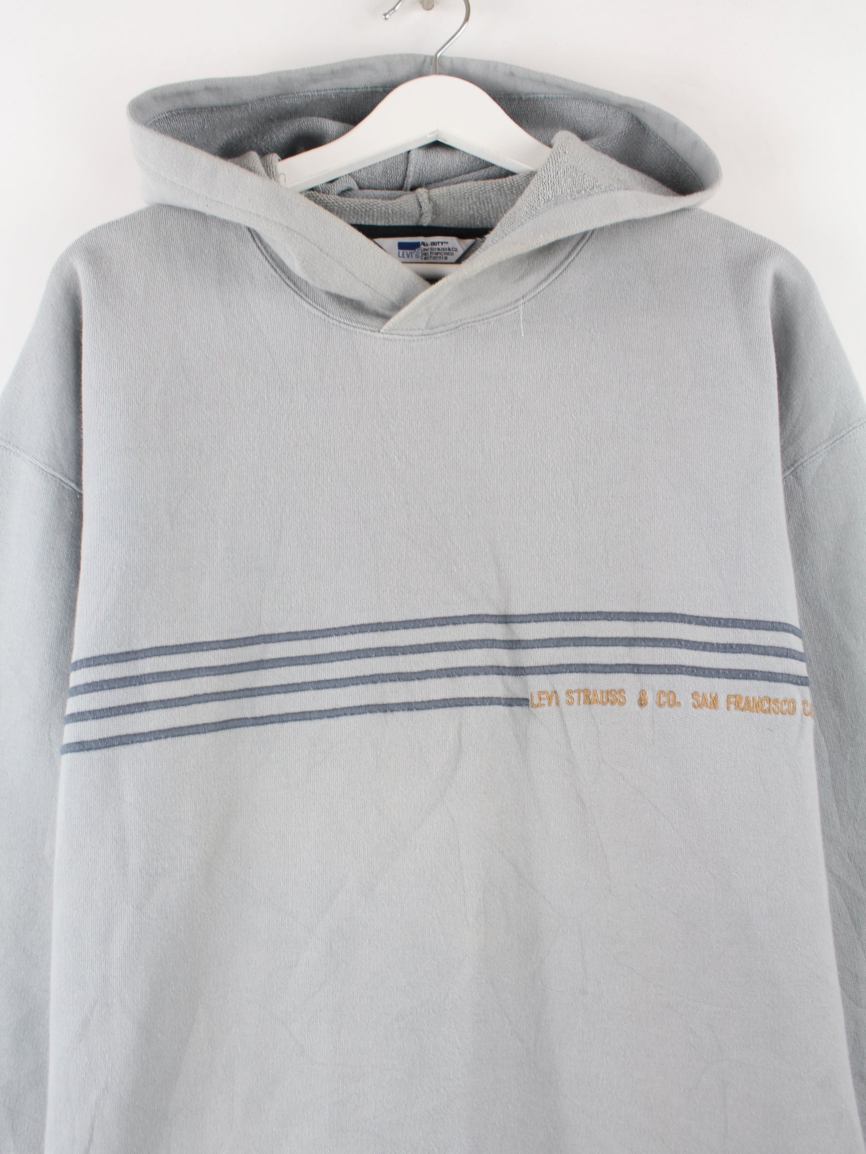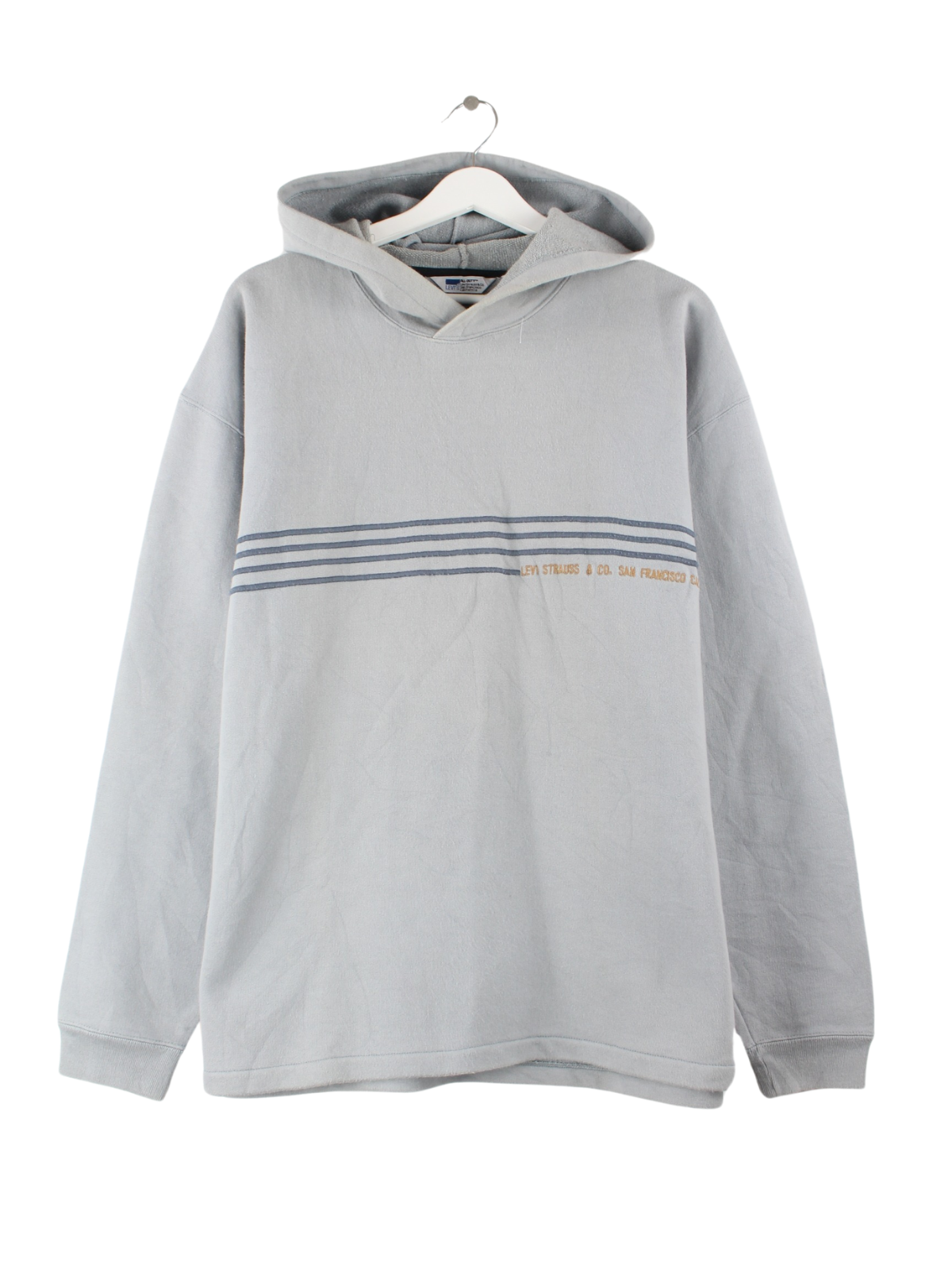 Grauer Hoodie mit Stickereien aus dem Hause Levi's in Größe L. Er ist aus einer Baumwollmischung gefertigt und in sehr gutem Zustand bei uns vorrätig.