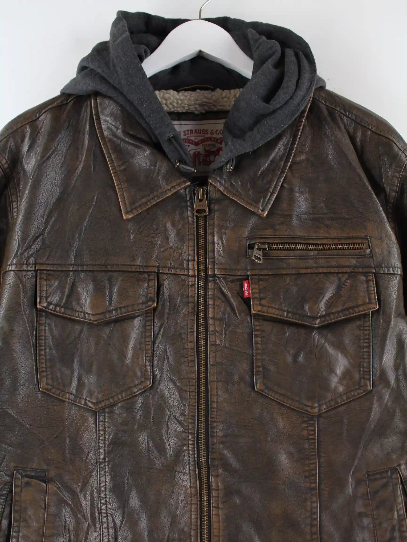 Braune Jacke vom Label Levi's in Größe XL. Sie ist aus Leder hergestellt und in sehr gutem Zustand in Stock.