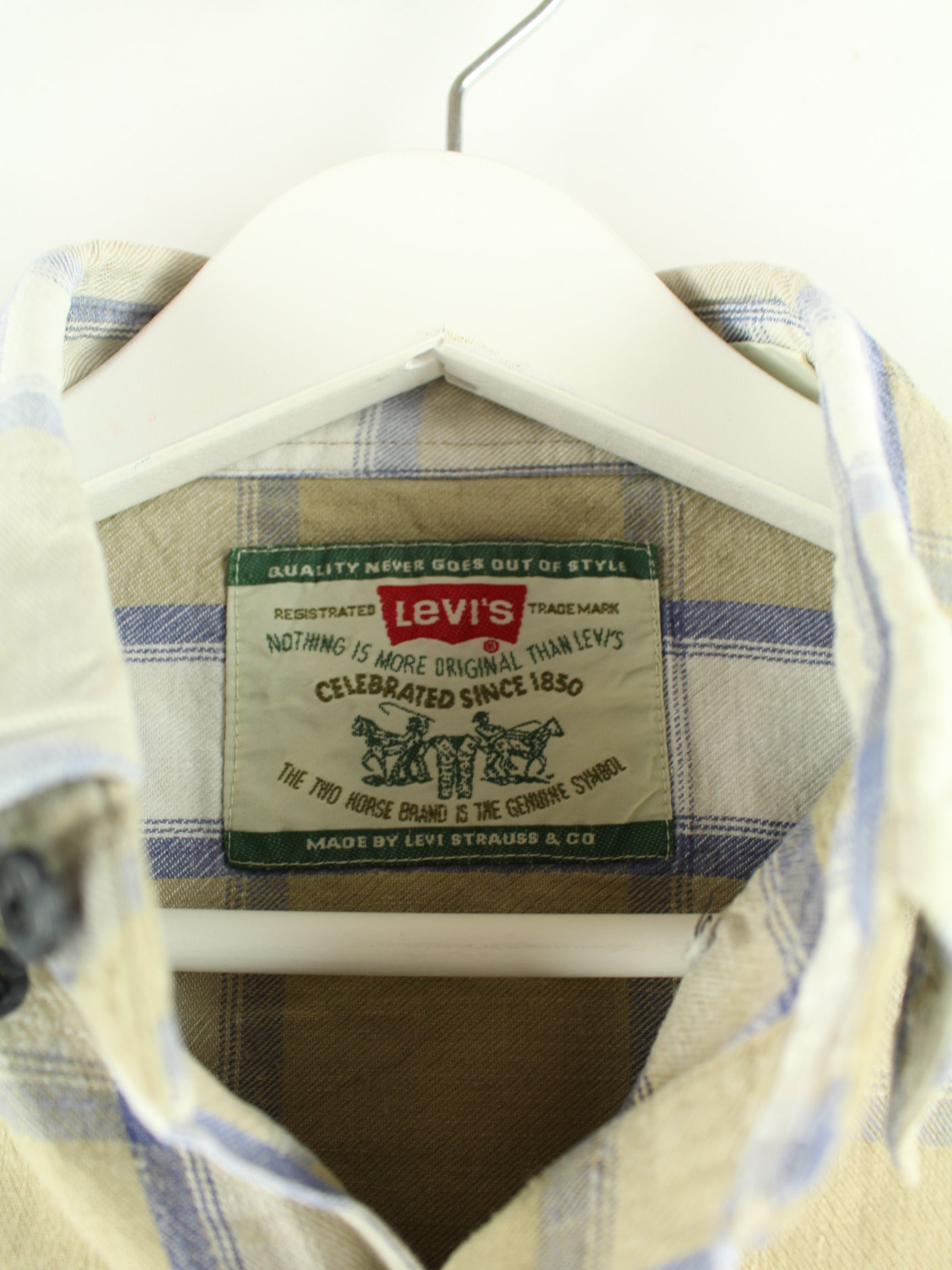 Freizeit Hemd der Marke Levi's in Größe S aus den 90'ern. Es ist aus Baumwolle und in Beige auf Lager.