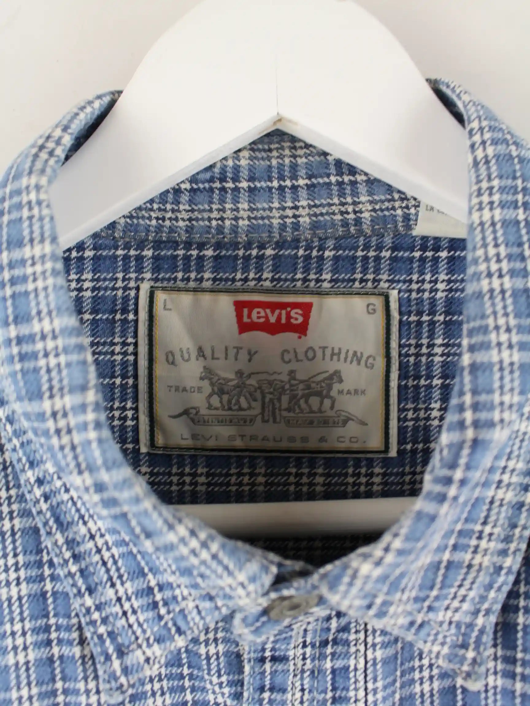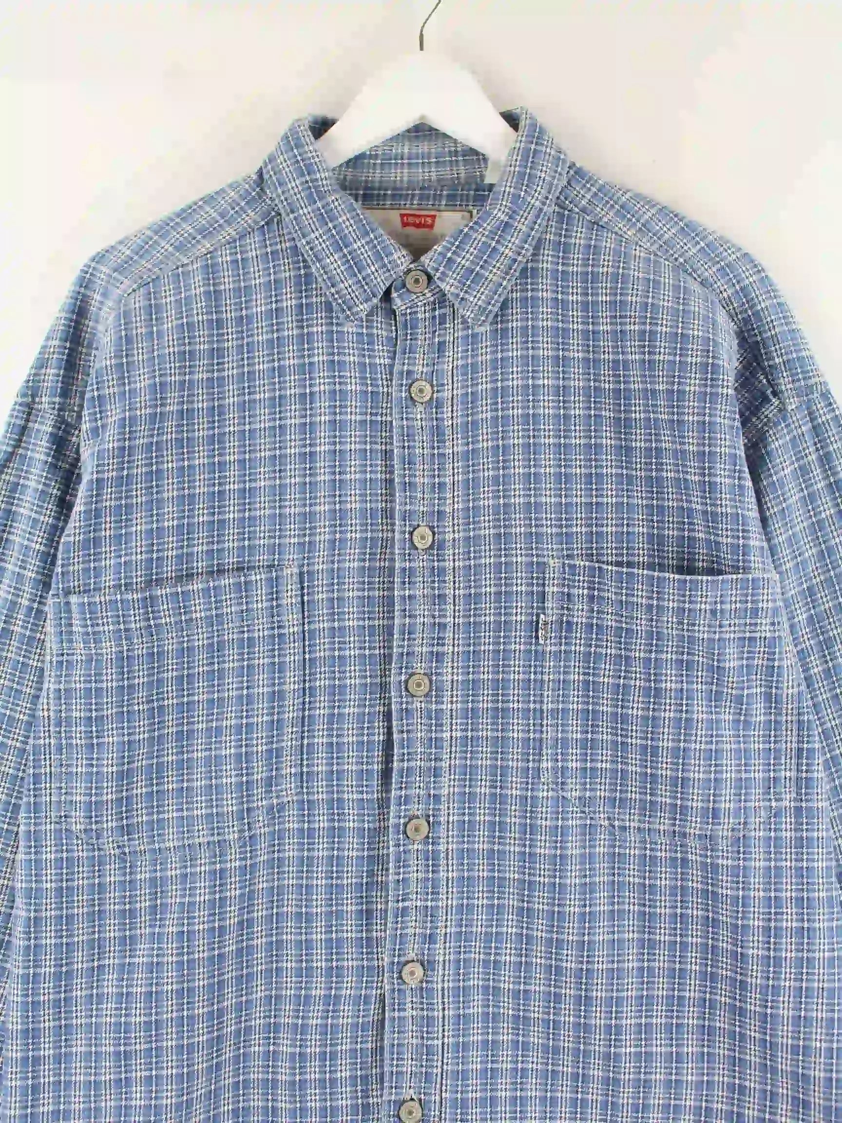 Freizeit Hemd der Brand Levi's in Größe L aus den 90'ern. Es ist aus Baumwolle gemacht und in Blau im Angebot.