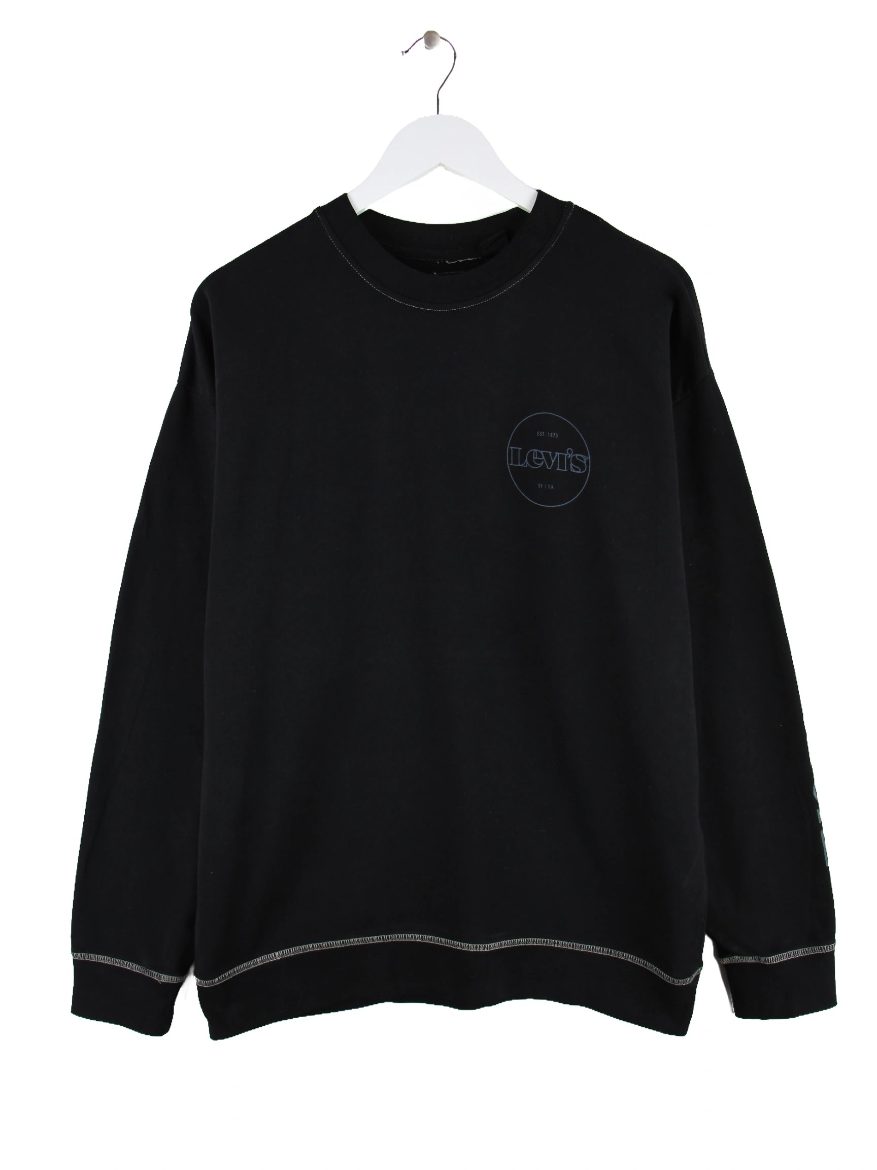 Schwarzer Sweater der Marke Levi's in Größe S. Er ist aus einer Baumwollmischung hergestellt und in sehr gutem Zustand vorrätig. Mit tollem Print.