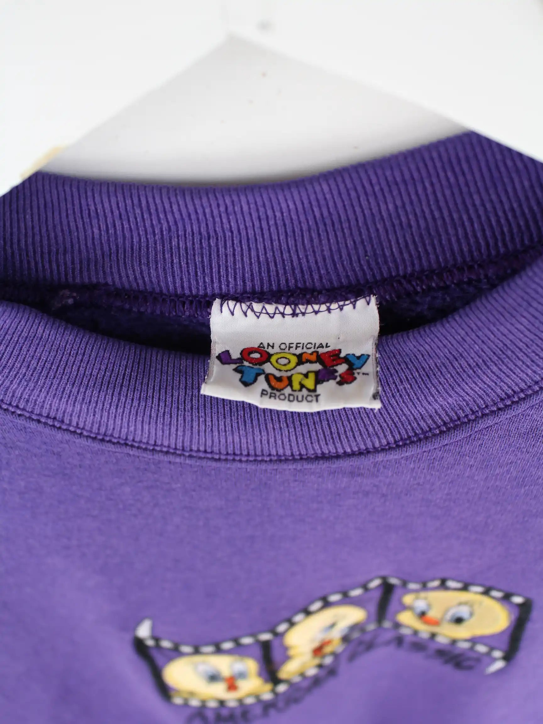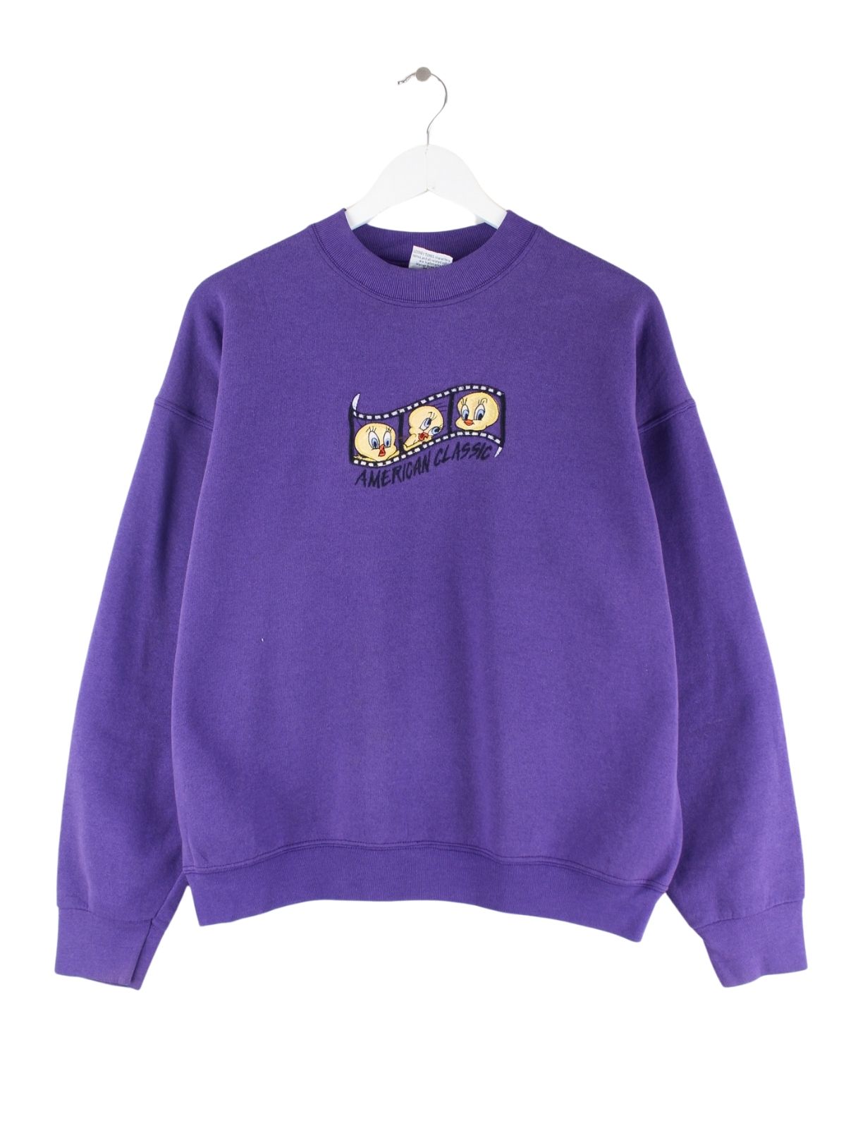 Looney Tunes 90s Vintage Tweety Embroidered Sweater Lila XL