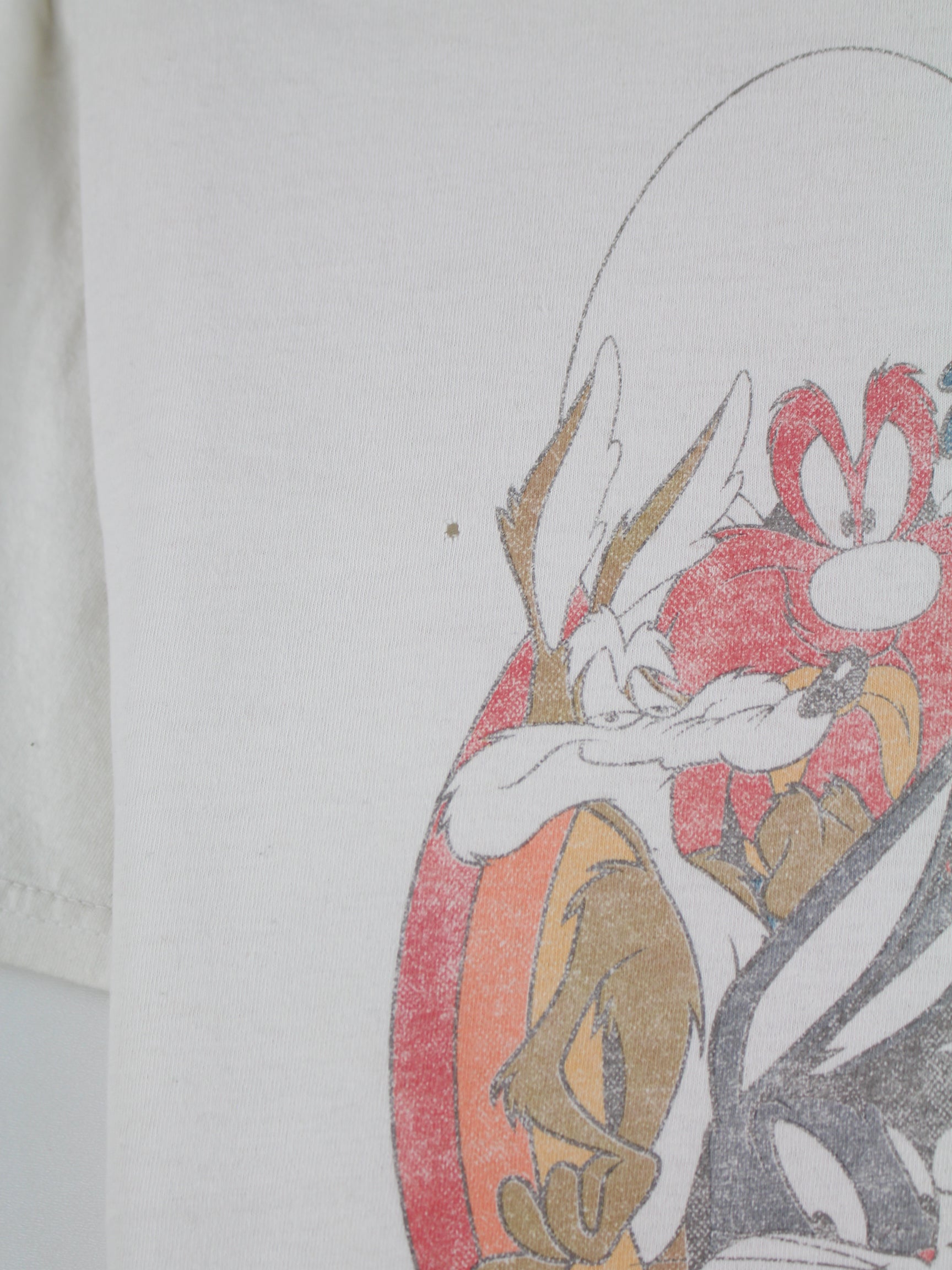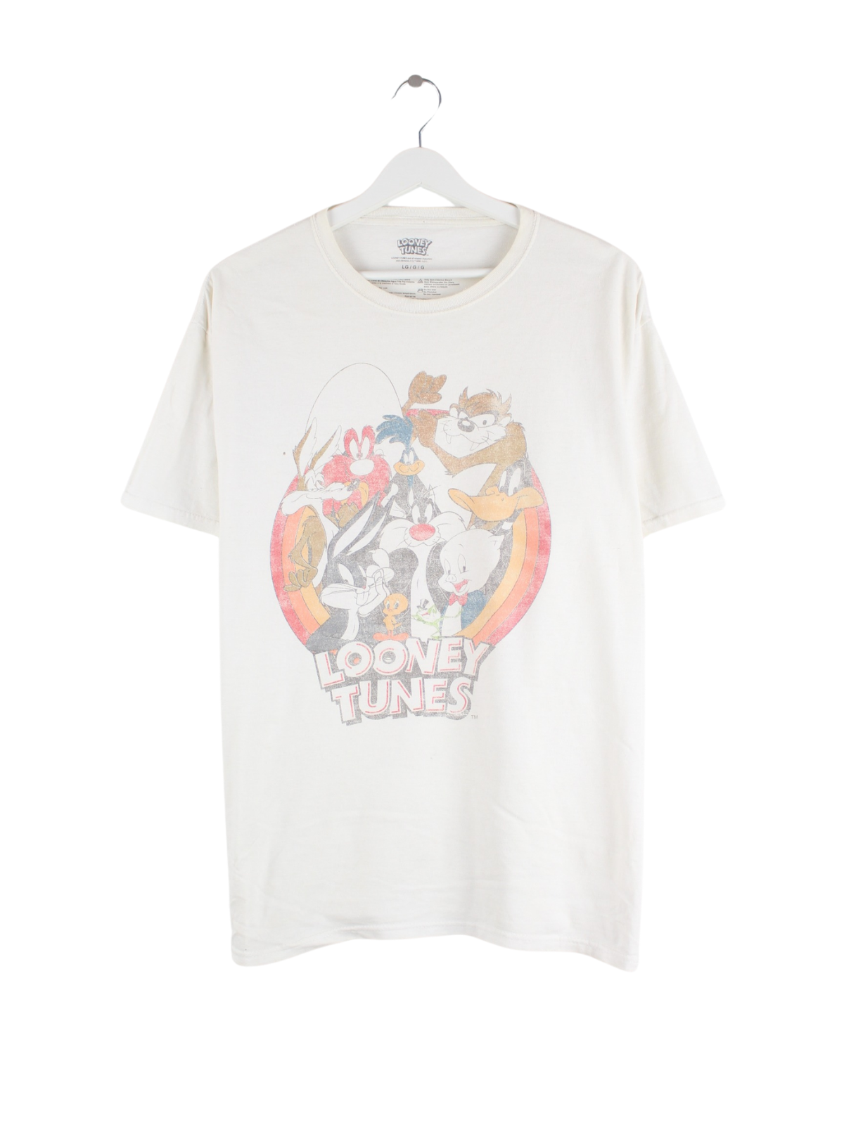 Weißes T-Shirt des Labels Looney Tunes in Größe L. Es ist aus Baumwolle produziert und in gutem Zustand in Stock. Mit schickem Print.