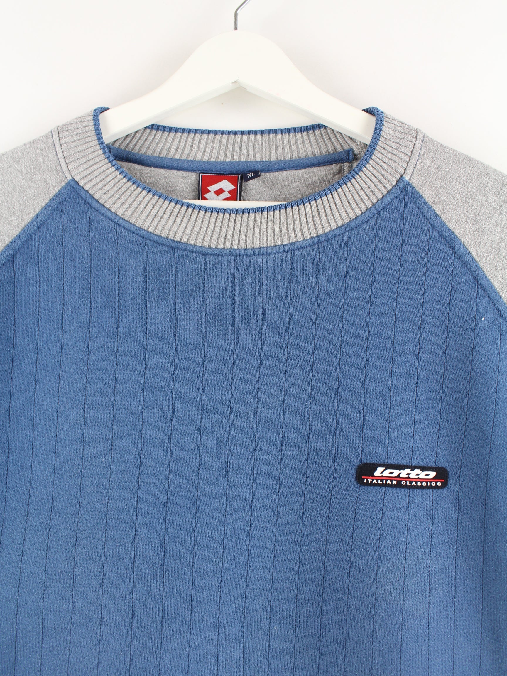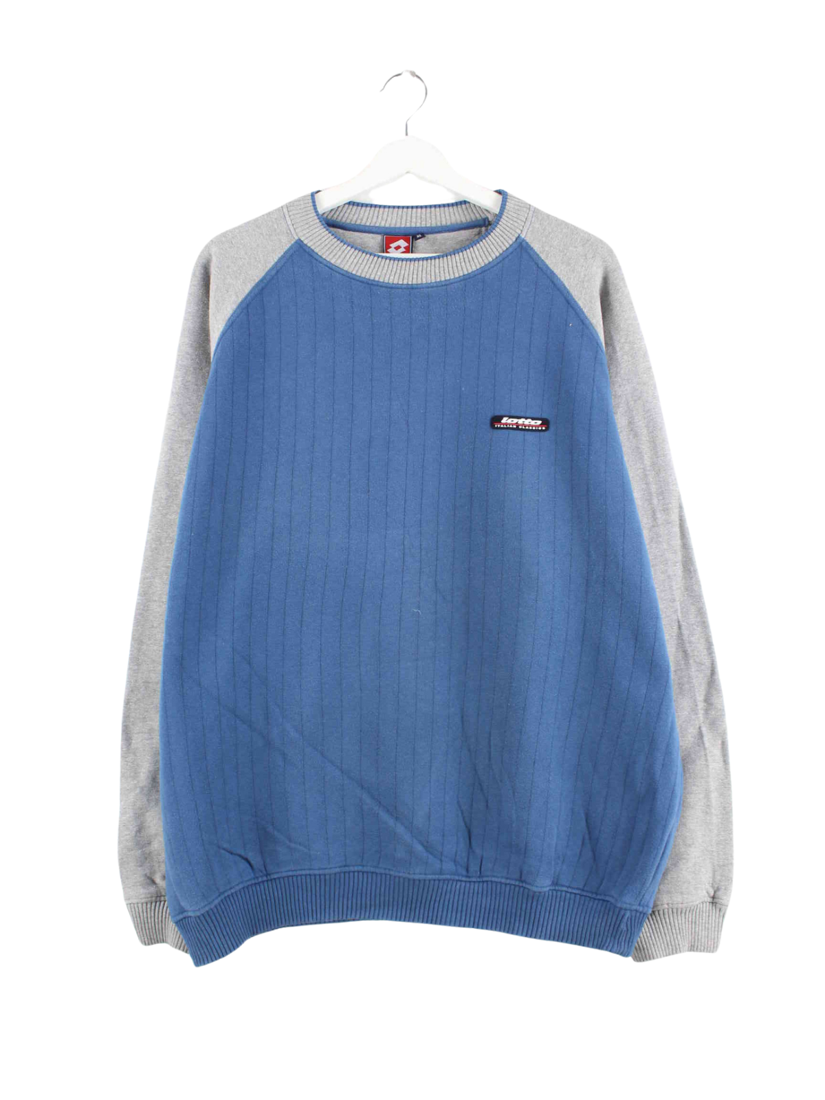Sehr schöner Sweater vom Brand Lotto in Größe XL aus Anfang der 2000'er. Er ist aus einer Baumwollmischung gefertigt und in Blau bei uns vorrätig.