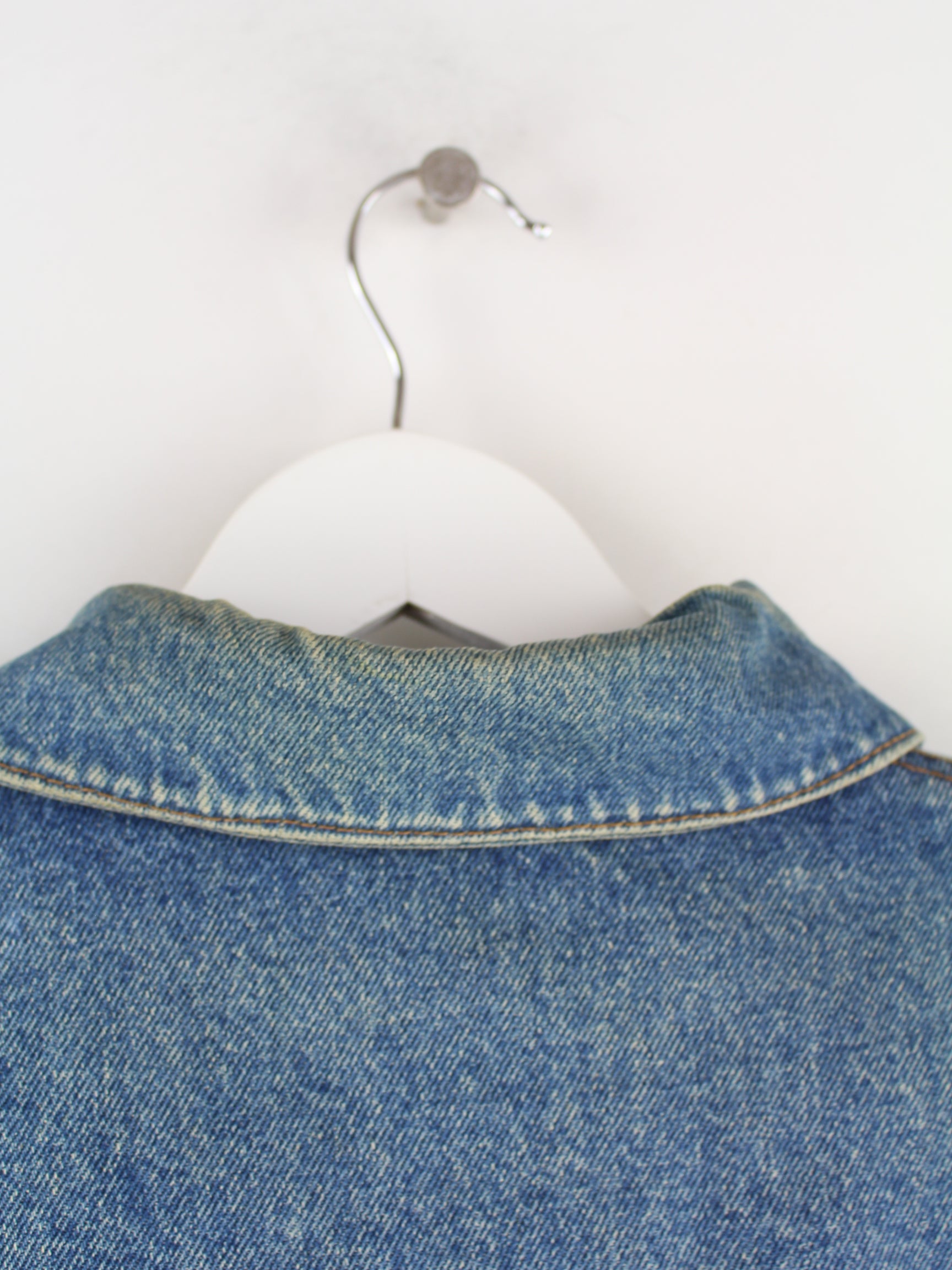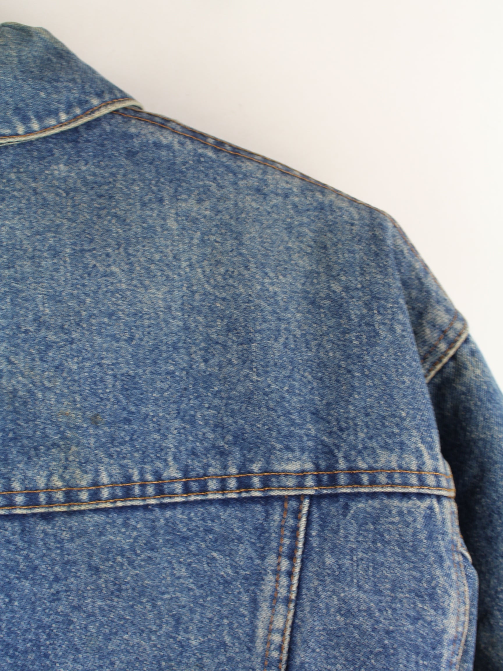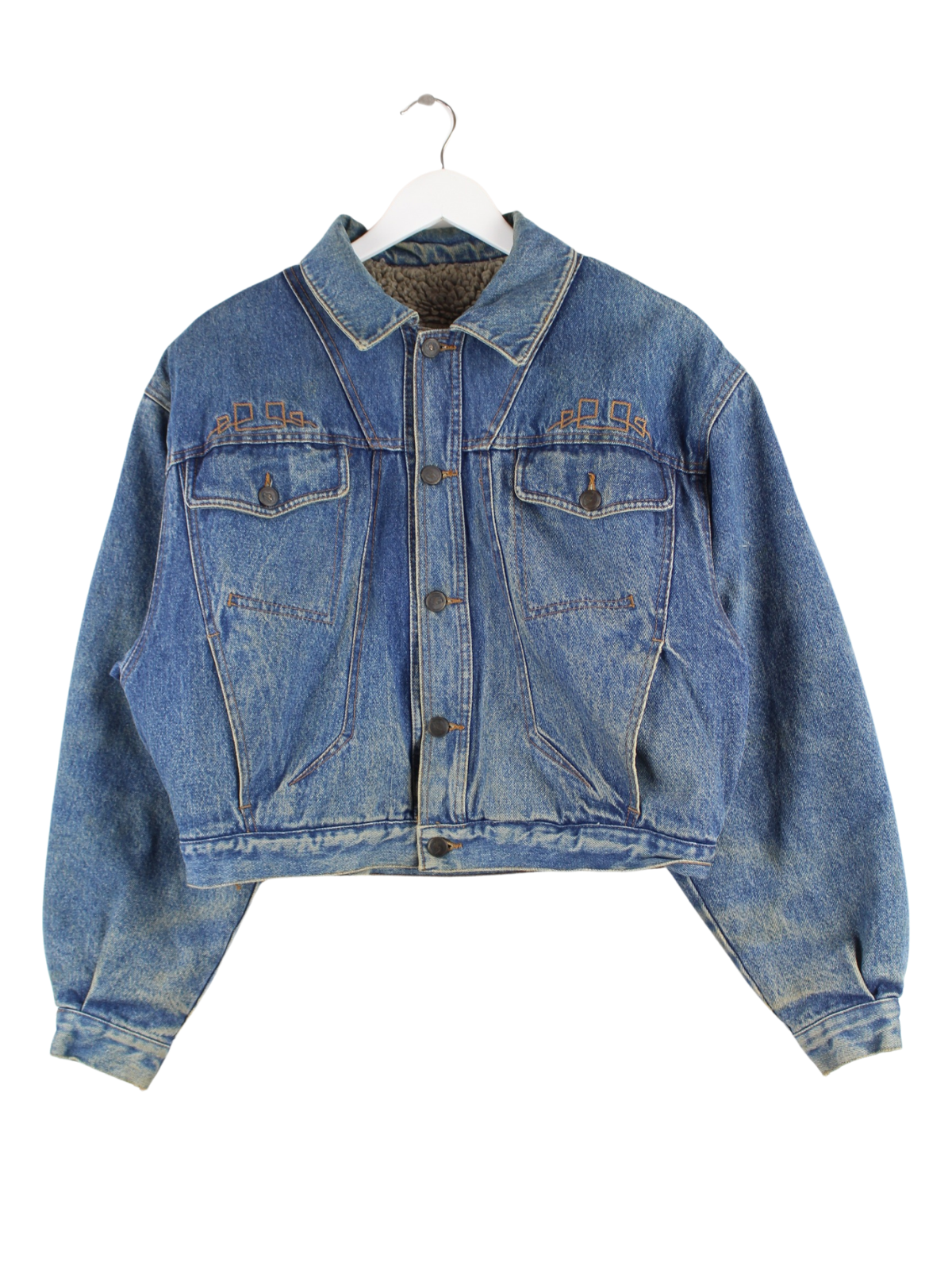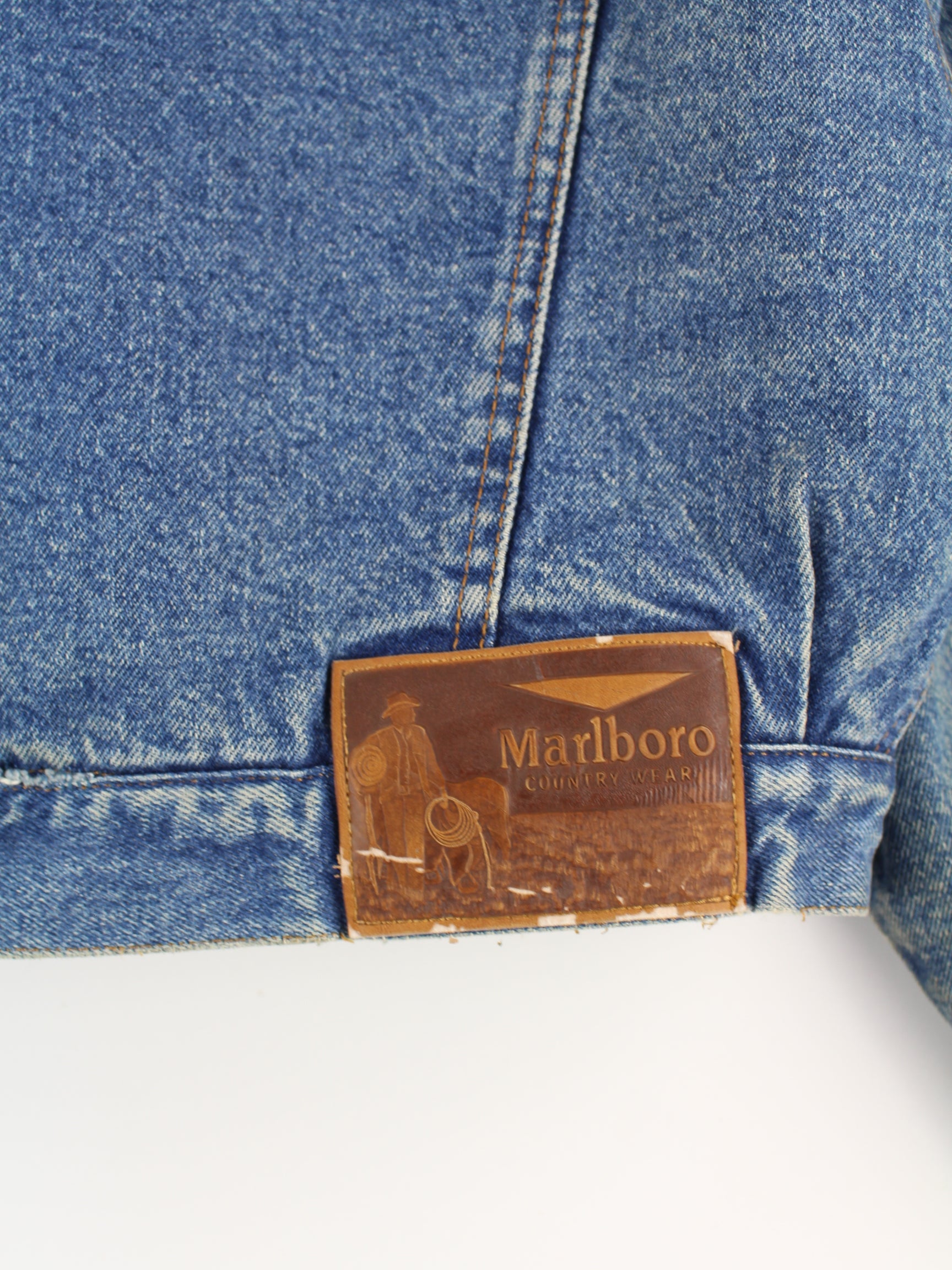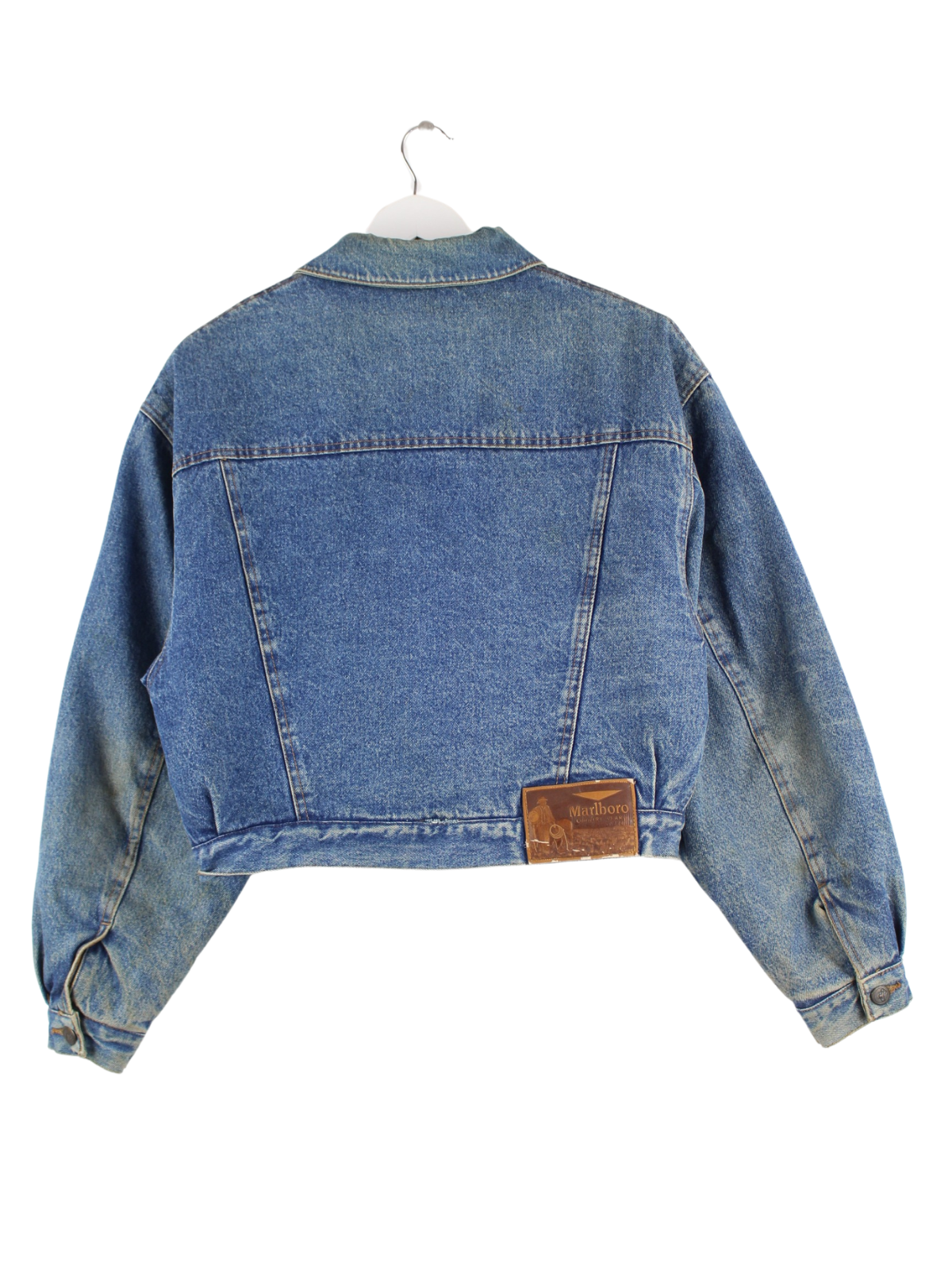 Marlboro Damen 80s Vintage Gefütterte Crop Jeans Jacke Blau S