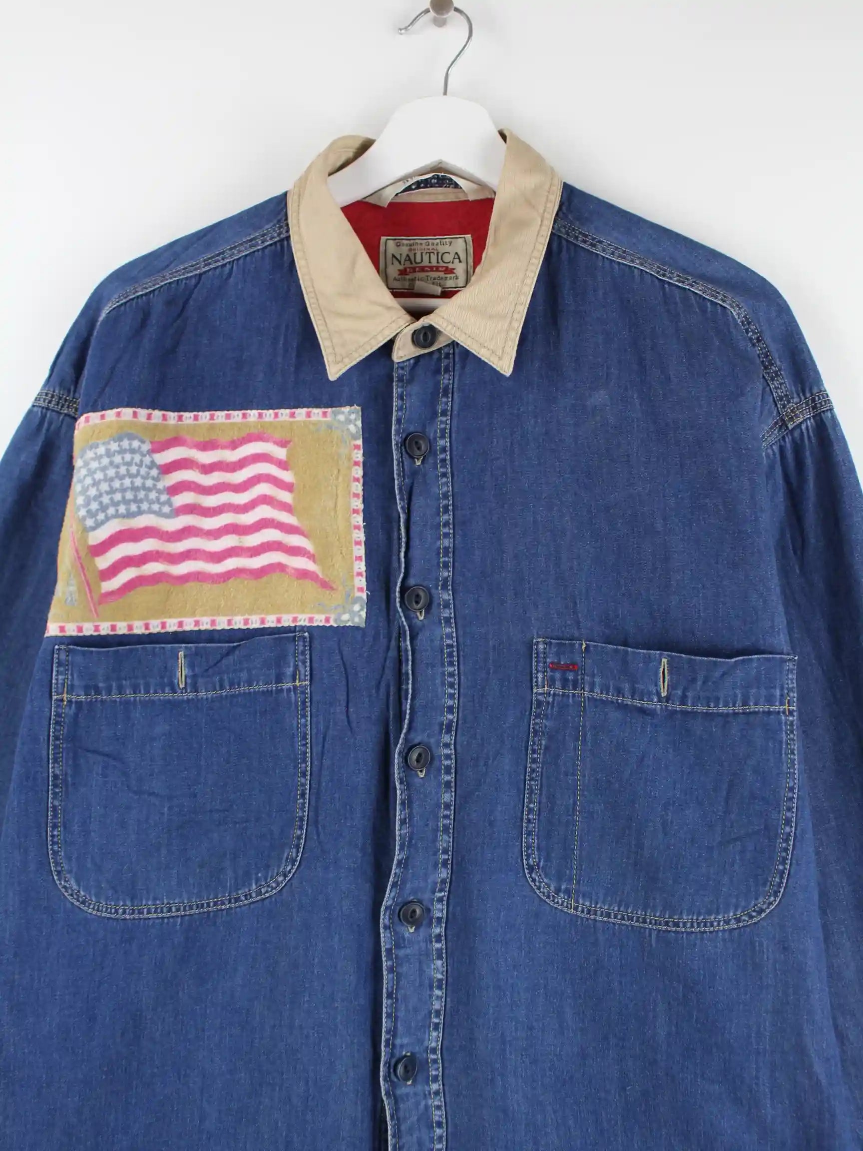 Freizeit Hemd vom Brand Nautica in Größe XL aus den 80'ern. Es ist aus Baumwolle hergestellt und in Blau zu bekommen.