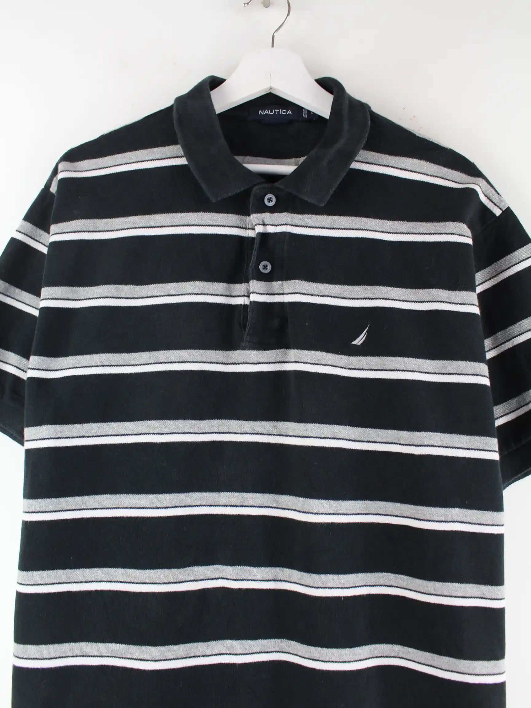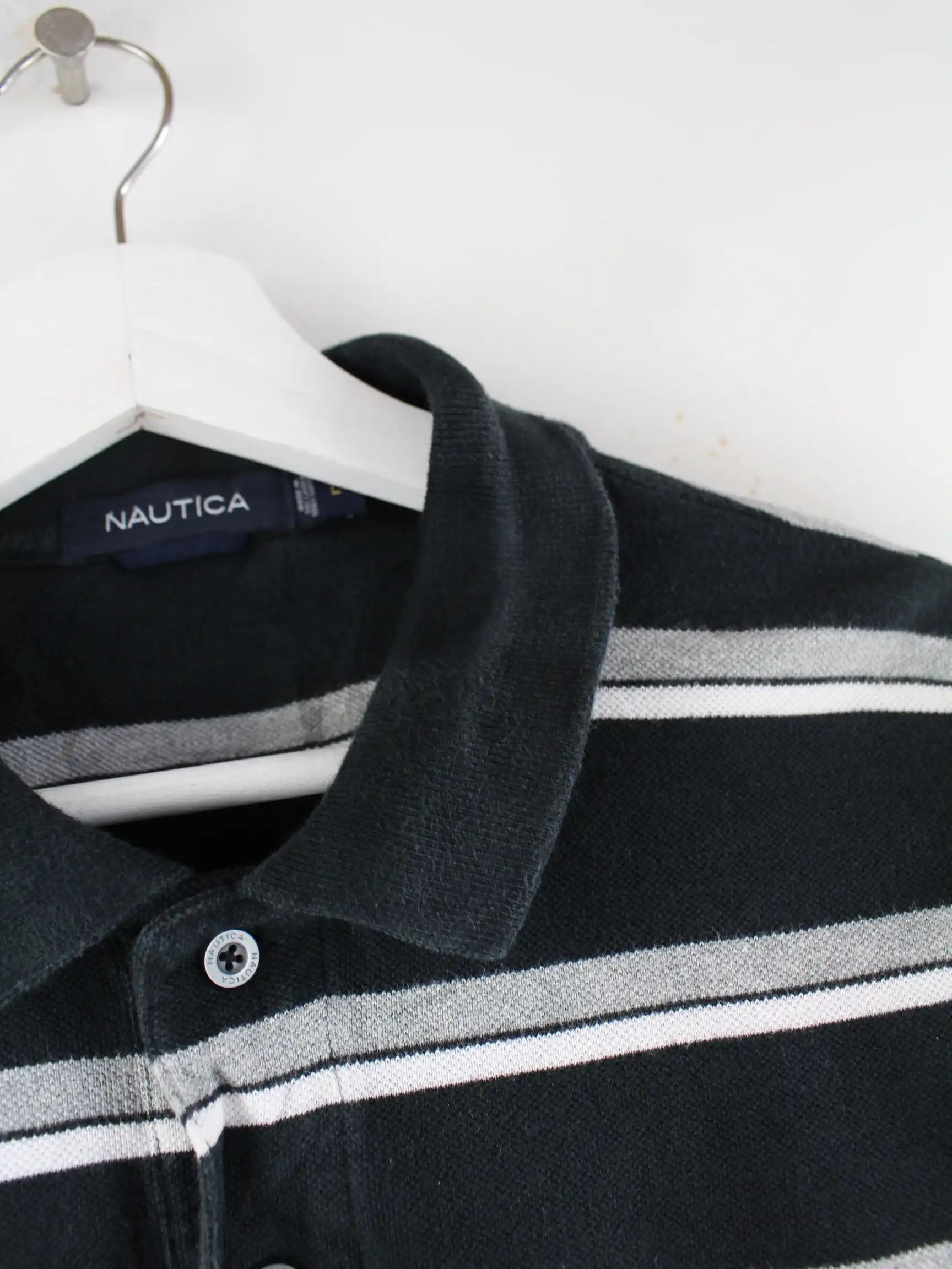 Poloshirt von Nautica in Größe L. Es ist aus Baumwolle gefertigt und in Schwarz im Angebot.