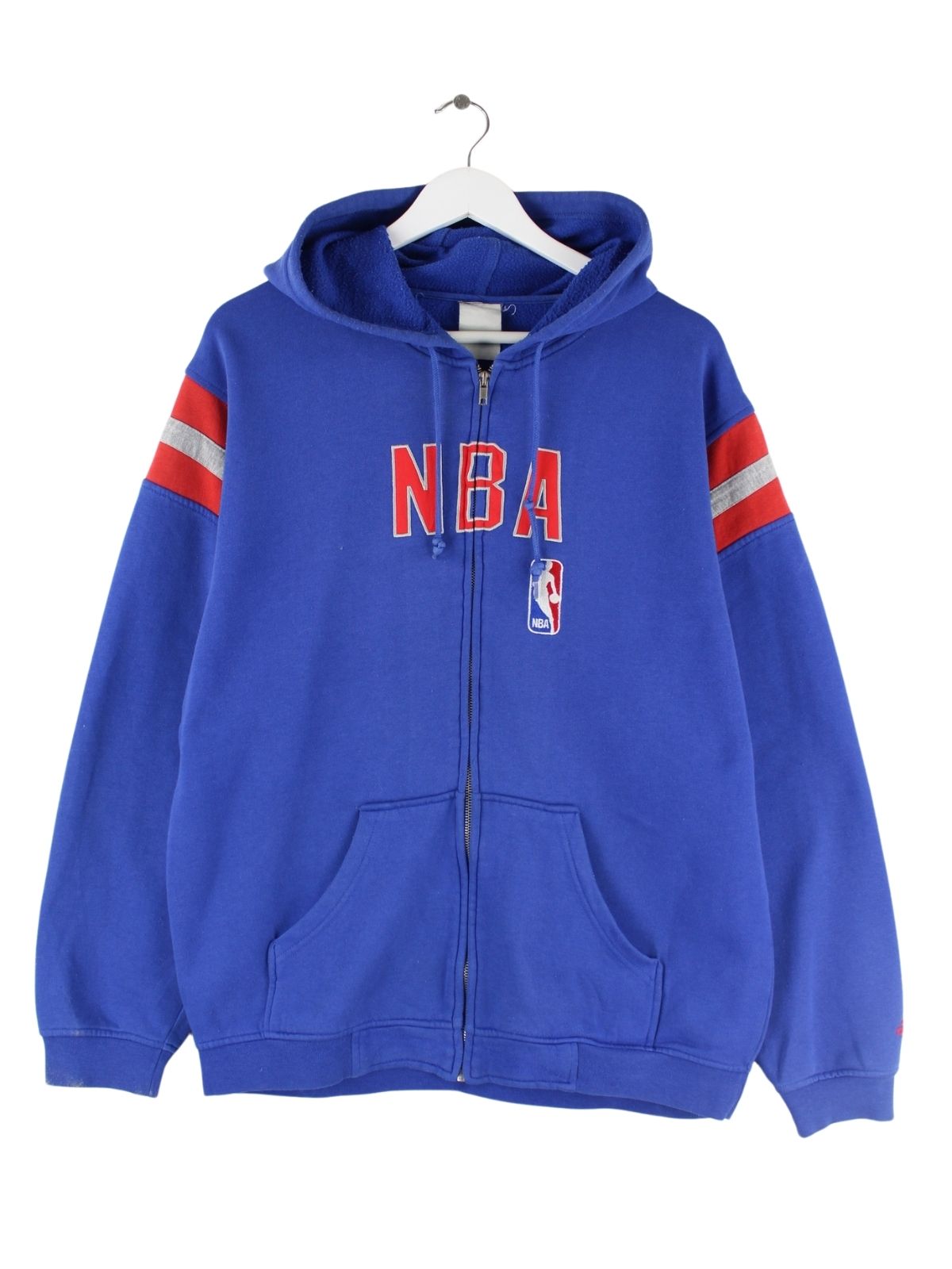 Hoodie vom Label NBA mit gesticktem Logo und Zip in Größe L. Er ist aus einer Baumwollmischung hergestellt und in Blau auf Lager.