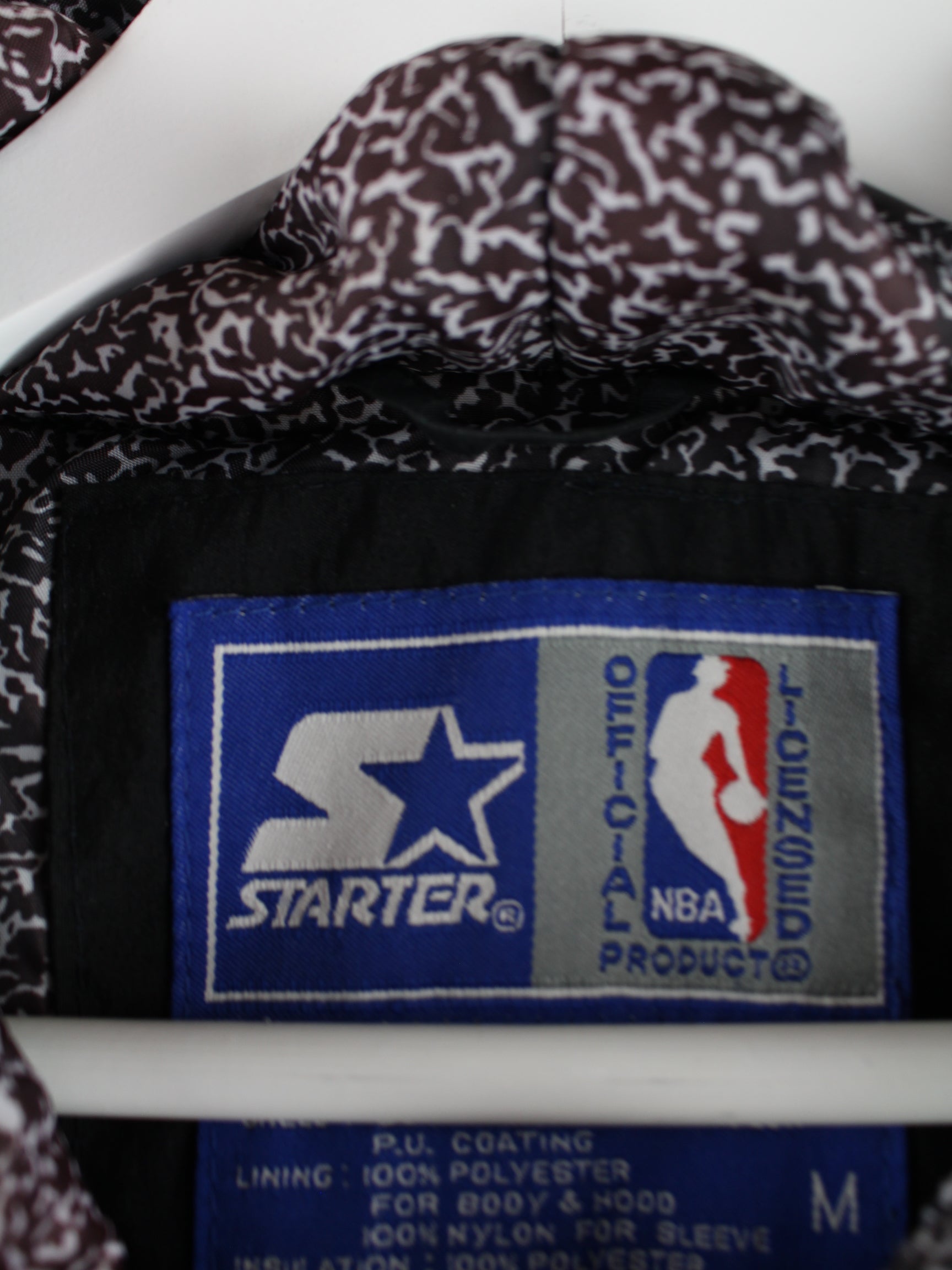 Jacke vom Label NBA mit gesticktem Logo in Größe M aus den 90'ern. Sie ist aus Synthetik und in Schwarz vorrätig.