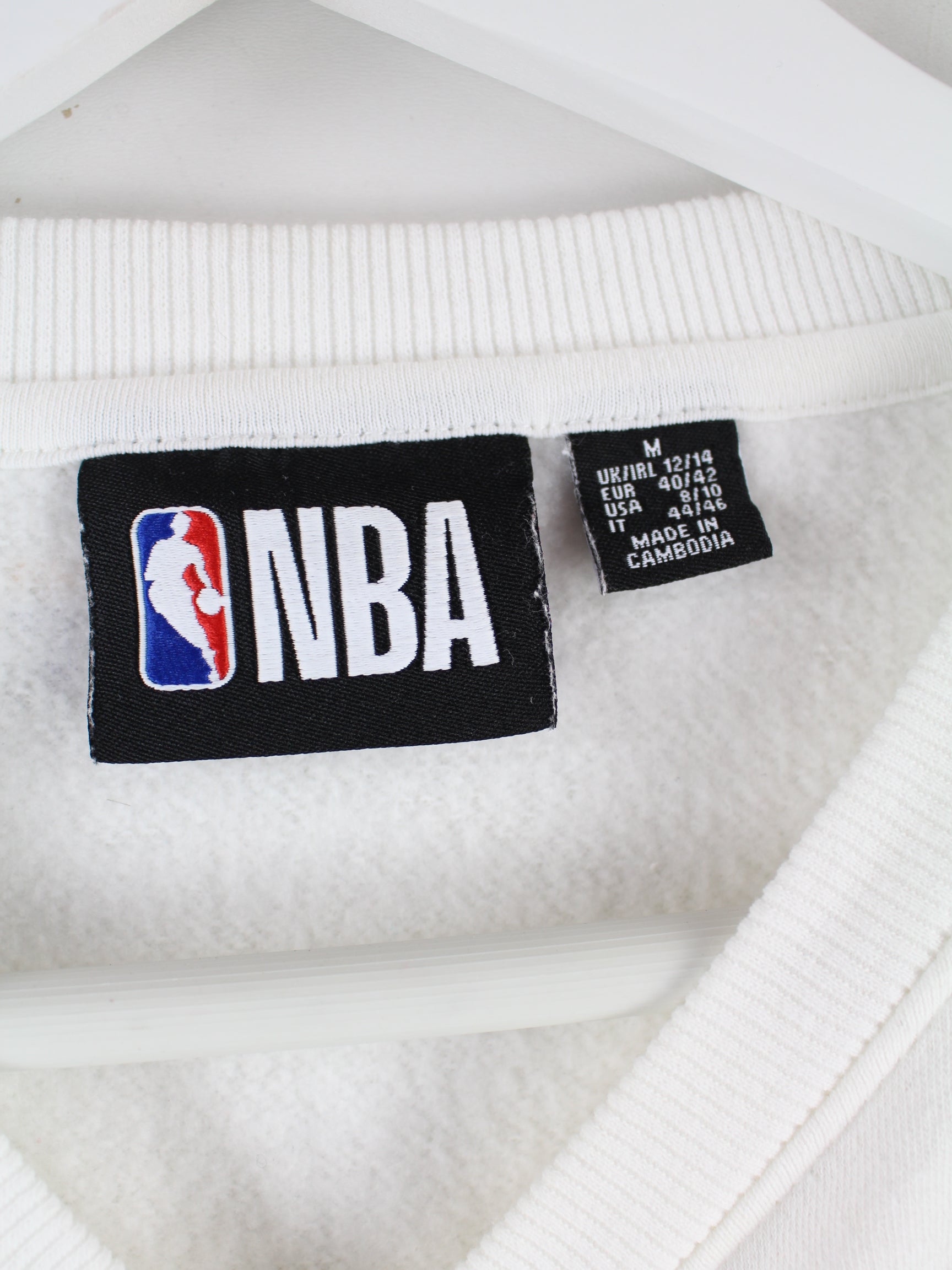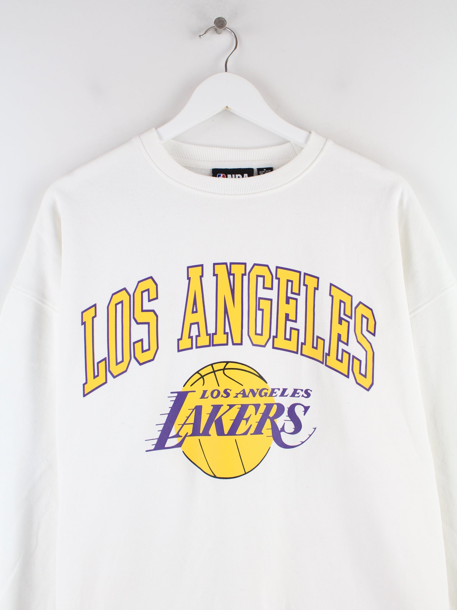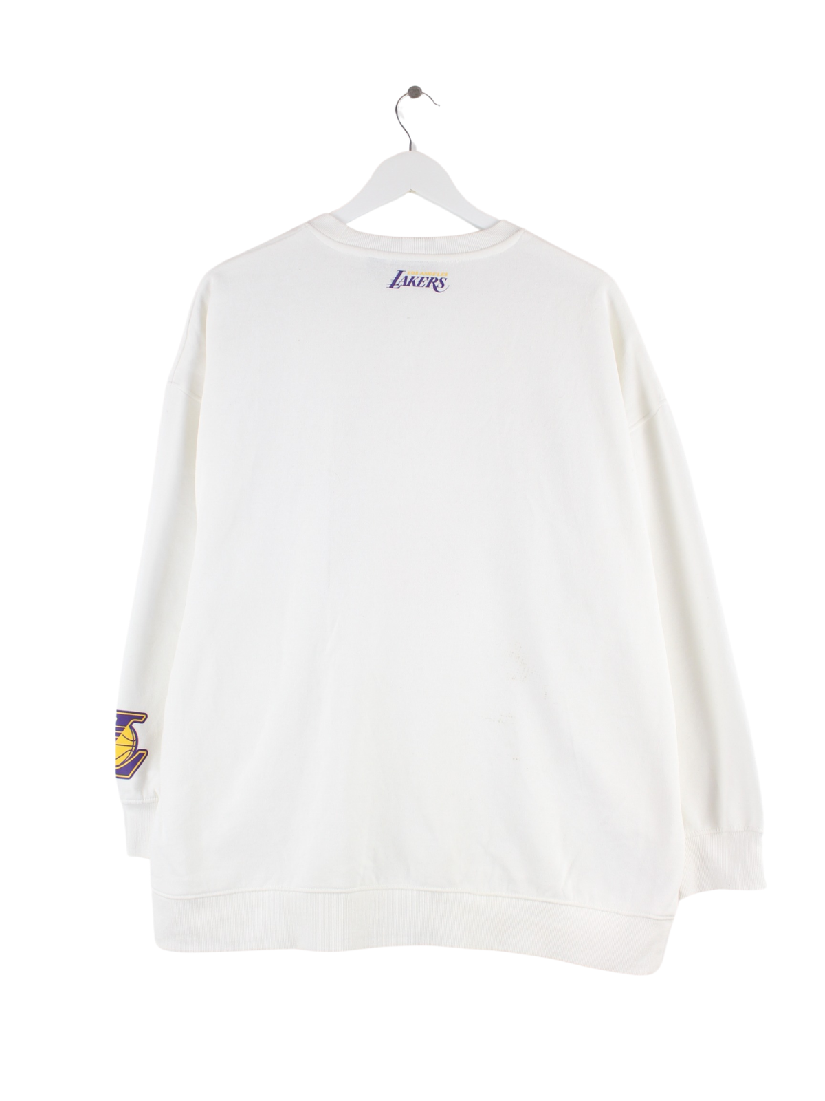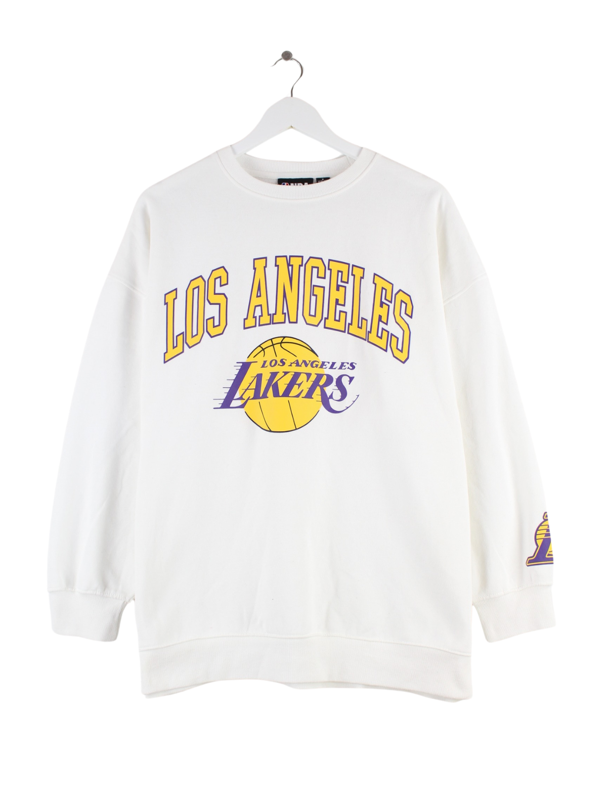 Sweater der Marke NBA in Größe M. Er ist aus einer Baumwollmischung produziert und in Weiß bei uns vorrätig. Mit chiquem Lakers Print.
