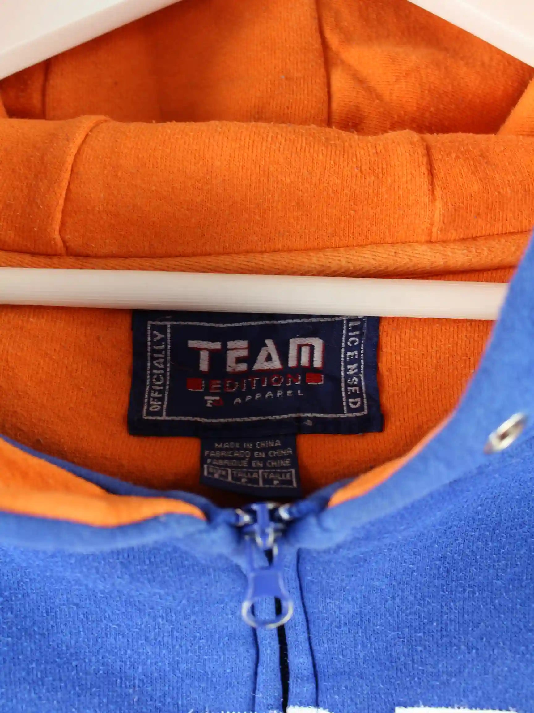Hoodie von NCAA mit gesticktem Logo und Reißverschluß in Größe S. Er ist aus einer Baumwollmischung hergestellt und in Blau bei uns vorrätig.