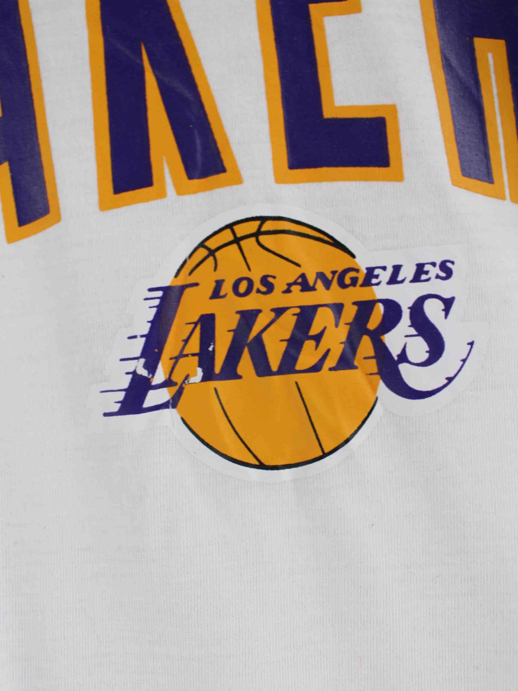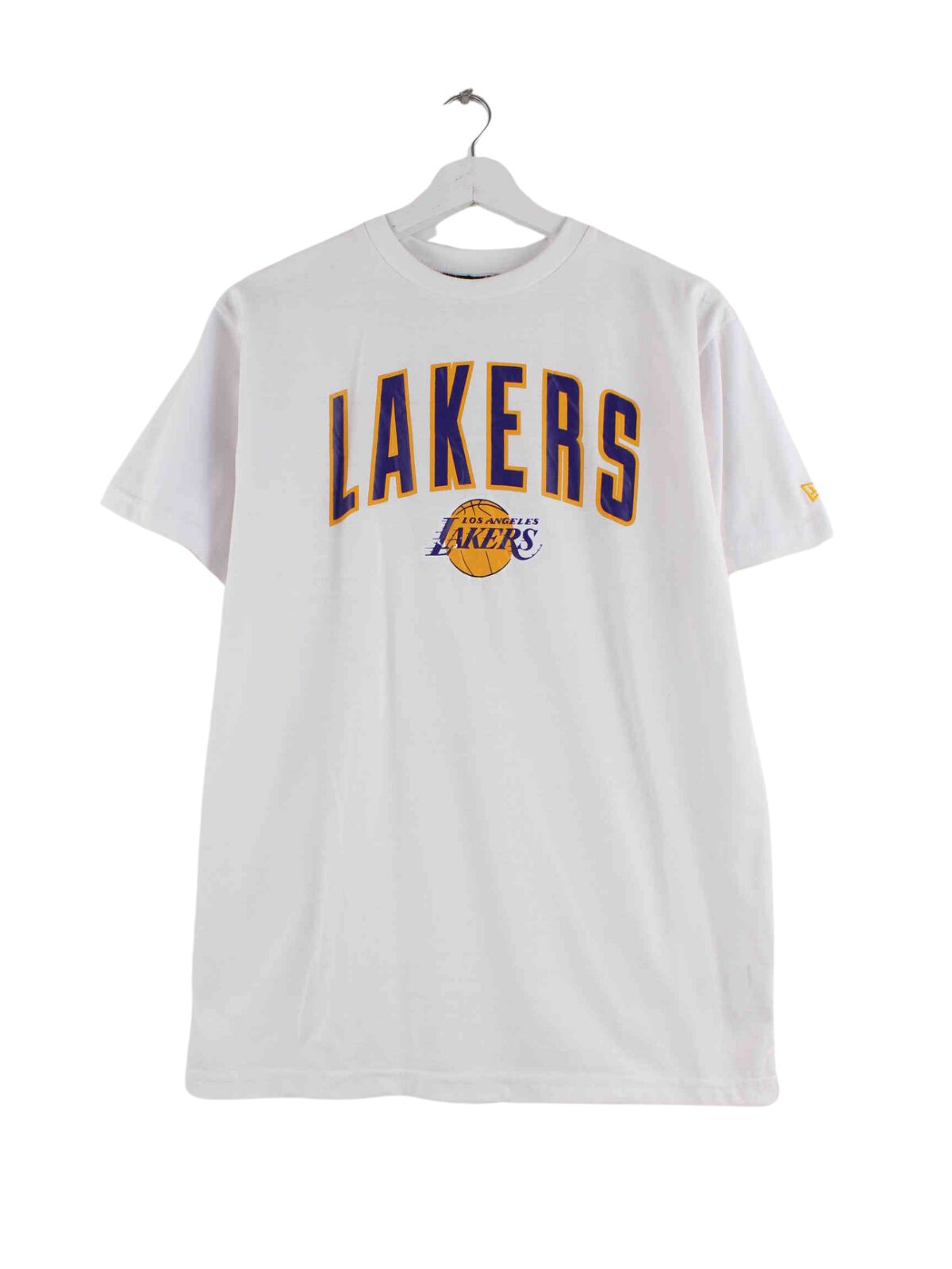 T-Shirt aus dem Hause New Era in Größe XS. Es ist aus einer Baumwollmischung hergestellt und in Weiß lieferbar. Mit schickem Lakers Print.