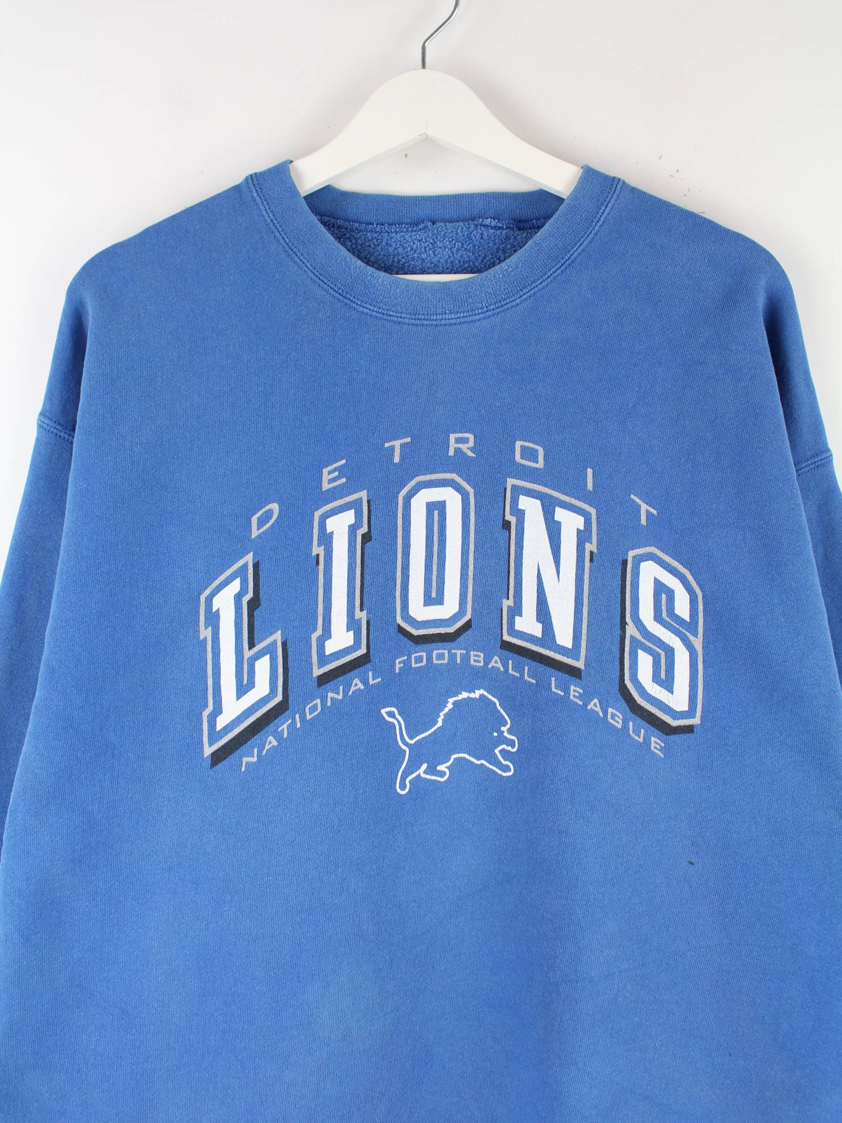 NFL 90s Vintage Detroit Lions Print Sweater Blau XL