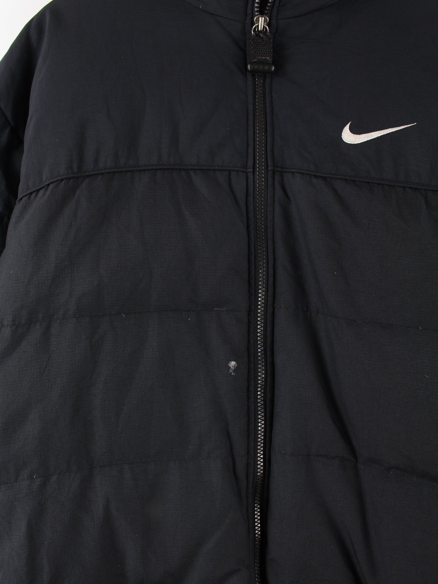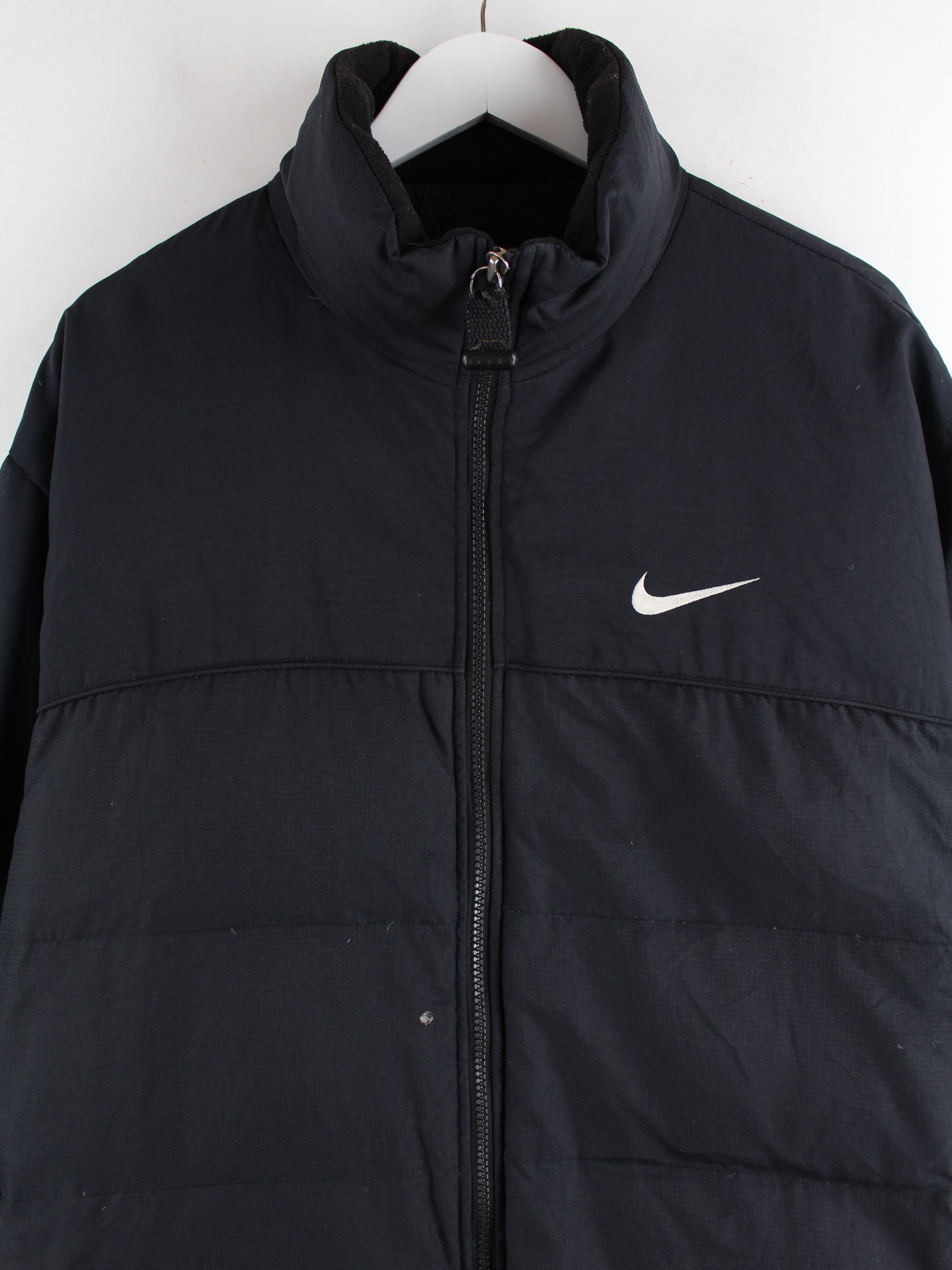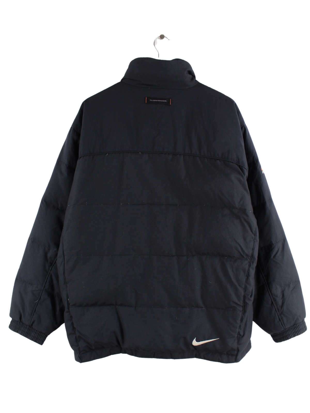 Schwarze Jacke aus dem Hause Nike in Größe L. Sie ist aus Synthetik gemacht. Den Zustand würden wir als 'In Ordnung' bezeichnen (vergl. Bilder).