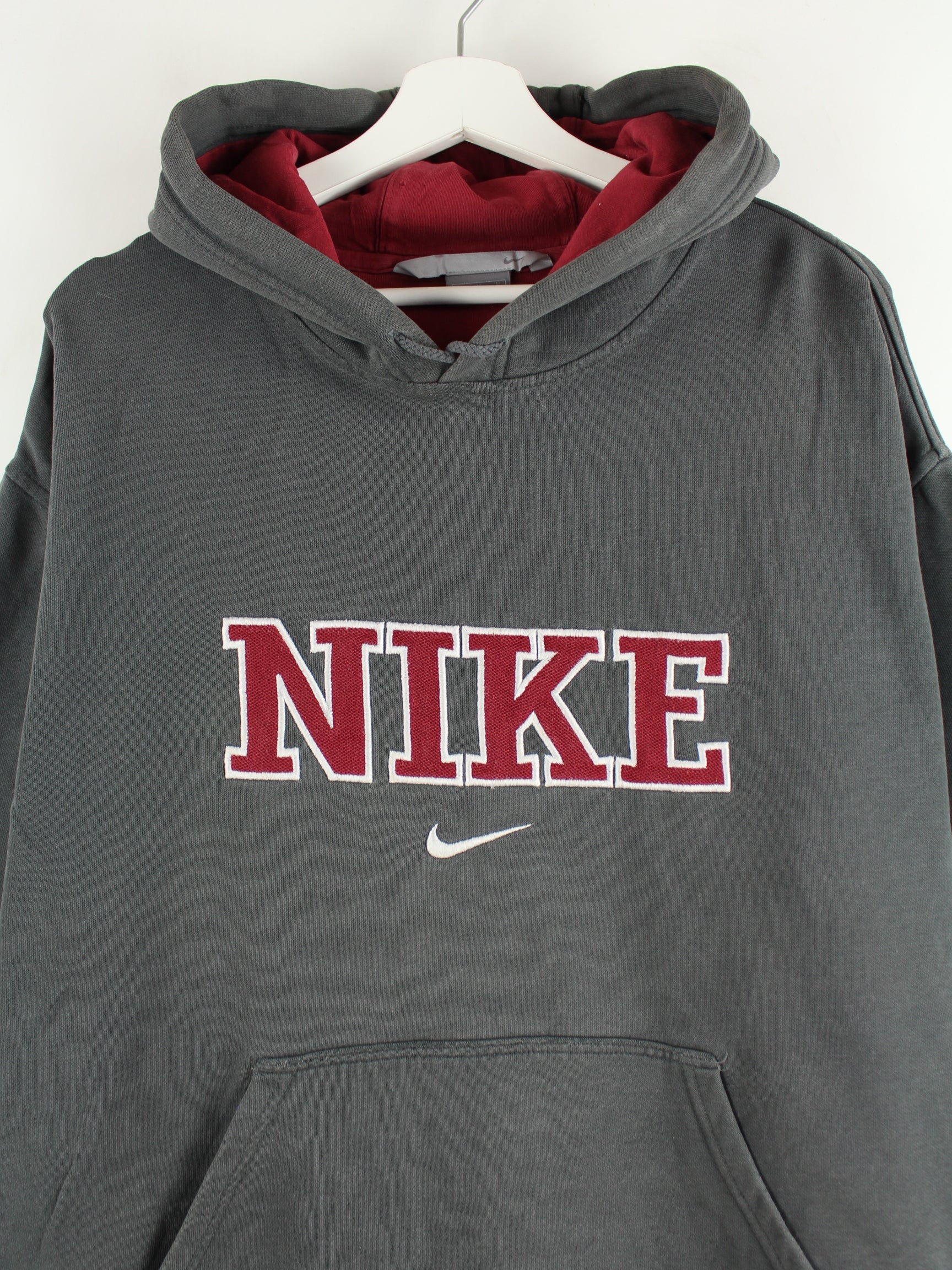 Nike 00s Center Swoosh Spellout Embroidered Hoodie Grau L