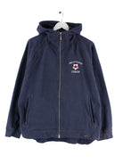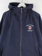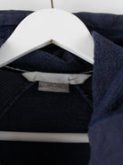 Hoodie der Marke Nike mit gestickten Motiven und durchgehendem Reißverschluß in Größe M. Er ist aus einer Baumwollmischung hergestellt und in Blau bei uns vorrätig.