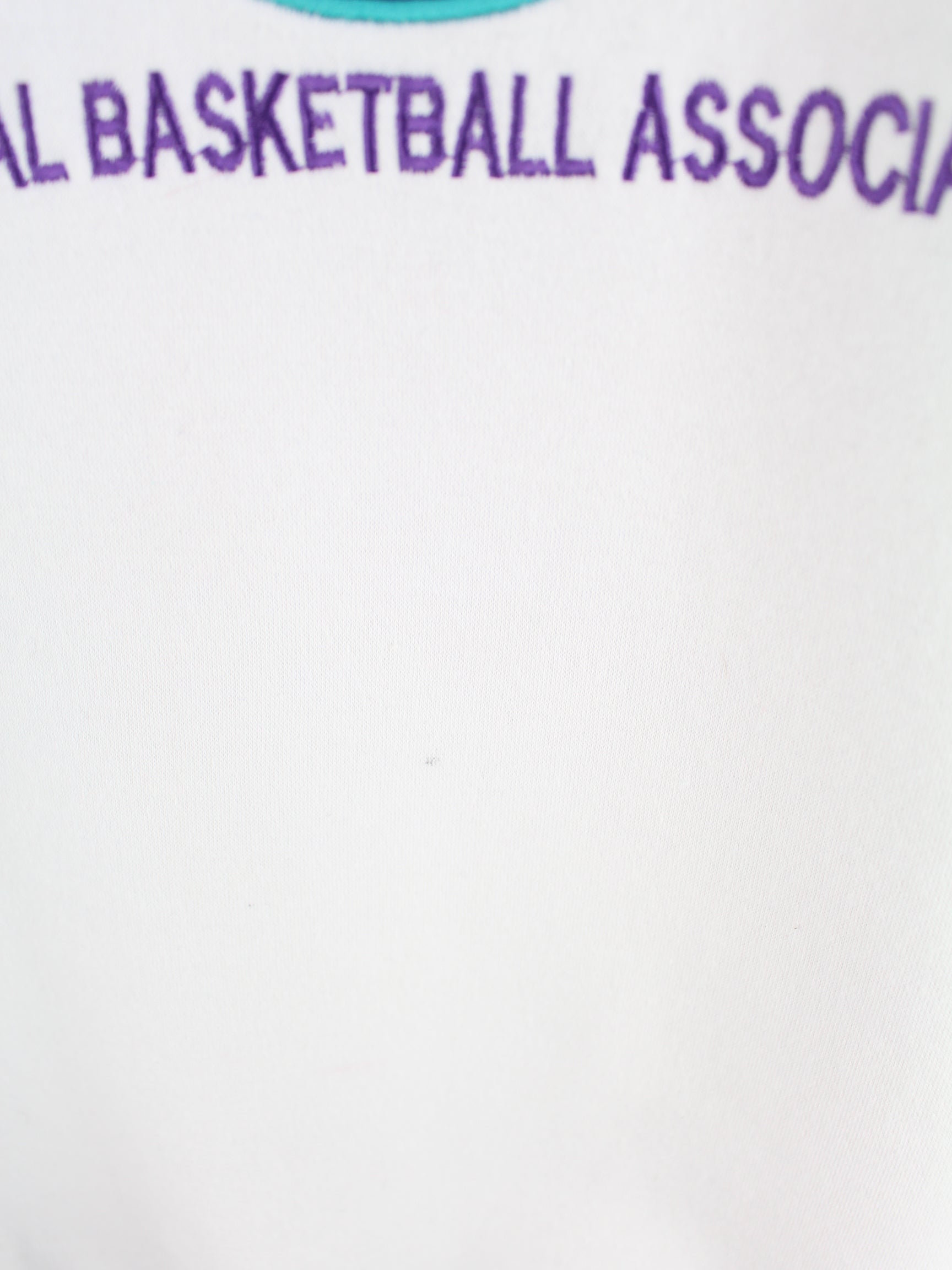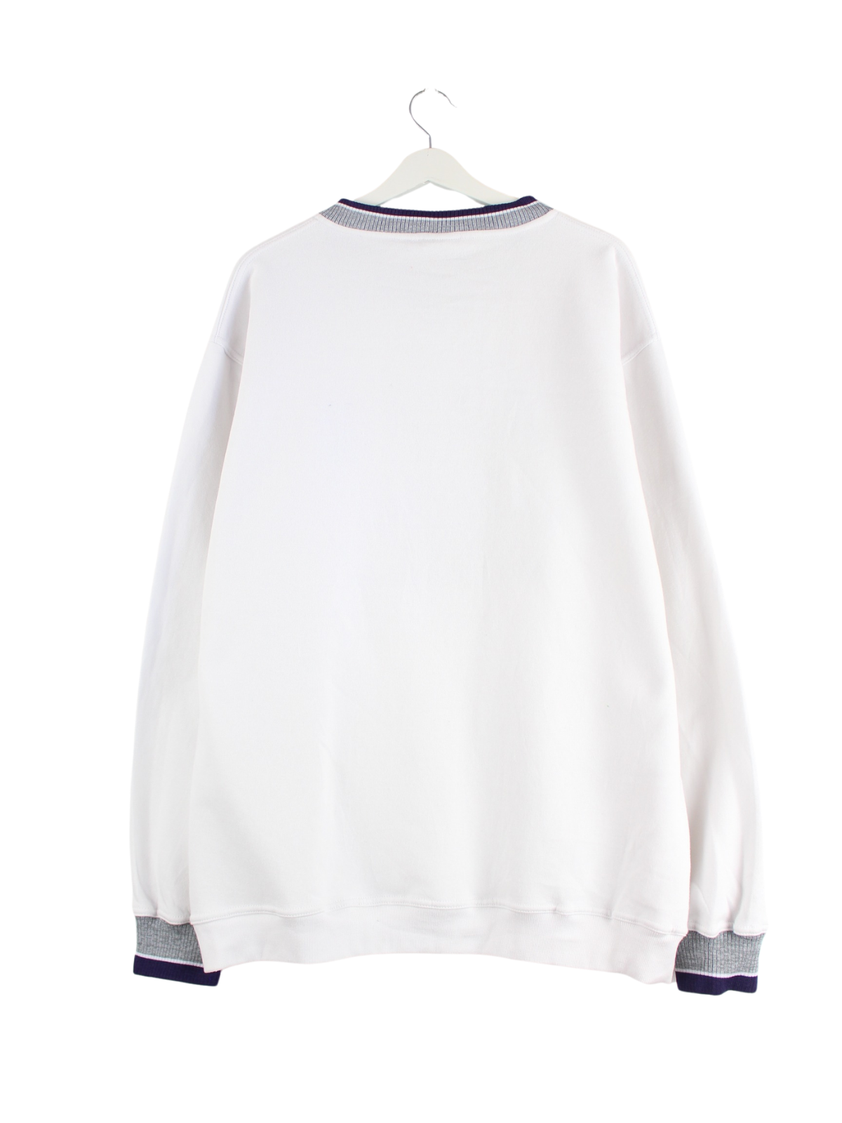 Sweater der Marke Nike mit Stickereien in Größe XXL. Er ist aus einer Baumwollmischung produziert und in Weiß lieferbar.