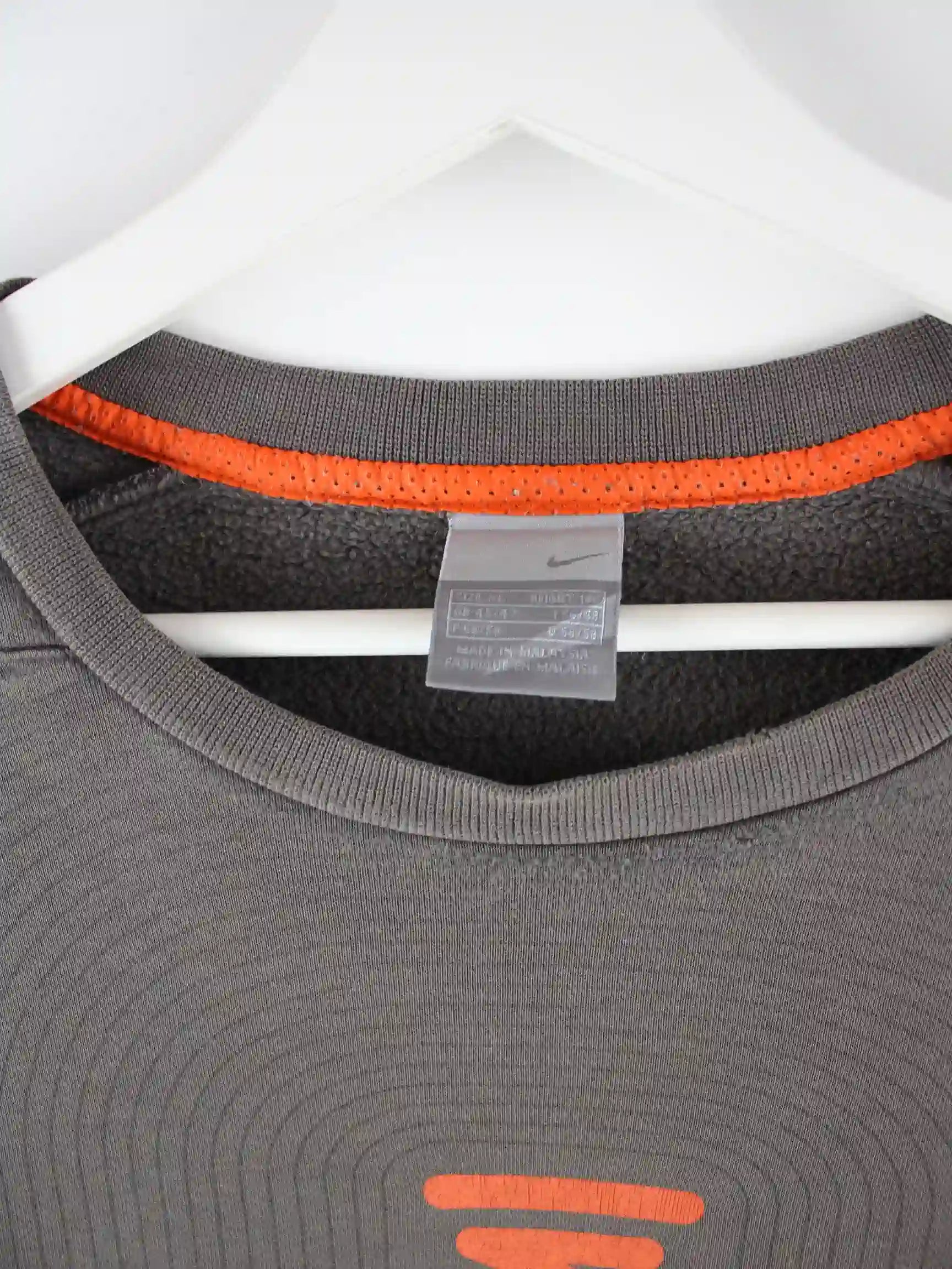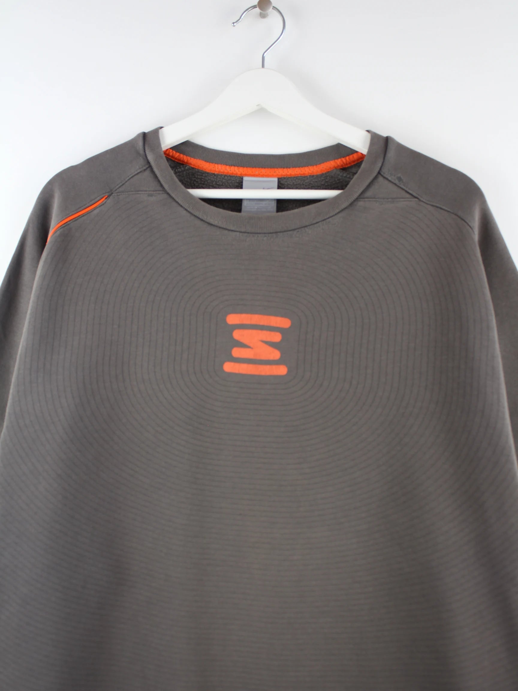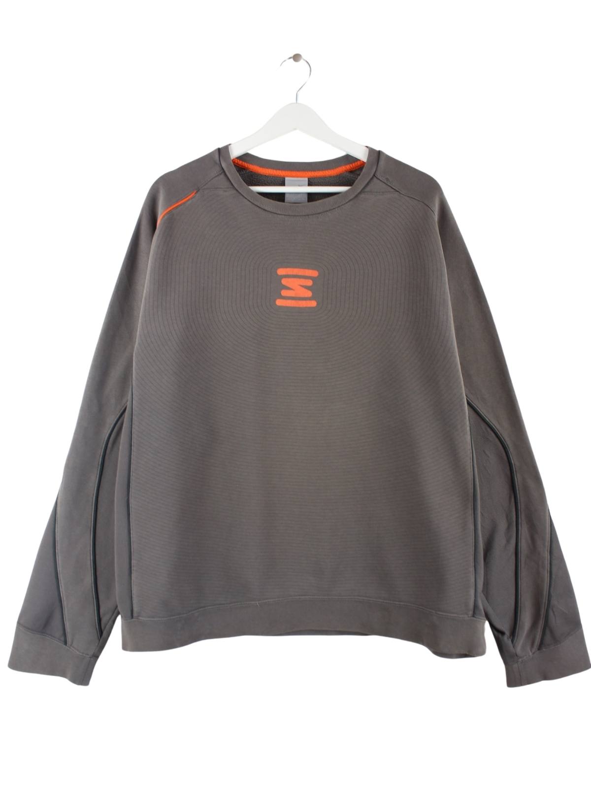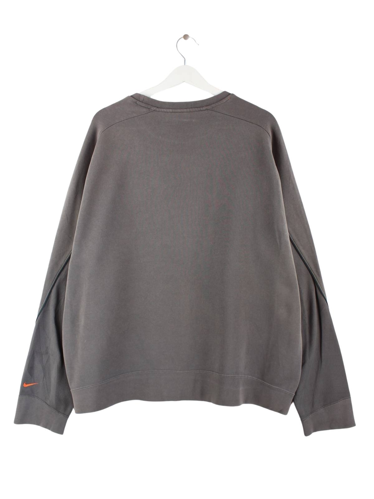 Grauer Sweater des Labels Nike in Größe XL. Er ist aus einer Baumwollmischung und in gutem Zustand vorrätig. Mit schickem 00s Print.