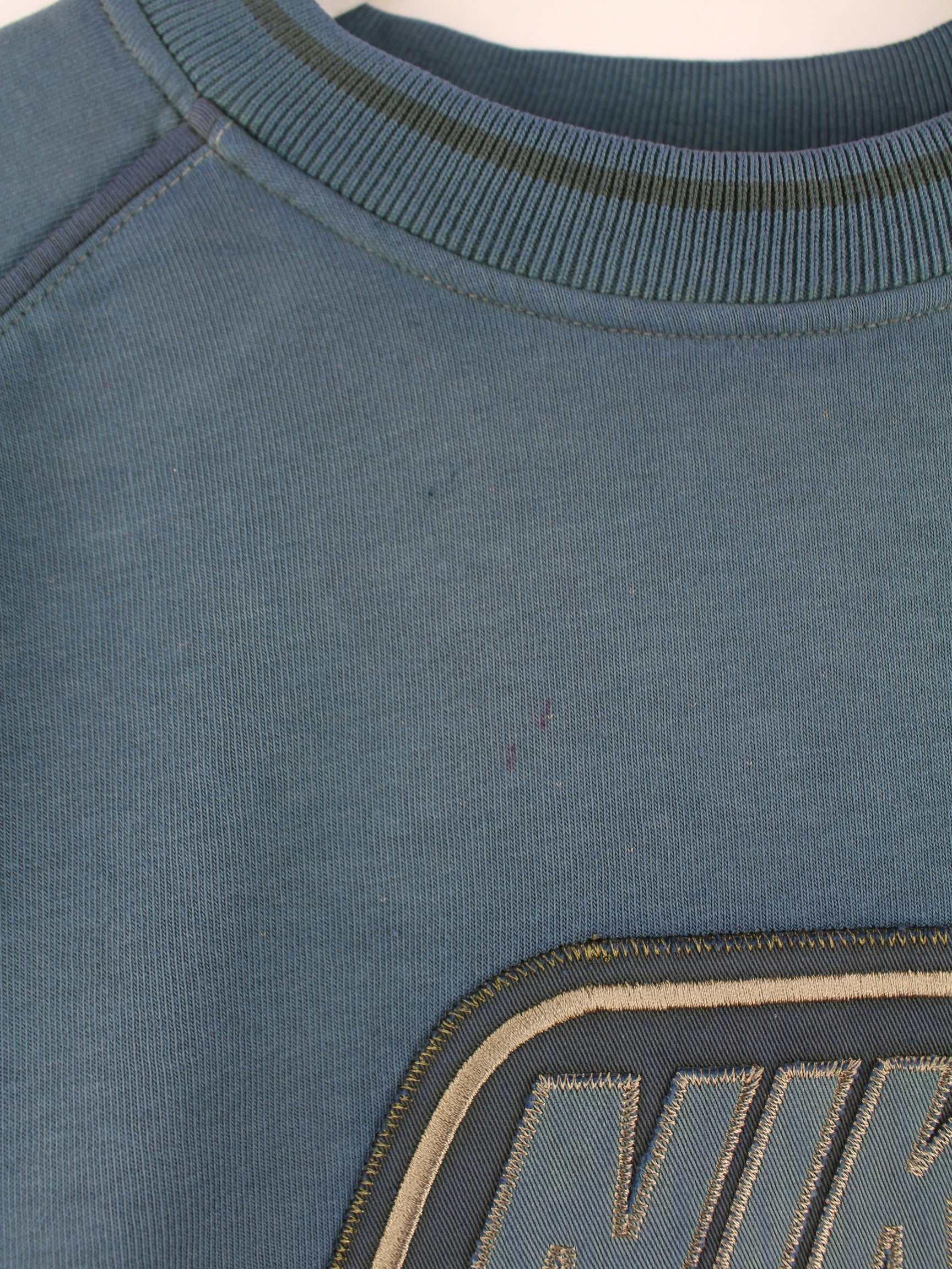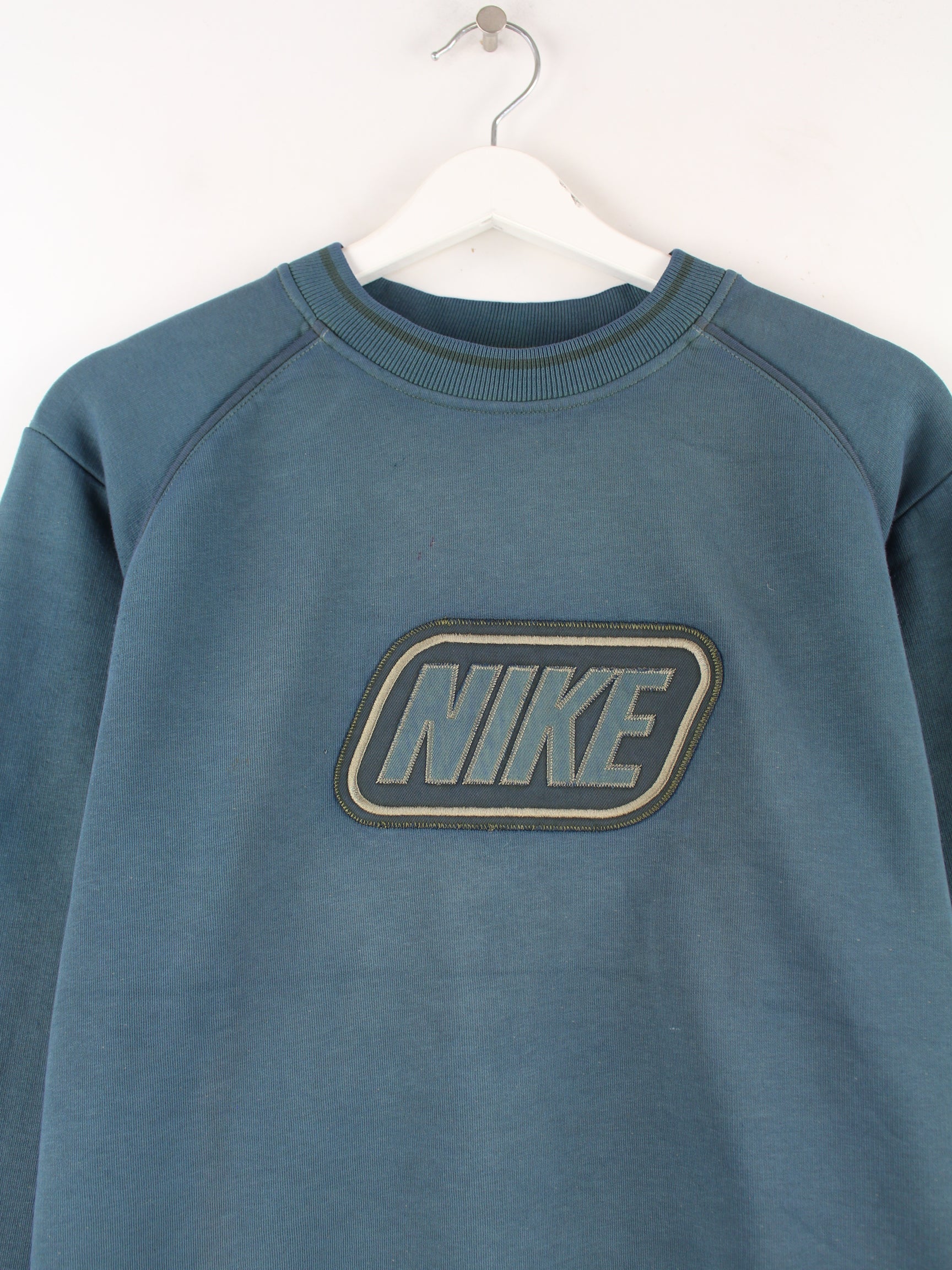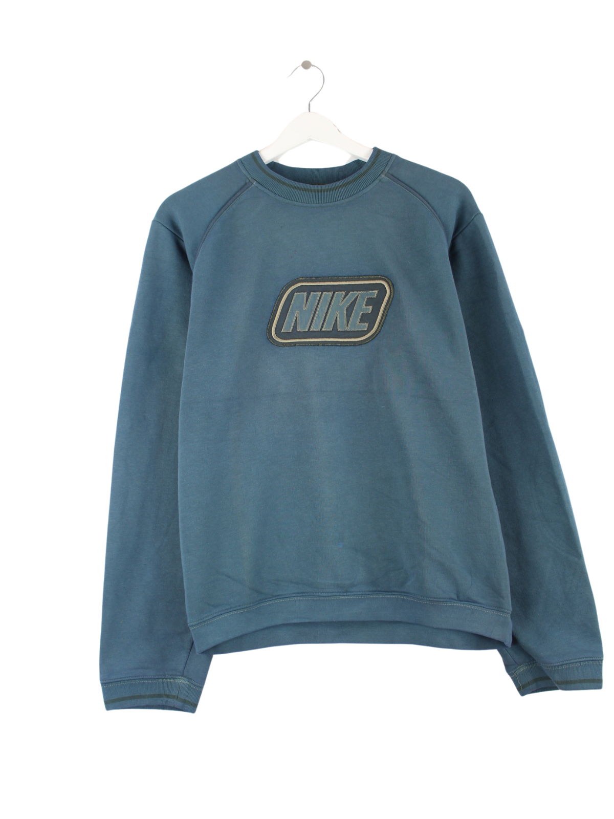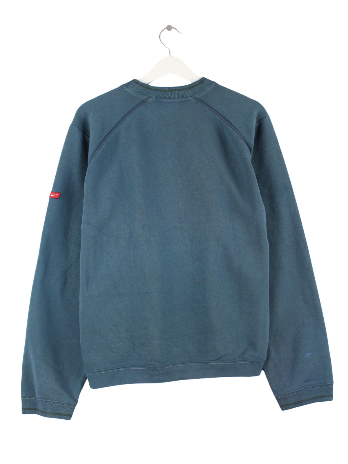 Sweater aus dem Hause Nike mit gestickten Motiven in Größe S. Er ist aus einer Baumwollmischung gemacht und in Grün zu bekommen.