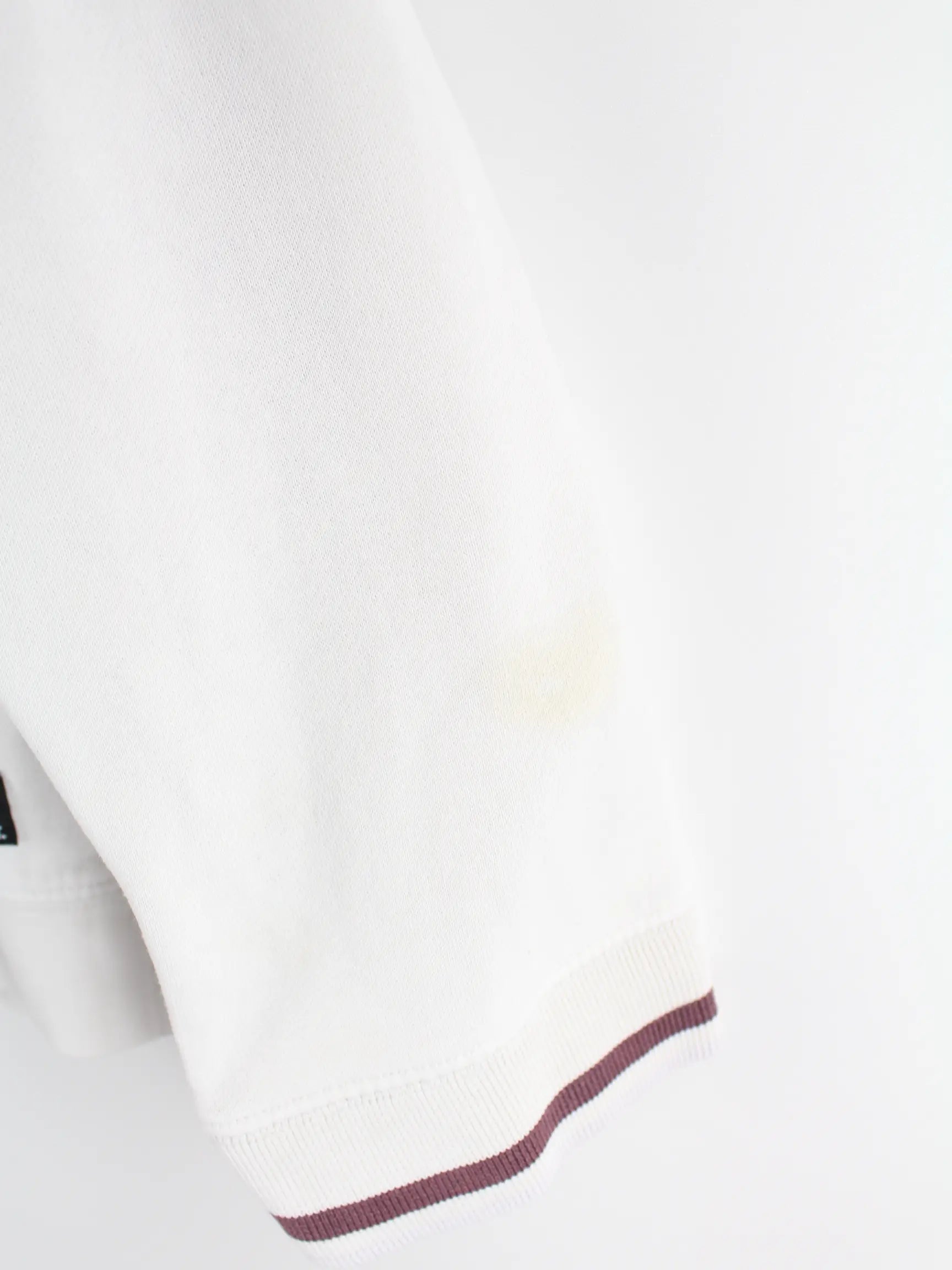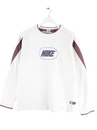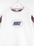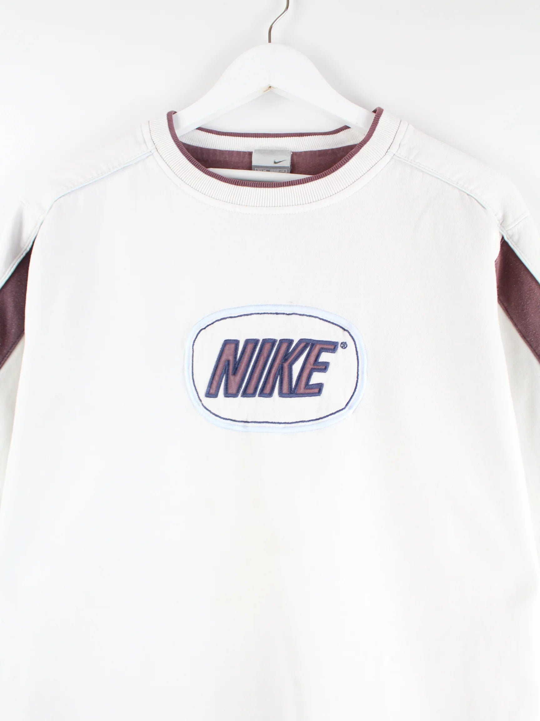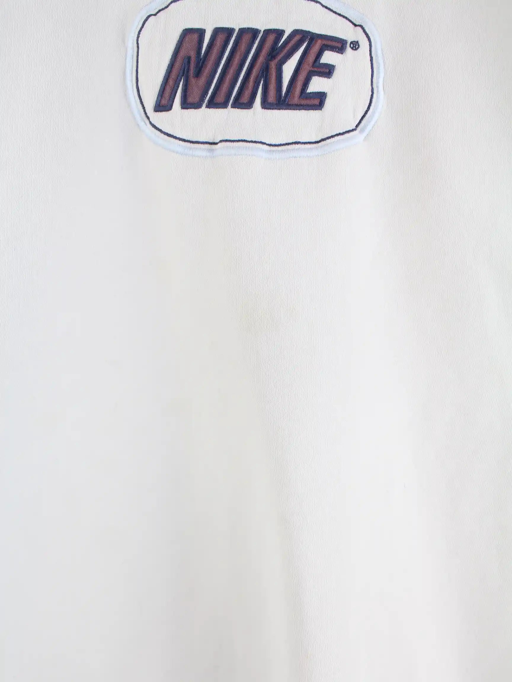 Weißer Sweater der Brand Nike in Größe M mit großem Logo auf der Brust. Er ist aus einer Baumwollmischung hergestellt. Den Zustand würden wir als 'In Ordnung' bezeichnen (vergl. Bilder).