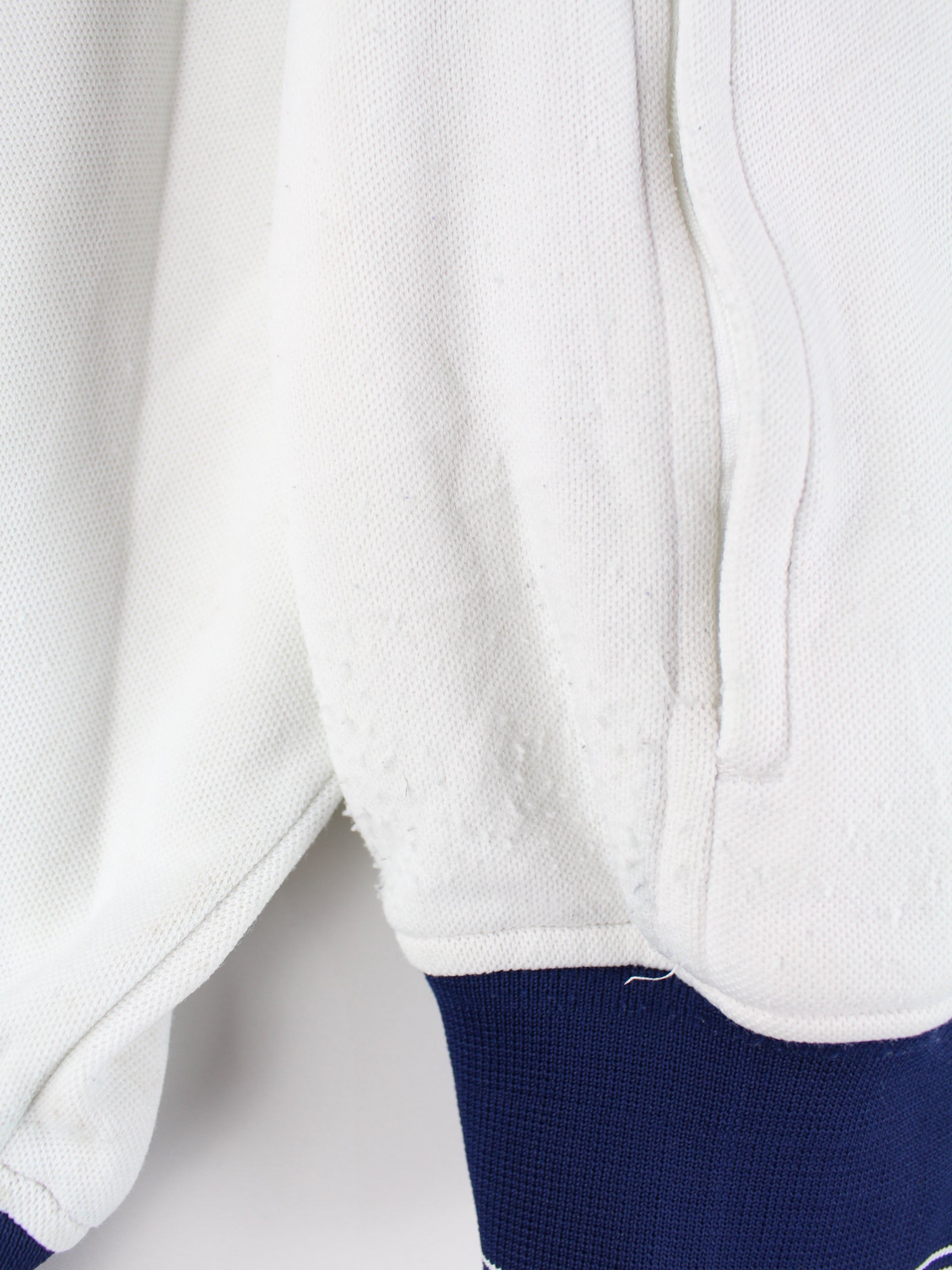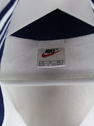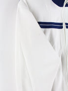 Weiße Trainingsjacke vom Label Nike aus den 90'ern in Größe S. Sie ist aus Synthetik angefertigt. Den Zustand würden wir als 'In Ordnung' bezeichnen (vergl. Bilder).
