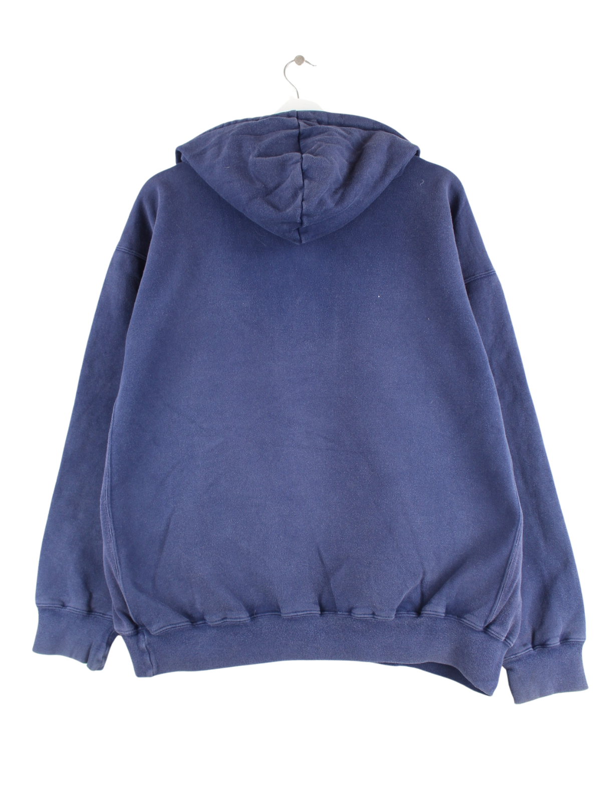 Hoodie des Labels Nike mit Stick und half Zip in Größe M aus den 90'ern. Er ist aus einer Baumwollmischung und in Blau im Bestand.
