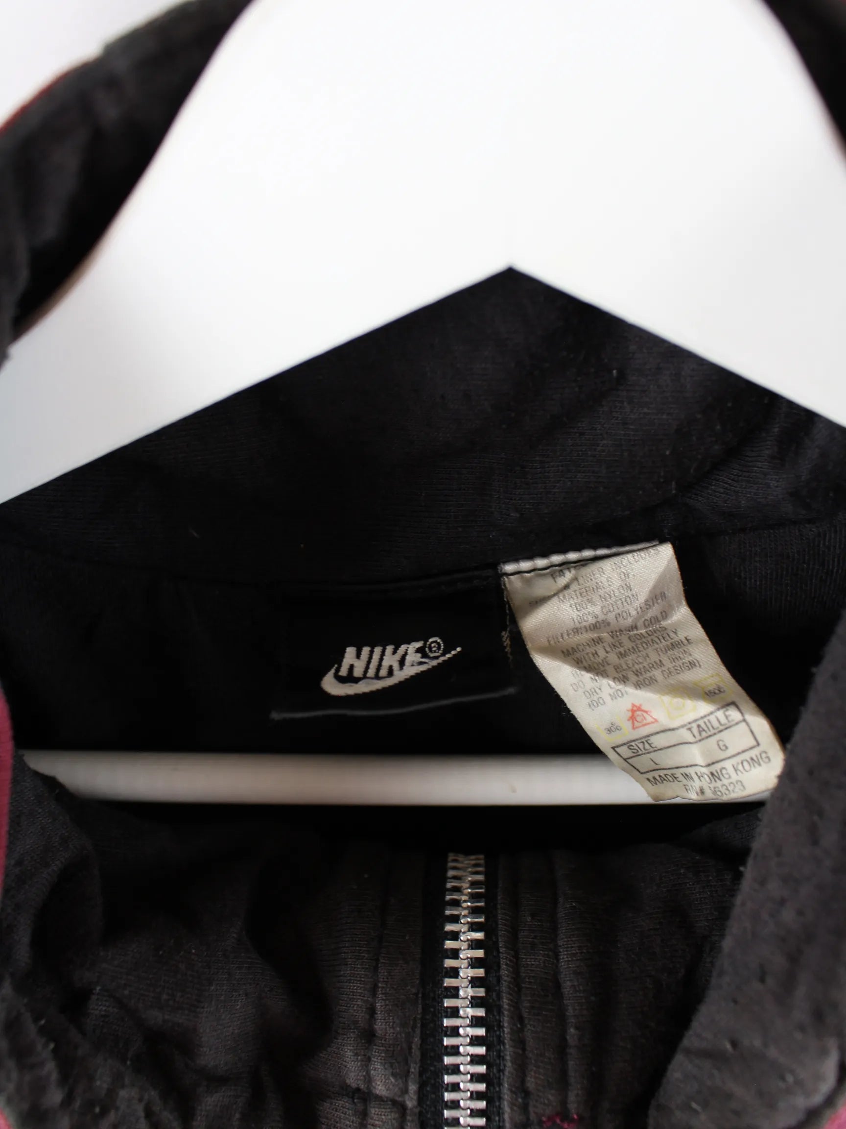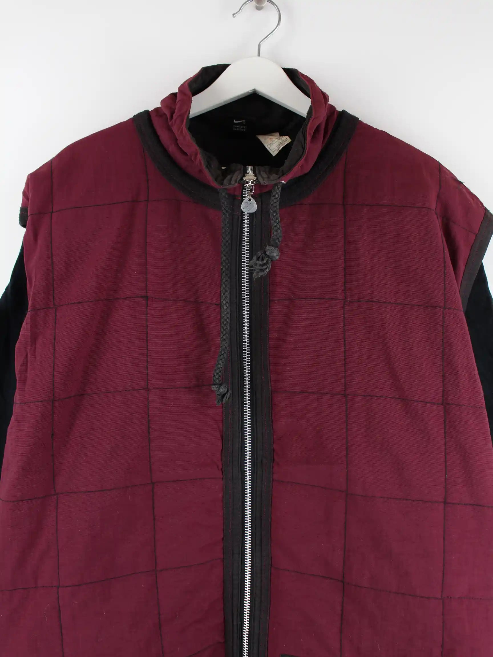 Leichte Jacke aus dem Hause Nike in Größe L aus den 90'ern. Sie ist aus Synthetik hergestellt und in Rot zu haben.